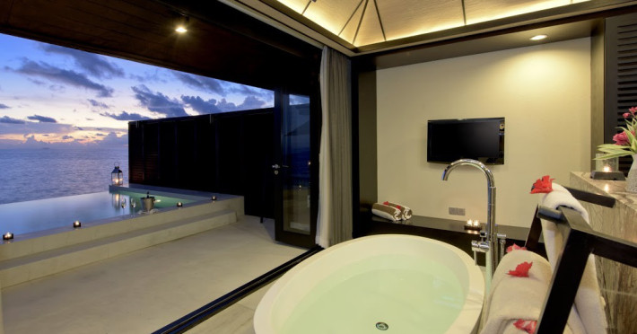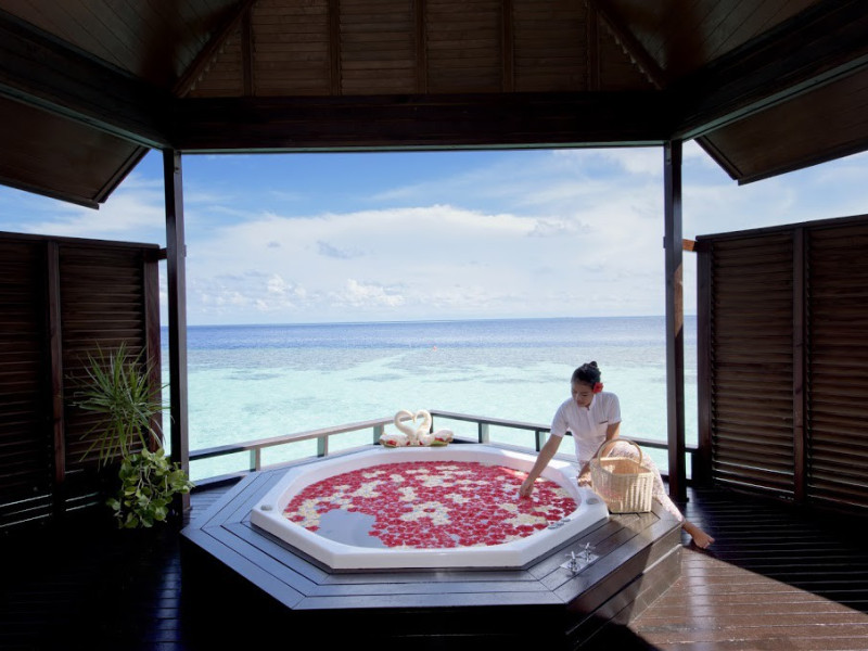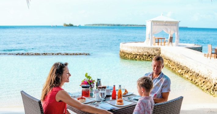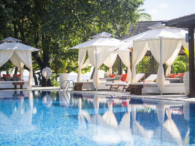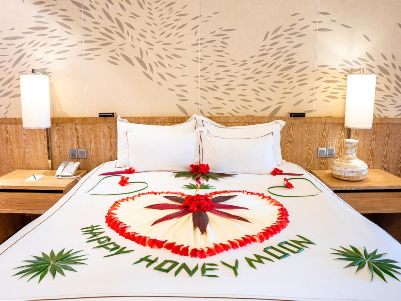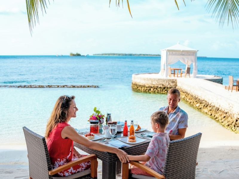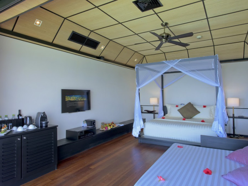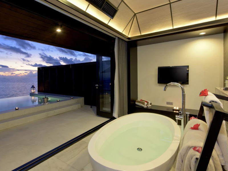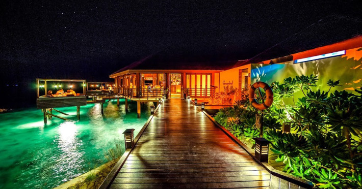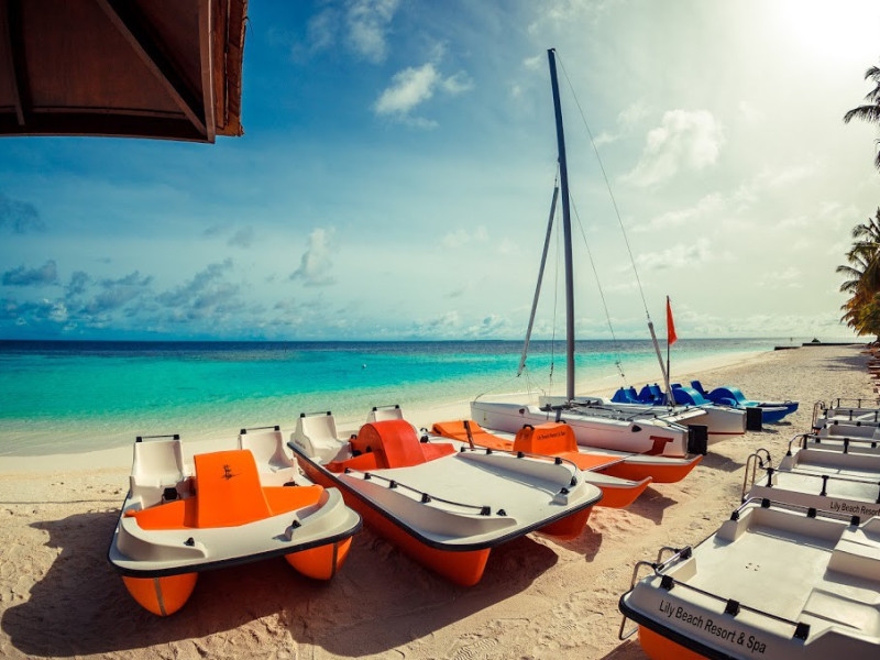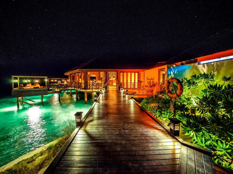 Lily Beach Resort & Spa - All Inclusive, a waterfront luxury resort in Huvahendhoo, offers 125 guestrooms with private furnished patios, LCD televisions, iPod docking stations, satellite programming, DVD players, and complimentary Wi-Fi. Private bathrooms include separate bathtubs and showers with jetted tubs and complimentary toiletries. The all-inclusive Platinum Plan covers meals and beverages at most onsite dining establishments (some restaurants, special dinners, dishes, and beverages may incur extra charges). Four restaurants, including Lily Ma, and five bars (including a beach bar and two poolside bars) are available, along with 24-hour room service. A complimentary buffet breakfast is served daily from 6:00 AM to 10:30 AM. Amenities include a full-service spa (massages, body treatments, facials), a nightclub, an outdoor tennis court, a 24-hour business center, complimentary newspapers in the lobby, dry cleaning/laundry services, concierge services, and babysitting (surcharge). A roundtrip airport shuttle is available for a surcharge. The resort is a short walk from Dhangethi Beach and Bikini Beach, and close to Bunbaru Public Beach. The Lily Beach Resort & Spa - All Inclusive is a Beach Resort, Design Trendy, Family Style, Full Service, Honeymoon, Leisure, Modern, Tourist hotel. The nightlife/restaurants are located in the hotel.