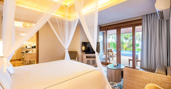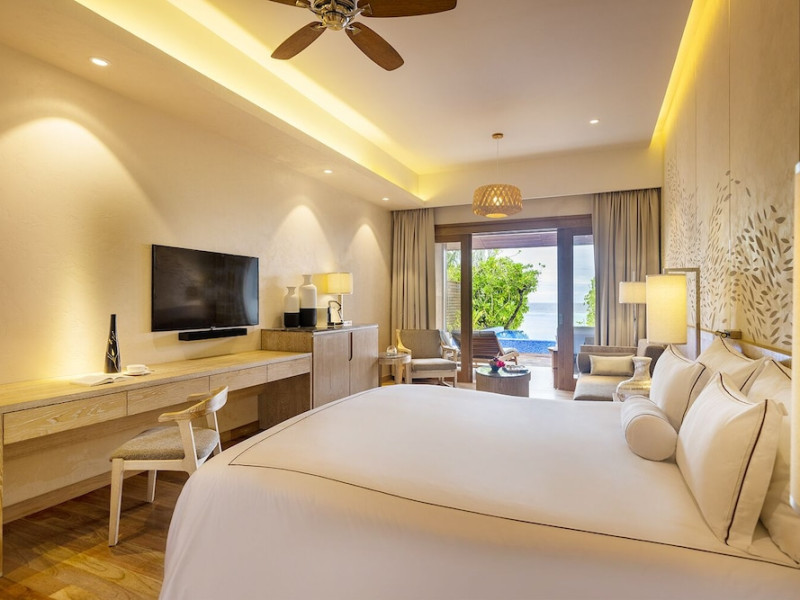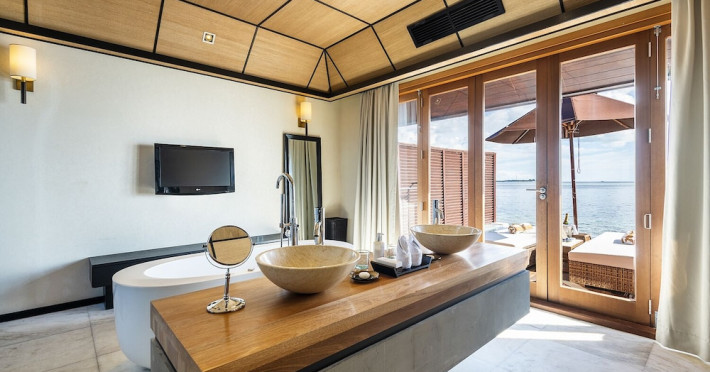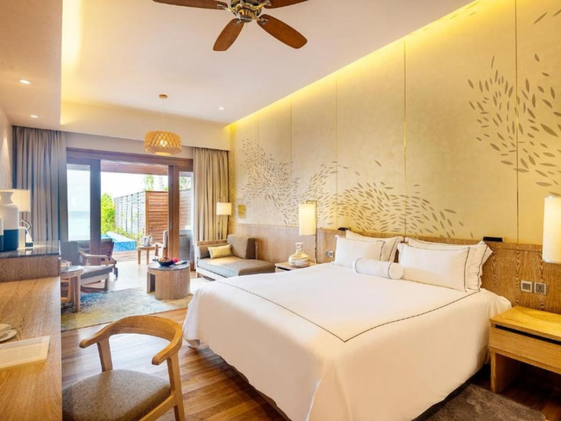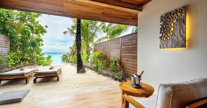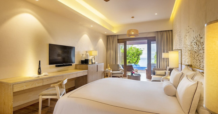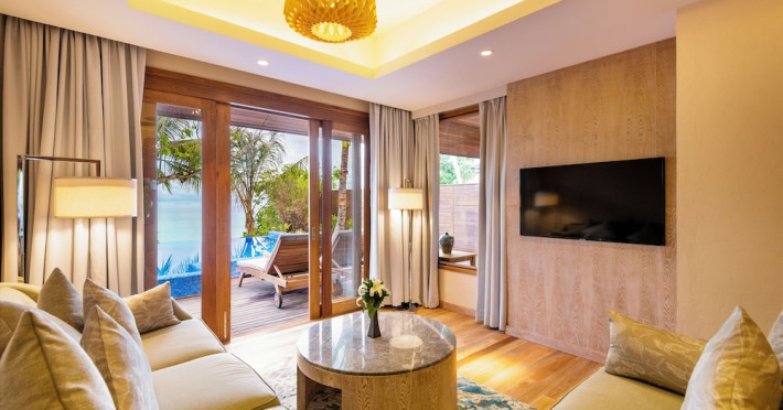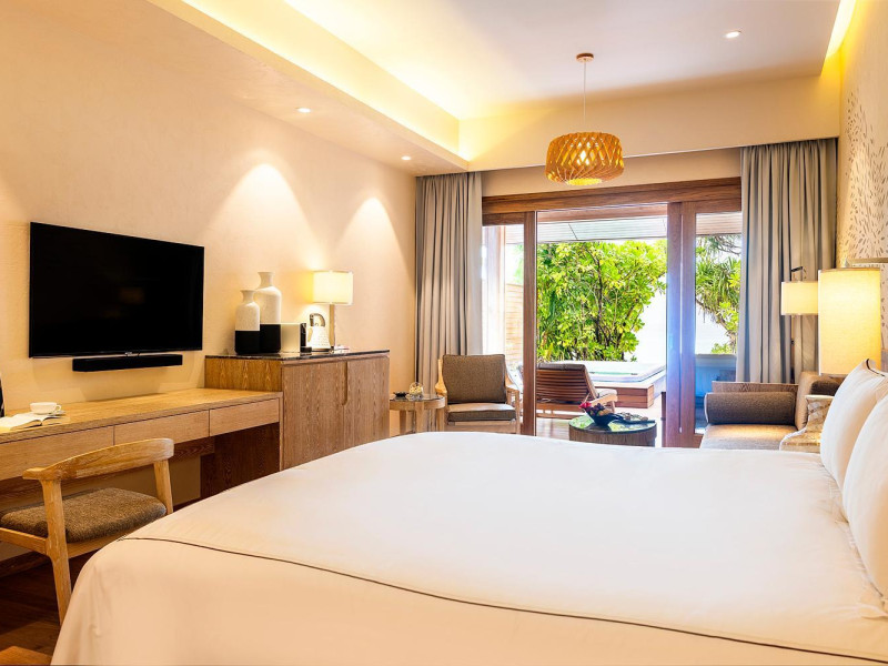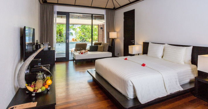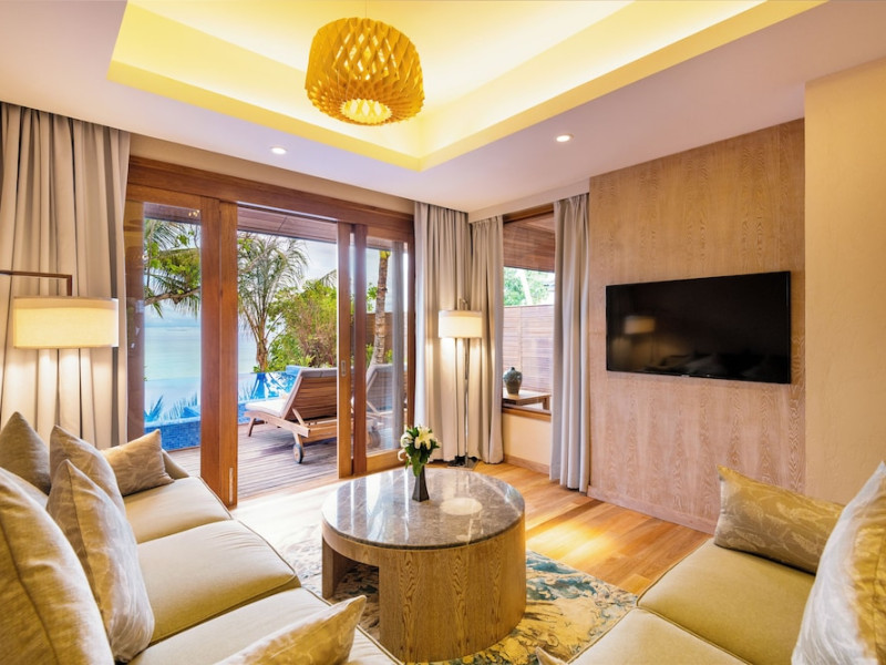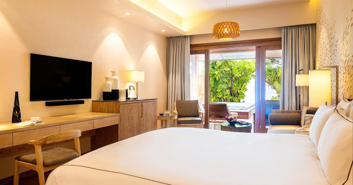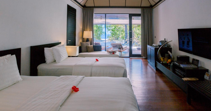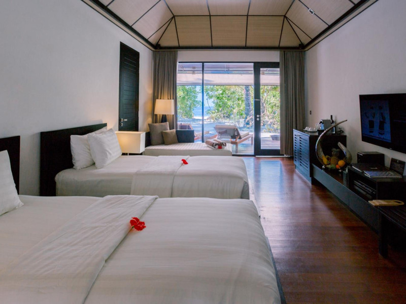 Lily Beach Resort & Spa - All Inclusive, a waterfront luxury resort in Huvahendhoo, offers 125 guestrooms with private furnished patios, LCD televisions, iPod docking stations, satellite programming, DVD players, and complimentary Wi-Fi. Private bathrooms include separate bathtubs and showers with jetted tubs and complimentary toiletries. The all-inclusive Platinum Plan covers meals and beverages at most onsite dining establishments (some restaurants, special dinners, dishes, and beverages may incur extra charges). Four restaurants, including Lily Ma, and five bars (including a beach bar and two poolside bars) are available, along with 24-hour room service. A complimentary buffet breakfast is served daily from 6:00 AM to 10:30 AM. Amenities include a full-service spa (massages, body treatments, facials), a nightclub, an outdoor tennis court, a 24-hour business center, complimentary newspapers in the lobby, dry cleaning/laundry services, concierge services, and babysitting (surcharge). A roundtrip airport shuttle is available for a surcharge. The resort is a short walk from Dhangethi Beach and Bikini Beach, and close to Bunbaru Public Beach. The Lily Beach Resort & Spa - All Inclusive is a Beach Resort, Design Trendy, Family Style, Full Service, Honeymoon, Leisure, Modern, Tourist hotel. The nightlife/restaurants are located in the hotel.