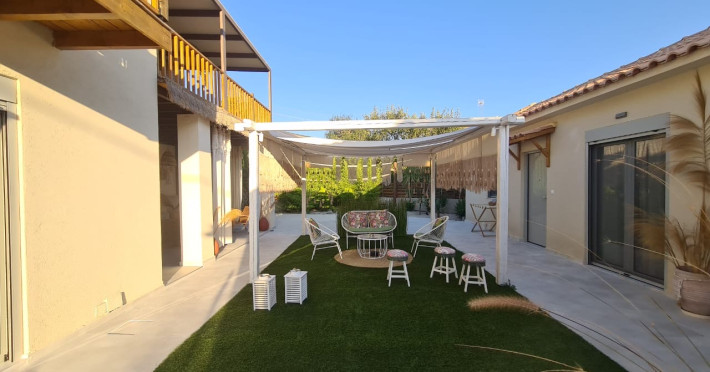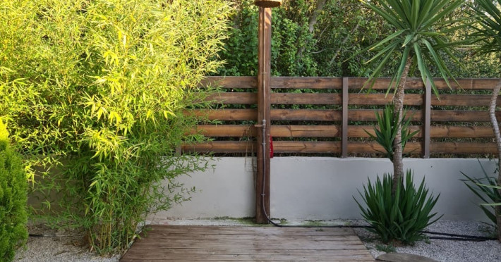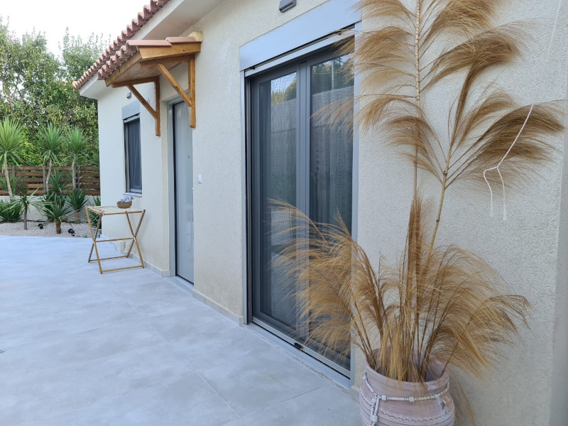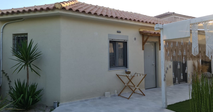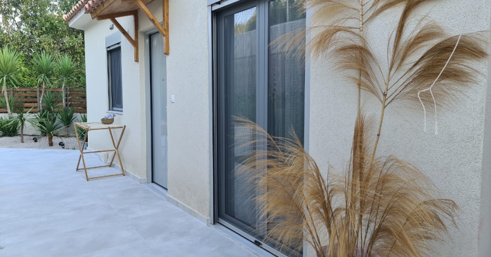 The property comprises four cozy, self-contained apartments, each measuring approximately 35 sq.m. Every apartment features an open-plan layout with a double bed, a sofa, a fully equipped kitchen, and a bathroom. Each unit also includes a private outdoor area, ensuring comfort, privacy, and a truly enjoyable stay.