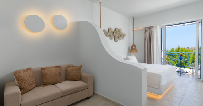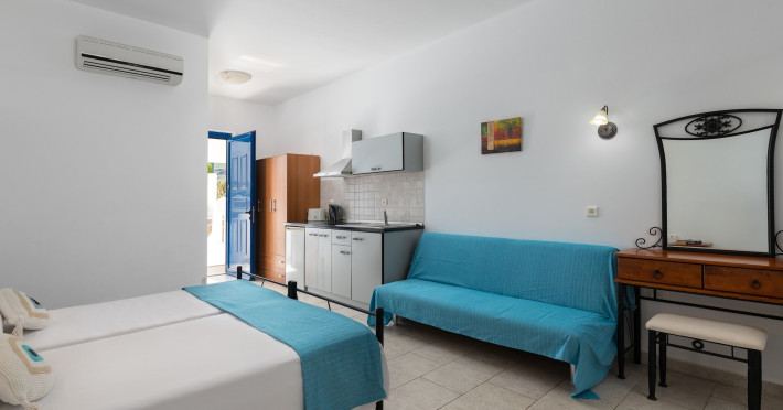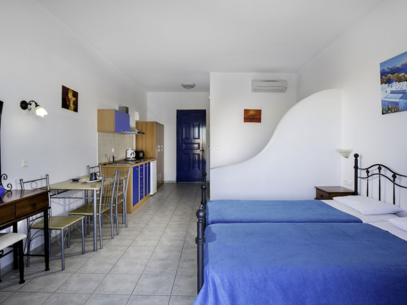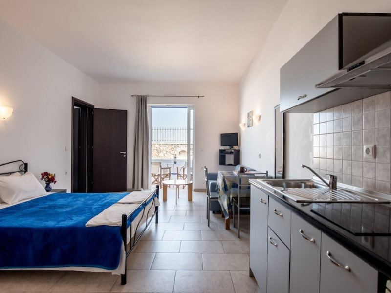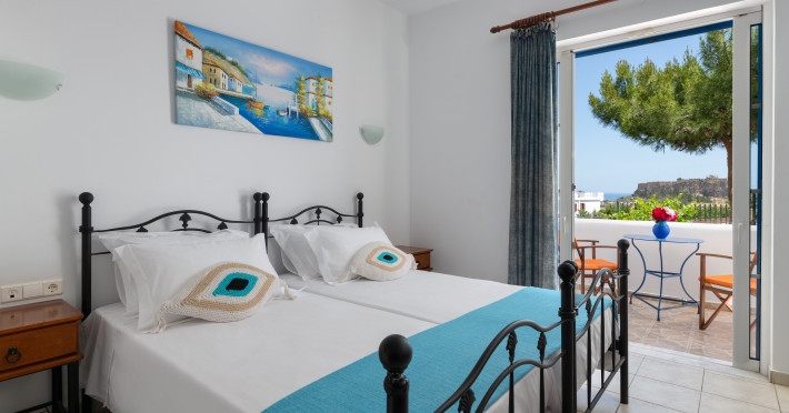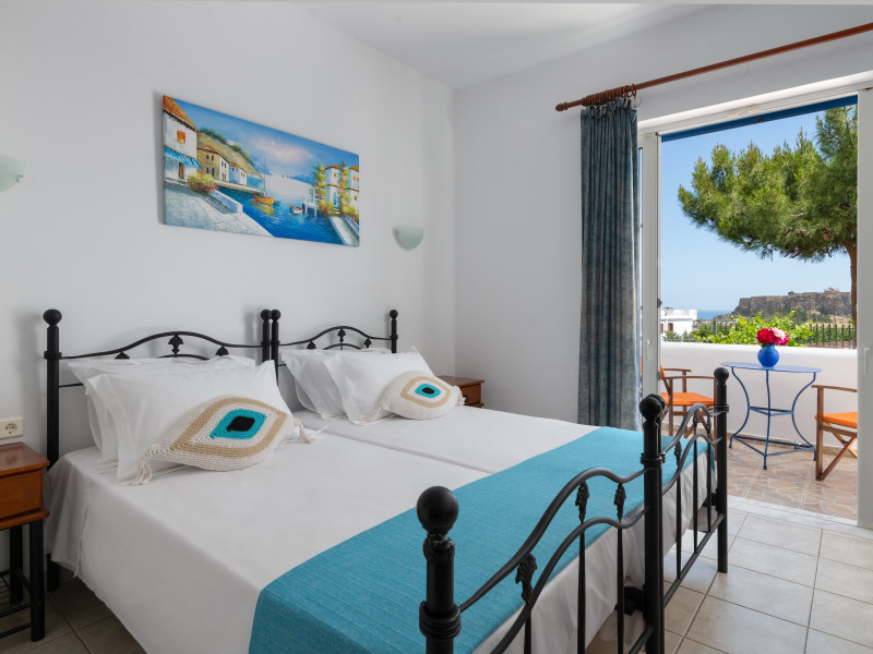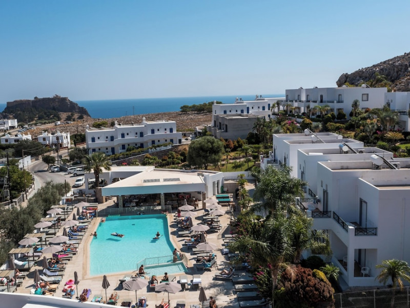Lindian Myth Sea View Studios and Family Apartments offer accommodations in Lindos, Rhodes, featuring sea views overlooking the Acropolis. The complex, with its whitewashed buildings and blue-themed interiors, provides a Greek ambiance. Studios and apartments include a private balcony and a kitchen with a refrigerator and stovetop. Complimentary wired and wireless internet access is available. Guests have access to a seasonal outdoor pool with sunbeds and a pool bar serving snacks and drinks (open from April 28th to the end of October). Other amenities include a terrace, garden, complimentary wireless internet access, tour/ticket assistance, and barbecue grills. A snack bar/deli and a bar/lounge are available. Services include express check-in/check-out and dry cleaning/laundry. Roundtrip airport shuttle is available for a surcharge, and free self parking is onsite. Lindos village, with its bars, rooftop restaurants, tavernas, shops, and sandy beaches, is a short walk away. The property is closed between November 5 and March 31. St. Paul's Beach and St. Pauls Bay are nearby.