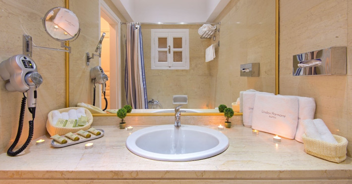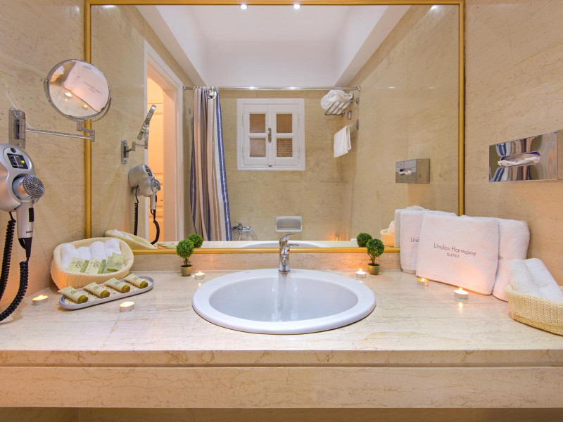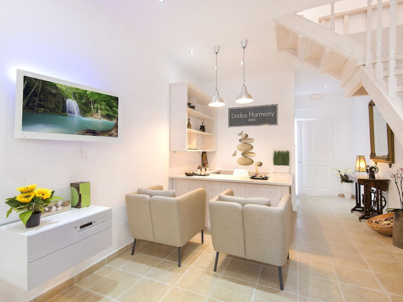 Located near the beach in Lindos, Lindos Harmony Suites offers air-conditioned accommodation with complimentary wireless internet access. The guesthouse features a terrace with views of the Aegean Sea and the Acropolis of Lindos. Each of the 9 rooms includes a flat-screen television with satellite programming, a refrigerator, a microwave, a safe, and a coffee/tea maker. Private bathrooms provide complimentary toiletries and a hairdryer. Housekeeping is provided daily. Amenities include express check-in/check-out, dry cleaning/laundry services, wedding services, and tour/ticket assistance. A complimentary reception is held daily. A roundtrip airport shuttle is available for a surcharge (available 24 hours), and free self parking is available nearby. Lindos Beach and St. Pauls Bay are within walking distance. The Lindos Harmony Suites is a hotel.