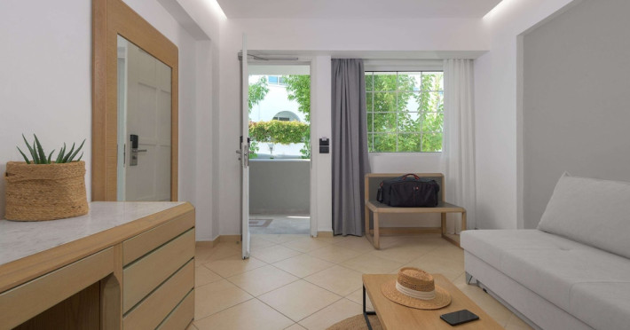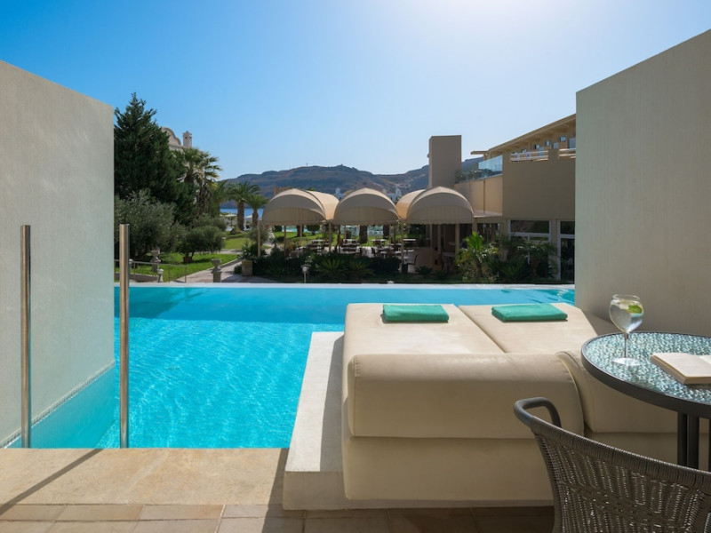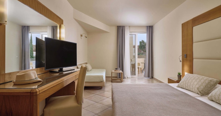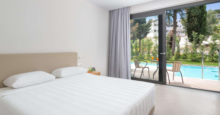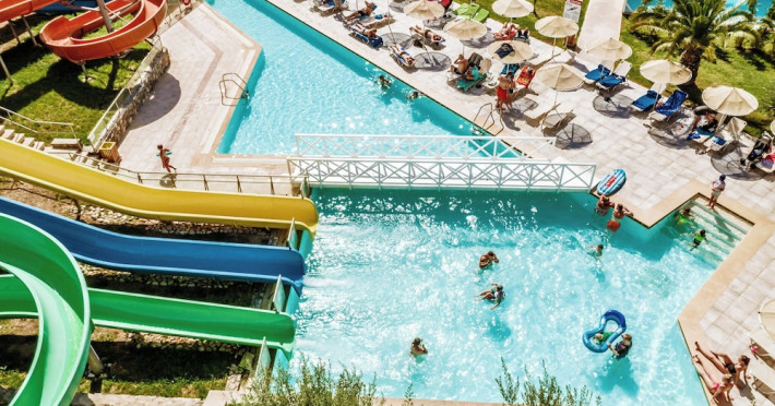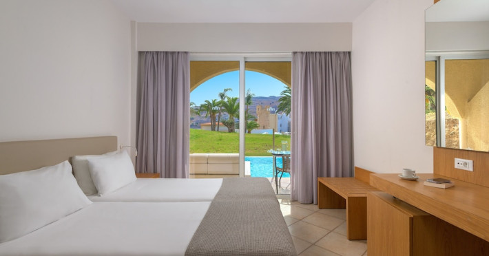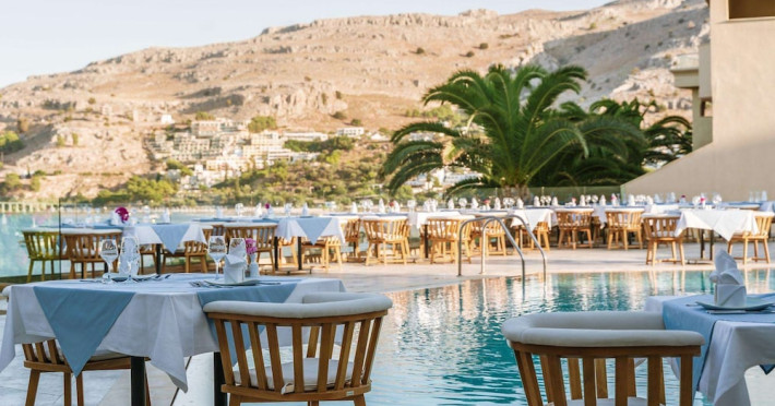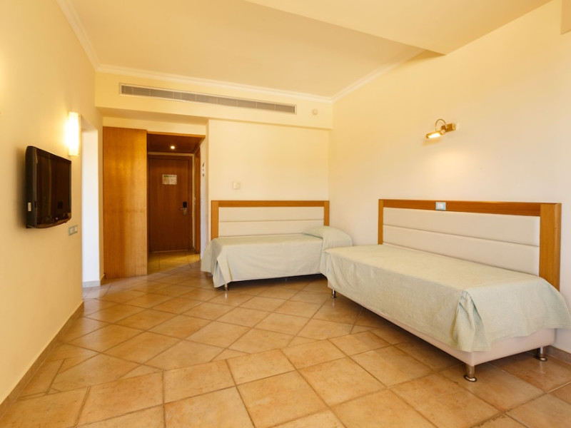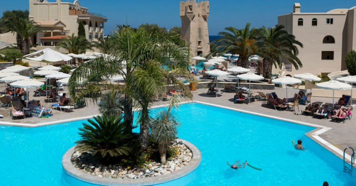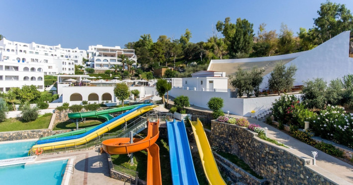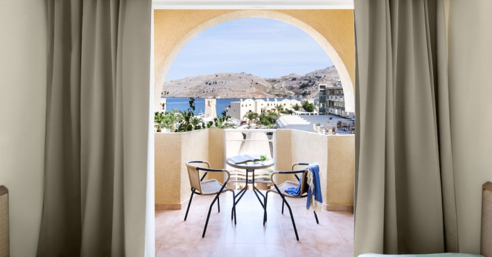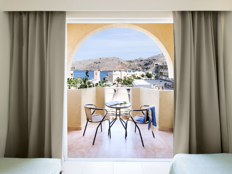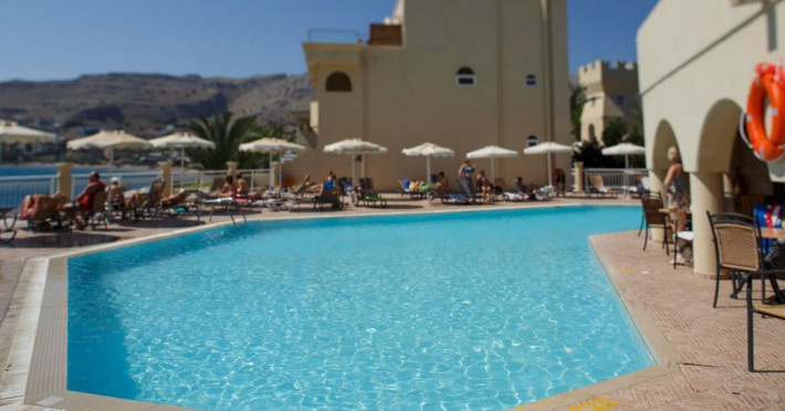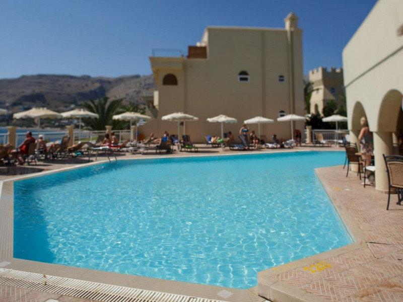 Facilities and services include Wi-Fi, 24 hour reception, air conditioning, bar, parking, children's play area, conference/banquet facilities, children and adult's pool, elevator, gym/fitness facilities, and restaurant.Rooms feature air conditioning, Wi-Fi, cable/satellite TV, telephone, balcony/terrace, fridge, safe (extra charge), room service, hairdryer and bathroom.Family Rooms also feature balcony or terrace and sofa bed.Please note that some of the above facilities may be closed due to weather / seasonal conditions.Please note that the air conditioning in the rooms is controlled centrally by the hotel, therefore the air conditioning is only turned on during specific hours during the day which may vary.In case of choosing the option of "all inclusive":The All Inclusive-concept includes all meals (breakfast, lunch, dinner and snacks) and mealtime drinks such as soft drinks, beer, wine, water and alcoholic drinks, all of local brands. Drinks are served from morning until late evening (approx until 22.-24.00 hrs). Opening times vary between different hotels. In certain hotels the activities program is also included.Address: Vlycha Beach, Kalathos, Lindos Area, 85107 Lindos, Rhodes, Greece.