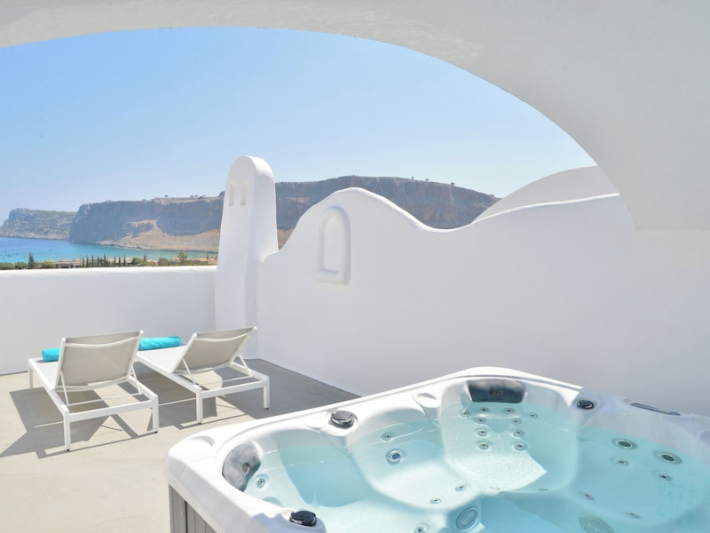 Facilities and services include a 24-hour front desk, swimming pool, free Wi-Fi, poolside restaurant, sun terrace, restaurant, room service, postal service, business services, wake-up service, currency exchange, car/motorbike rental, doctor on call (extra charge), car parking, laundry service (extra charge), and souvenir shop (extra charge).Rooms feature air conditioning, cable/satellite TV, a telephone, wireless Internet access, a shower, a kettle, a fridge, a safe, a mini bar (extra charge), a hairdryer, a bathroom, and a balcony/terrace.The superior room with a private pool room also features a private swimming pool—ONLY ADULTS.The premium room with a private pool room also features a private swimming pool. - ONLY ADULTSThe Duplex Suite also features a Jacuzzi.Please note that some of the above facilities may be closed due to weather/seasonal conditions.Address: Lindos area, 85107 Rhodes, Greece.
