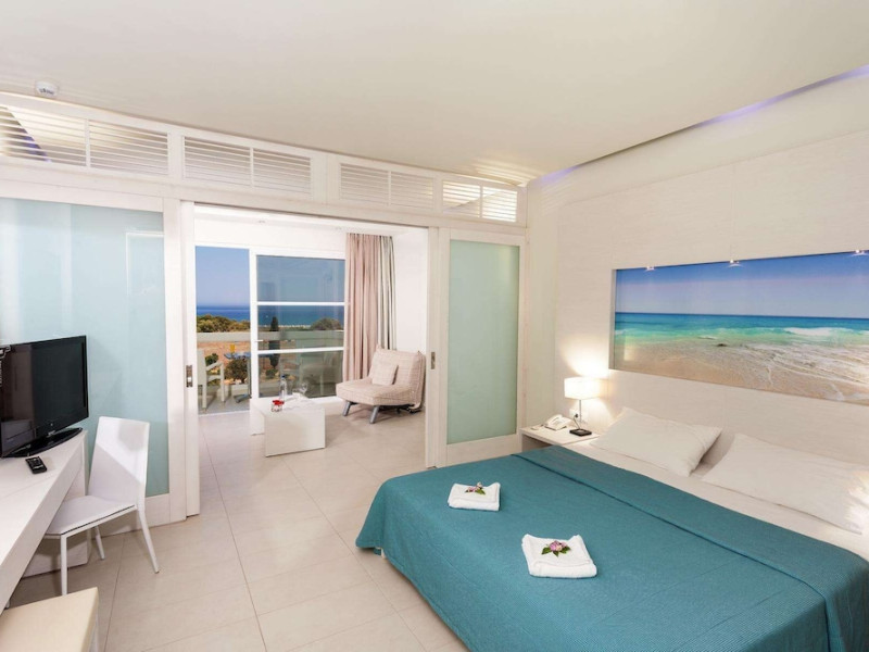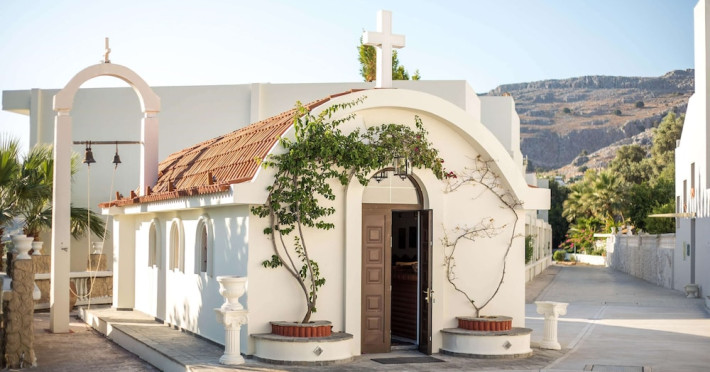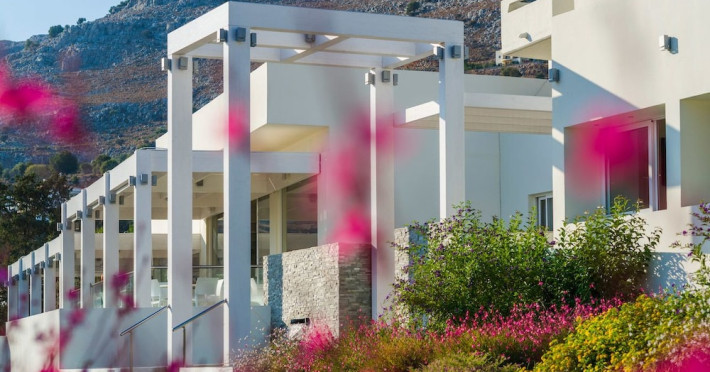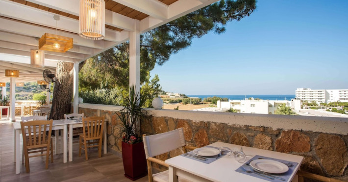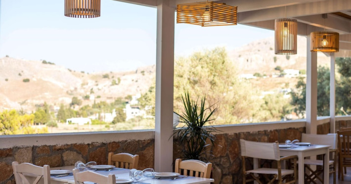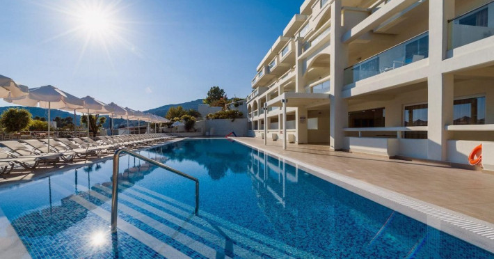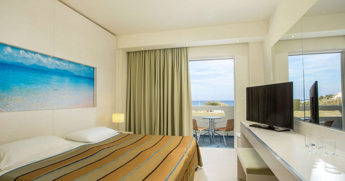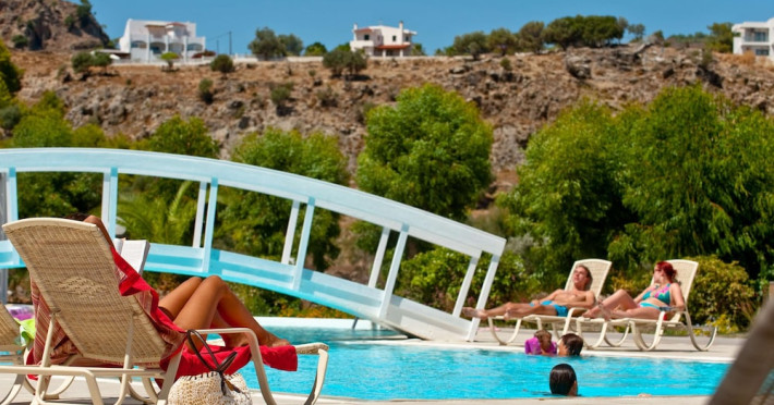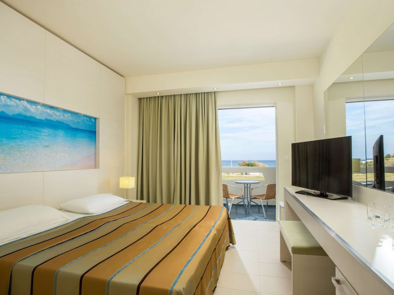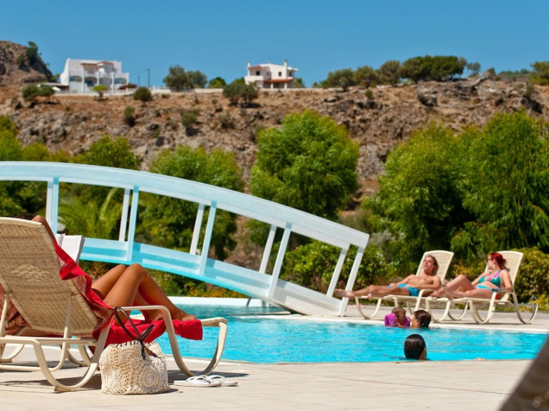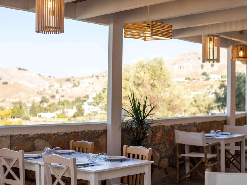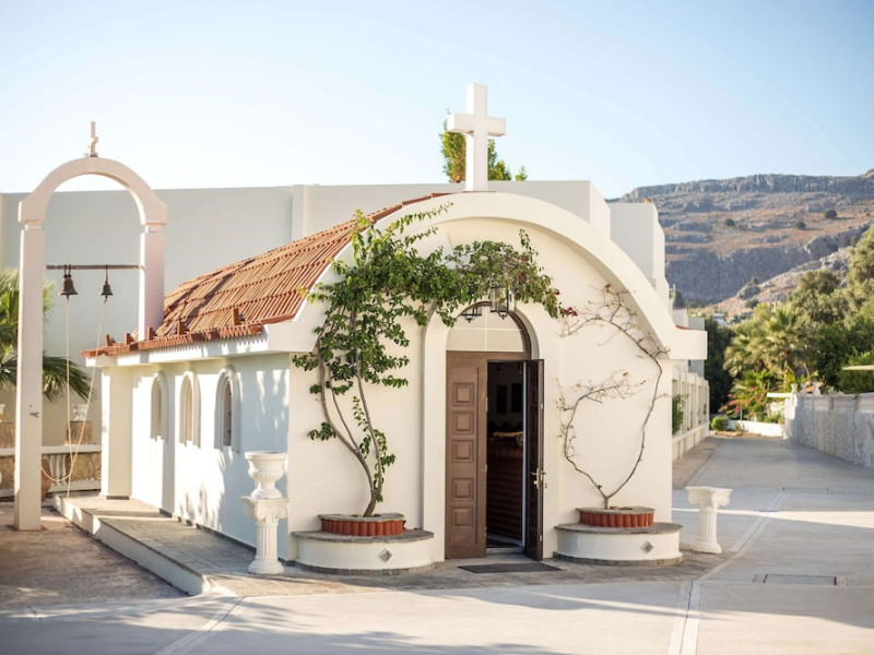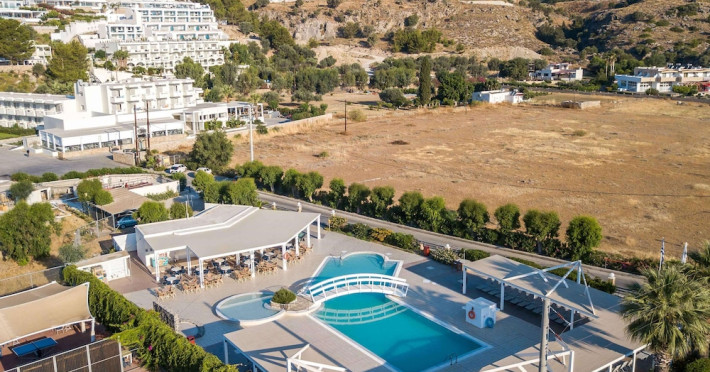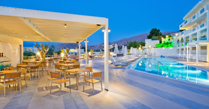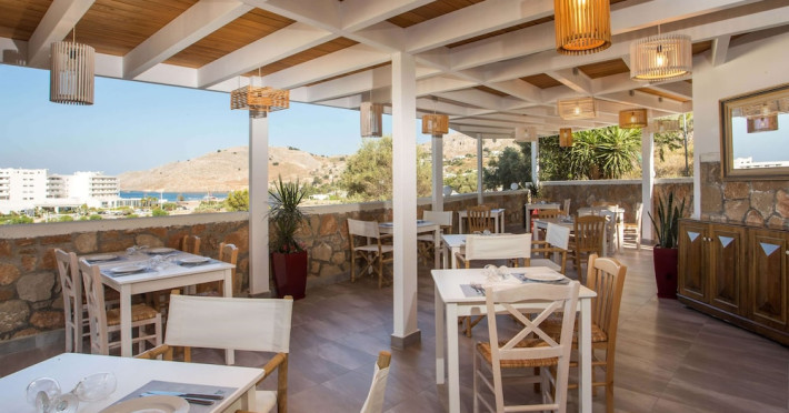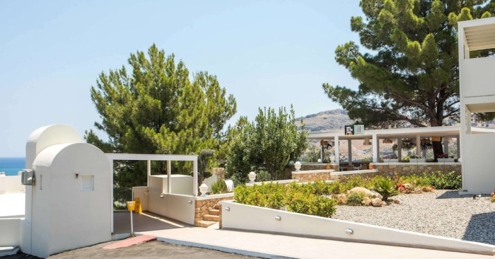 Facilities and services include a 24 hrs reception, wireless internet in public areas (extra charge), elevator, one restaurant, lobby bar, pool bar, outdoor swimming pool, children's pool, children's playground and car parking.The rooms are equipped with air conditioning, wireless internet (extra charge), TV, telephone, safety box (extra charge), fridge, hairdryer and balcony/terrace.Address: Vlicha Bay, 85107, Lindos, Rhodes, Greece.