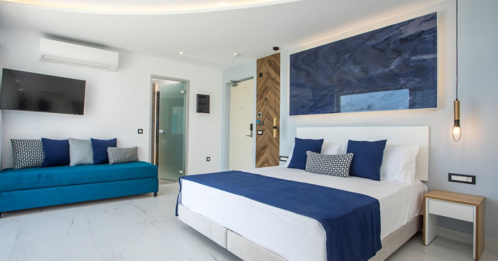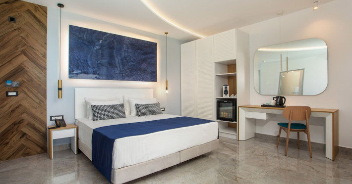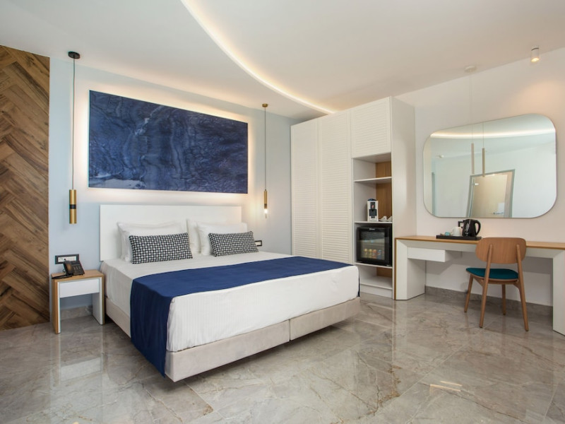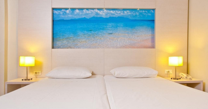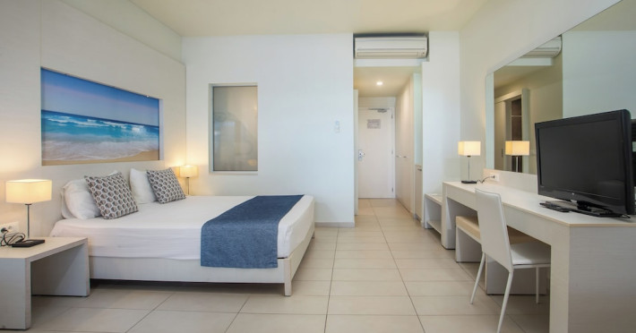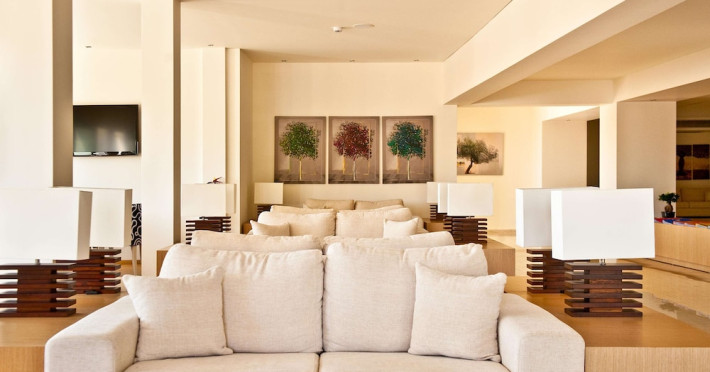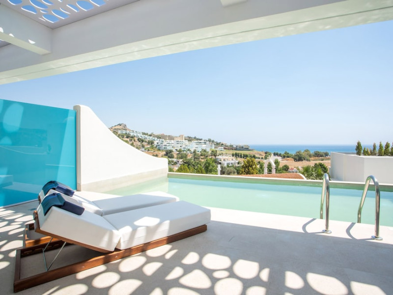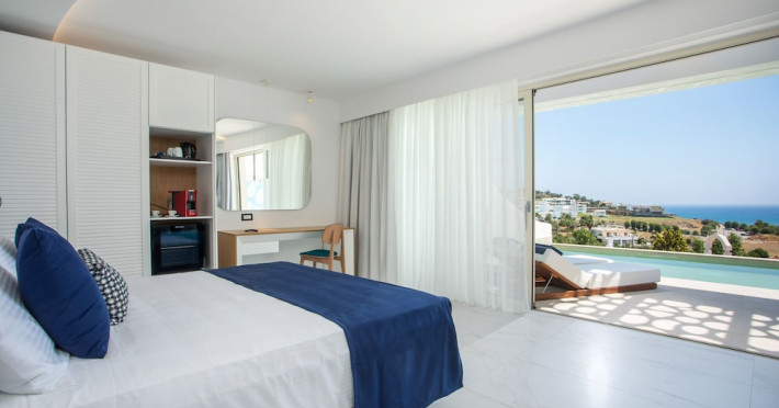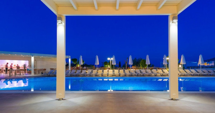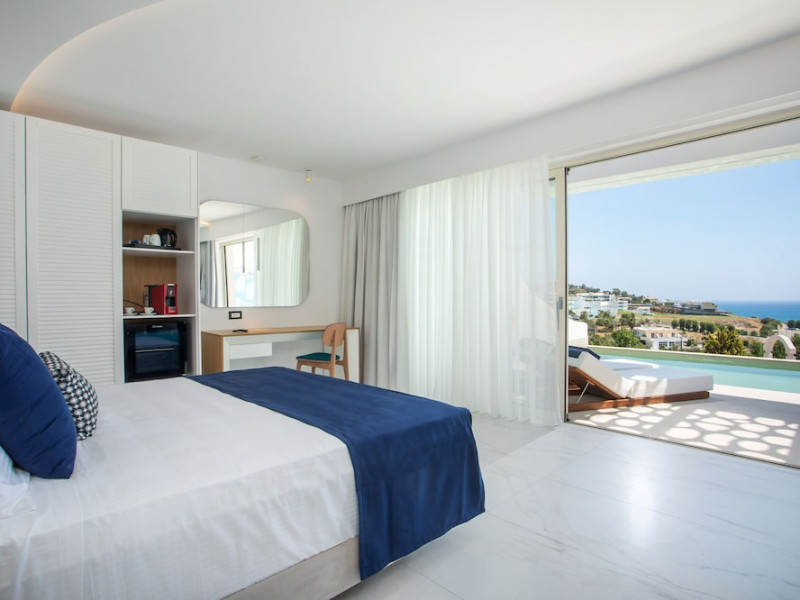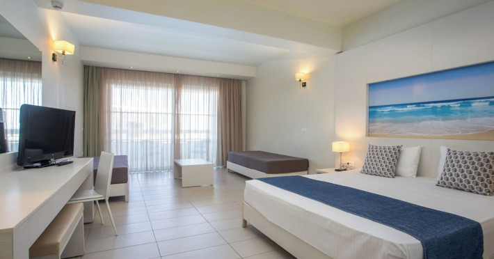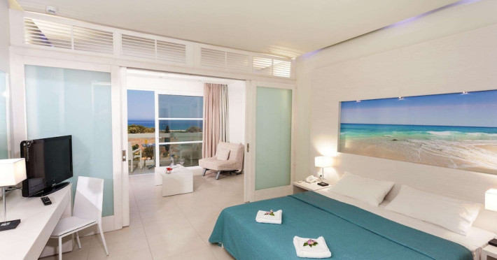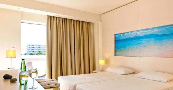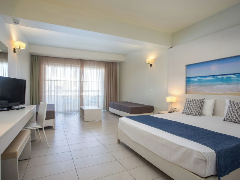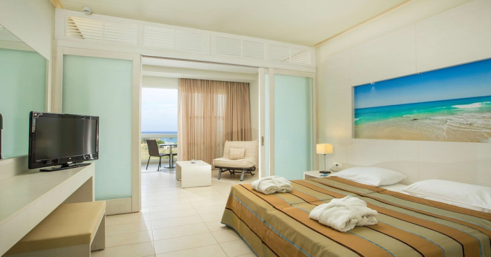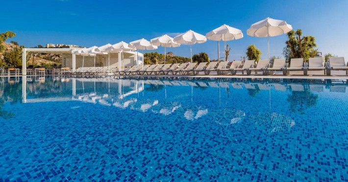 Facilities and services include a 24 hrs reception, wireless internet in public areas (extra charge), elevator, one restaurant, lobby bar, pool bar, outdoor swimming pool, children's pool, children's playground and car parking.The rooms are equipped with air conditioning, wireless internet (extra charge), TV, telephone, safety box (extra charge), fridge, hairdryer and balcony/terrace.Address: Vlicha Bay, 85107, Lindos, Rhodes, Greece.