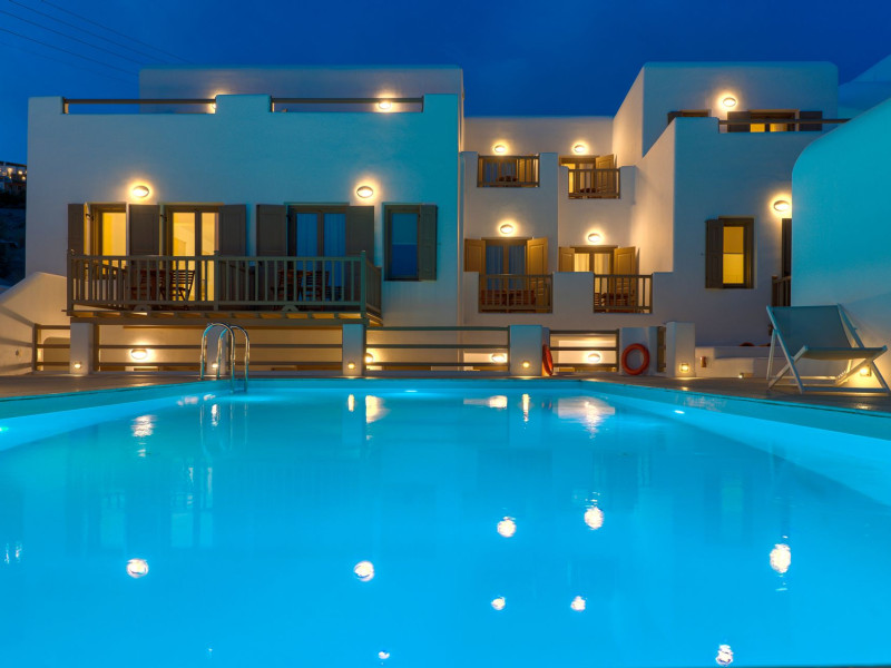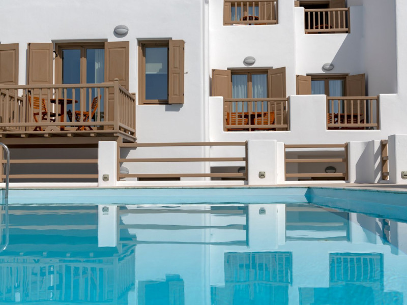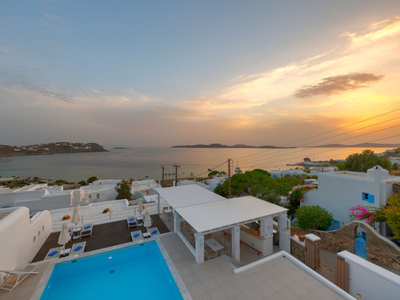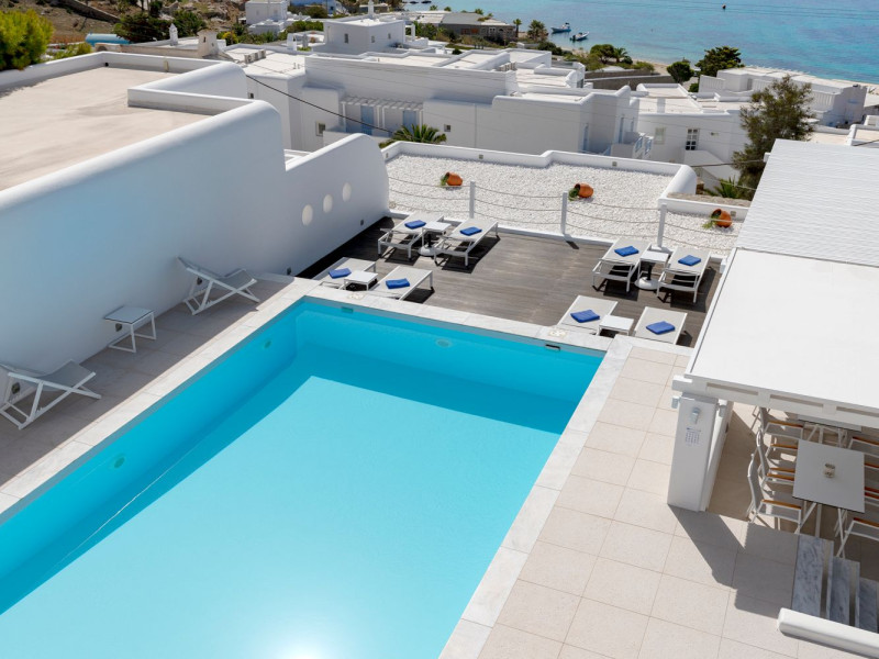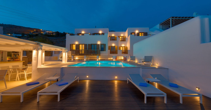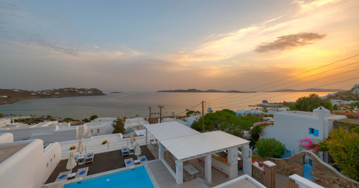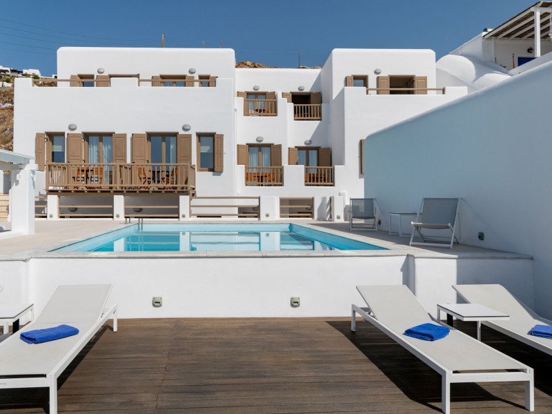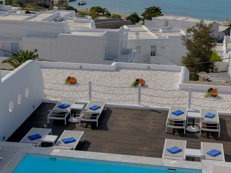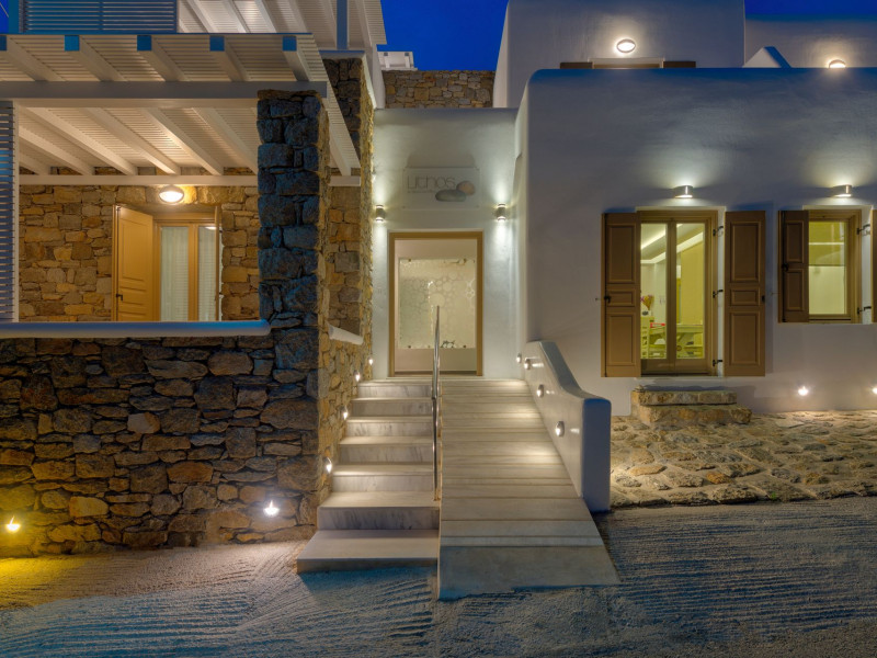 The hotel’s studios and suites are built in authentic Cycladic style with a priority to luxury and comfort. The hospitable and family atmosphere along with the friendly staff service ensure that our guests enjoy a pleasant stay and a truly memorable holiday experience. The traditional chapel of Agios Ioannis, the picturesque harbour, the magnificent view, the sandy beach and the delightful blue water of the Aegean Sea are only a few reasons why one would choose to spend their holiday in this particular part of Mykonos island.Excellent location near the beachLithos Hotel is located 100 m from Agios Ioannis Beach, in the village Agios Ioannis in Mykonos. The picturesque and lively centre of Mykonos Town is 4 km away and Mykonos Airport is at 4.5 km. The sandy beach of Ornos can be reached within 2 km.