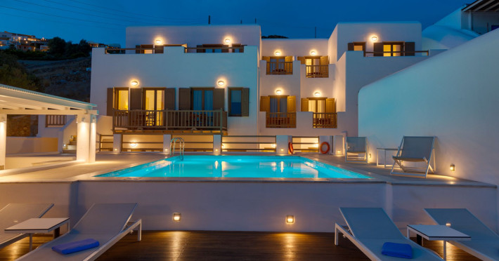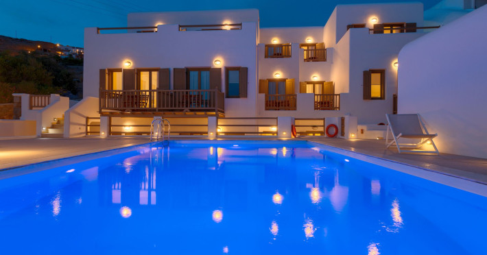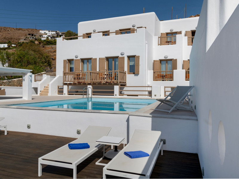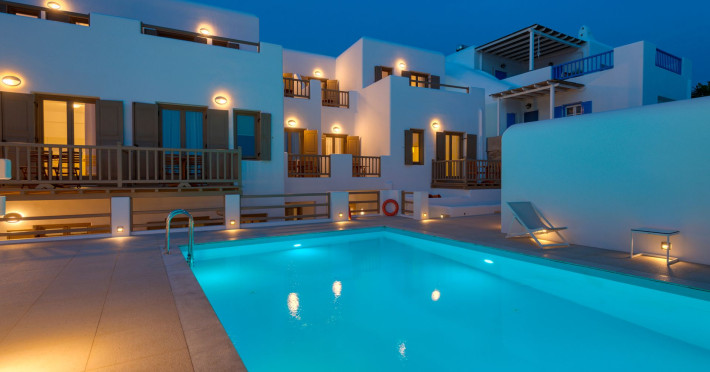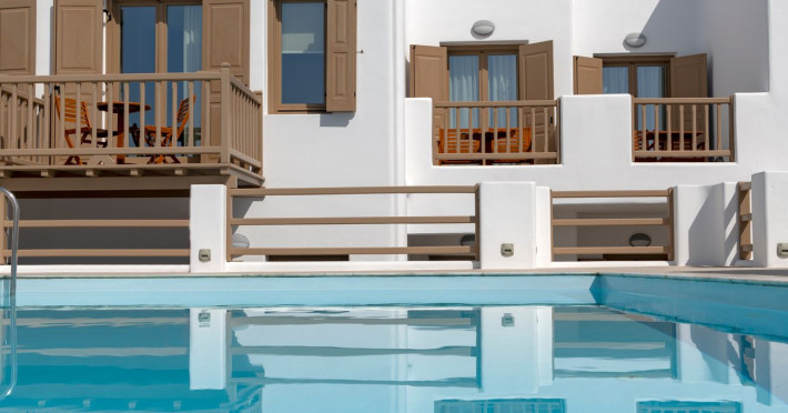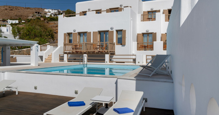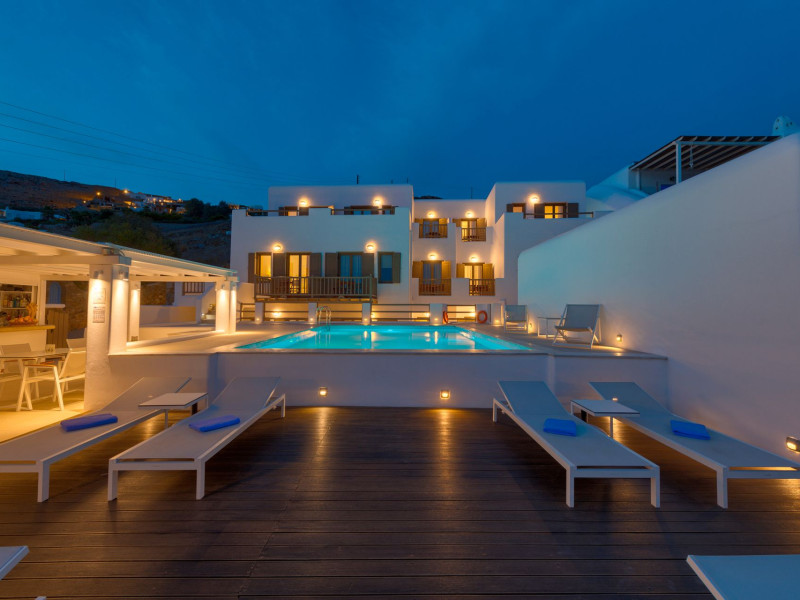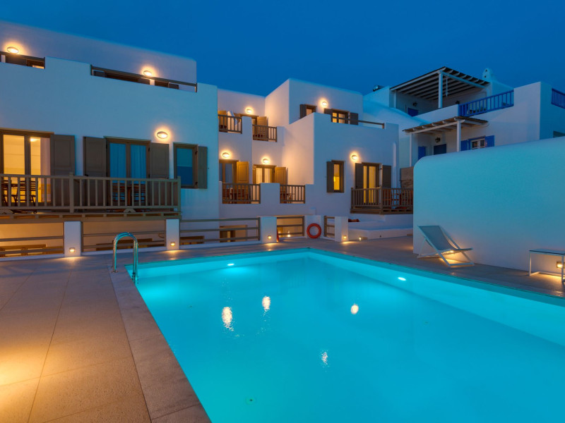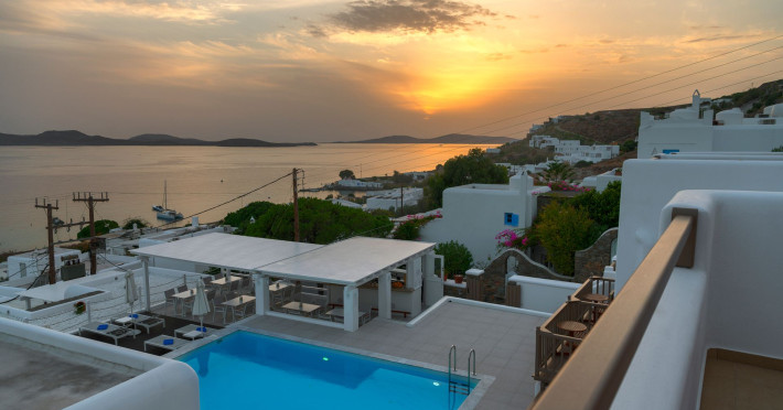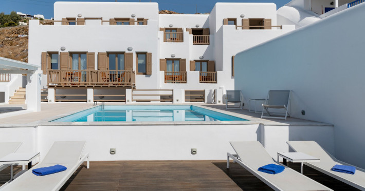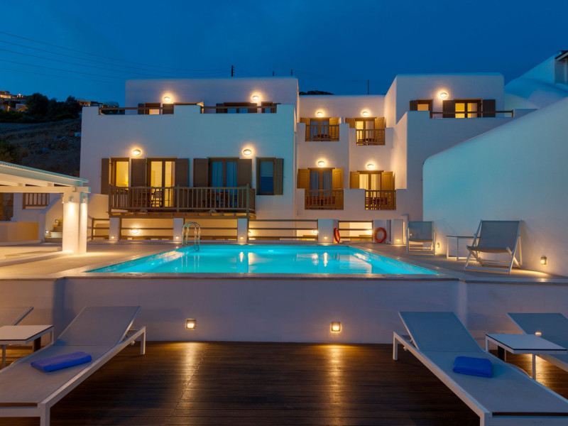 The hotel’s studios and suites are built in authentic Cycladic style with a priority to luxury and comfort. The hospitable and family atmosphere along with the friendly staff service ensure that our guests enjoy a pleasant stay and a truly memorable holiday experience. The traditional chapel of Agios Ioannis, the picturesque harbour, the magnificent view, the sandy beach and the delightful blue water of the Aegean Sea are only a few reasons why one would choose to spend their holiday in this particular part of Mykonos island.Excellent location near the beachLithos Hotel is located 100 m from Agios Ioannis Beach, in the village Agios Ioannis in Mykonos. The picturesque and lively centre of Mykonos Town is 4 km away and Mykonos Airport is at 4.5 km. The sandy beach of Ornos can be reached within 2 km.