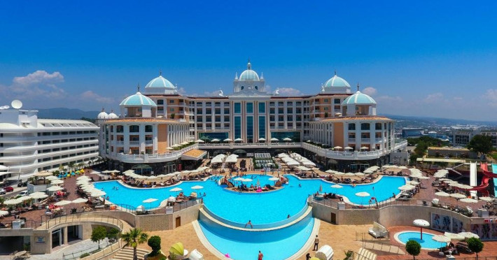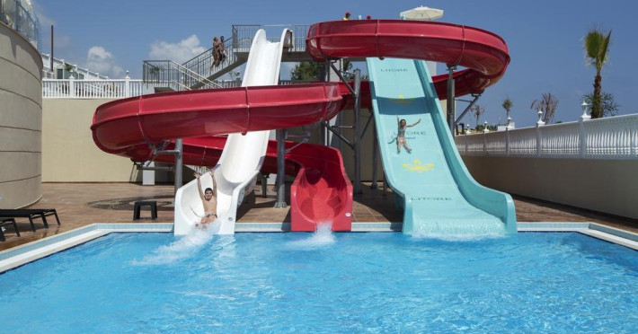Facilitati generale: Hotelul ofera oaspetilor sai urmatoarele facilitati: restaurant principal, 4 restaurante a la carte (Turcesc, Pescaresc, Asiatic, Sushi), inghetata, 6 baruri, patiserie, piscina interioara si exterioara pentru aduti si copii, piscina cu tobogane pentru adulti si copii, muzica live, program de animatie, mini biblioteca, internet wireless, mini golf, aerobic, activitati culturale, jocuri, discoteca, activitati sportive, darts, tenis de masa, voley pe plaja, centru fitness, pilates, boccia, baie turceasca, sauna, mini club, mini disco, dierse jocuri si activitati, aquapark, piscina interioara si exterioara, bufet pentru copii in restaurant. Servicii cu plata: restaurantele a la carte (cu exceptia celui Turcesc si Pescaresc unde este gratuita o rezervare / sejur 7 nopti), bauturile din import (cu exceptia celor servite in Lobby Bar intre orele 10:00 00:00) seif pe plaja, telefon si fax, room service, doctor, magazine, servicii de curatatorie, biliard, cursuri si lectii private, play station, sporturi acvatice, masaj si alte tratamente, baie turceasca, vitamin bar, sali de conferinta.