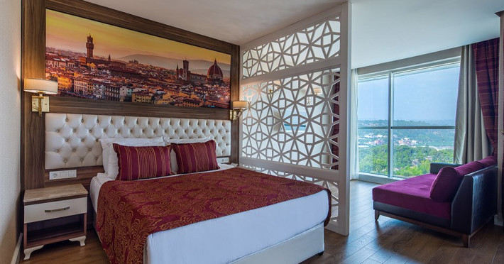 Localizare: Hotelul este situat la 90 km fata de aeroportul Antalya, la 70 km de aeroportul Gazipasa Alanya si la 35 km de orasul antic Side.