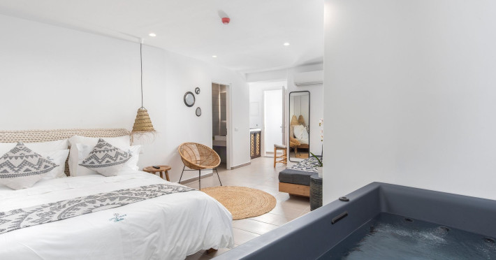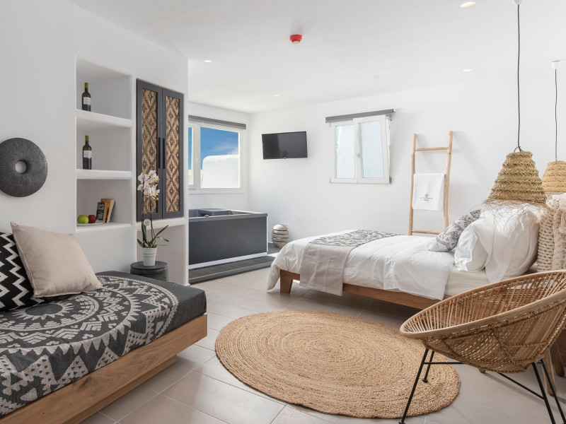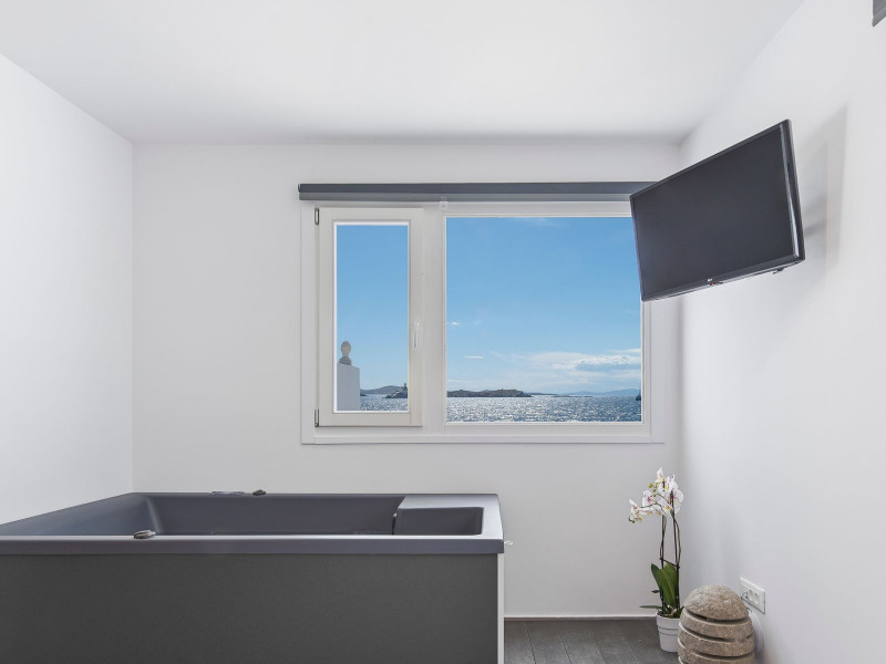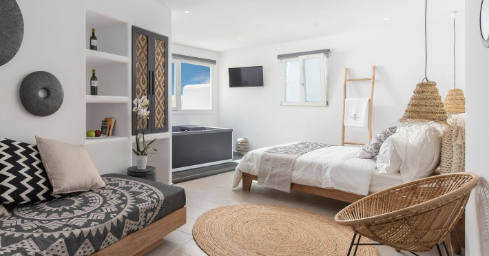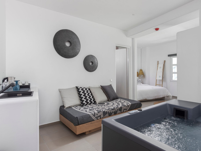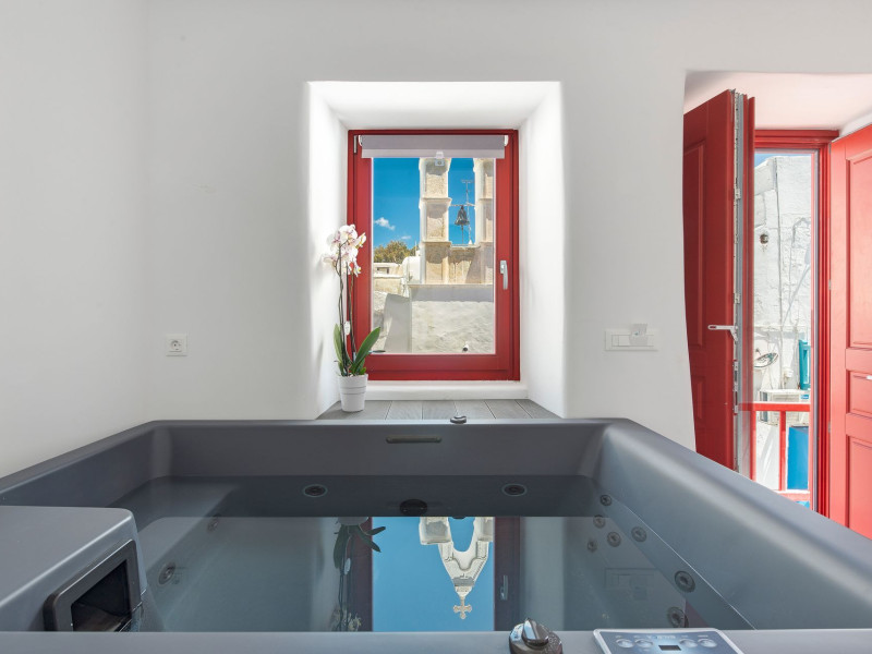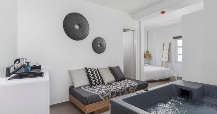 located in the heart of mykonos town, within a few-step walking distance from the nightlife, "little venice villas" promise to ignite your senses. each of them is equipped with indoor hot tub, sink - minibar - smart tv, a/c - closet - safety box- rainfall shower head.