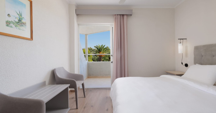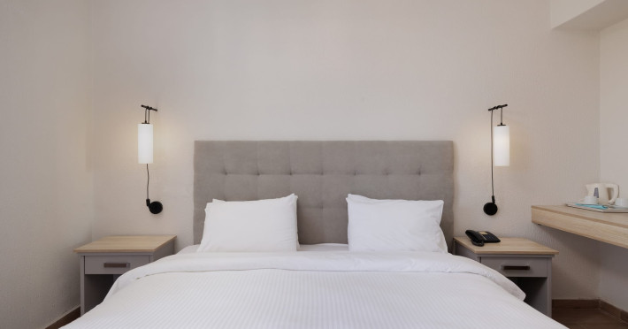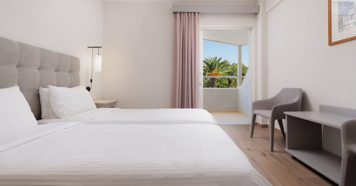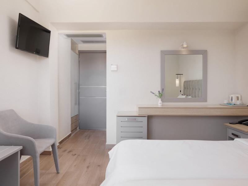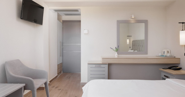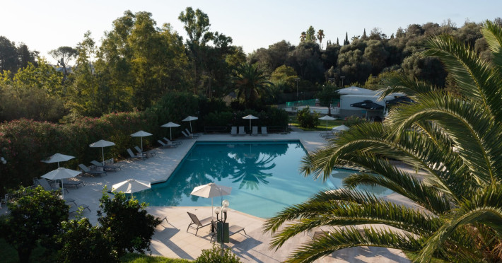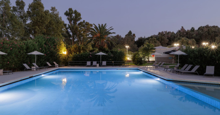 Located just 12 km from the capital of Corfu and only 300 meters from the Blue Flag–awarded beach of Dassia, Livadi Nafsika Hotel offers a tranquil retreat for adult travelers seeking rest and relaxation.The hotel features comfortable accommodation and a calm, welcoming atmosphere, making it an ideal choice for couples and solo travelers. Small pets are also welcome, with furry companions accepted up to 5 kg.Guests can enjoy an easy walk to the nearby beach to admire the crystal-clear waters of the Ionian Sea, savor Mediterranean flavors at the on-site restaurant, or unwind with a refreshing swim in the outdoor pool. Thanks to its central location, the hotel provides an excellent base for exploring the island by car, while a convenient bus connection (Bus No. 7) is located nearby, offering easy and frequent access to Corfu Town. Our attentive and friendly staff is dedicated to ensuring every stay is a memorable and enjoyable experience.
