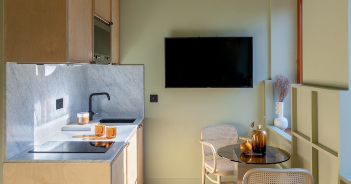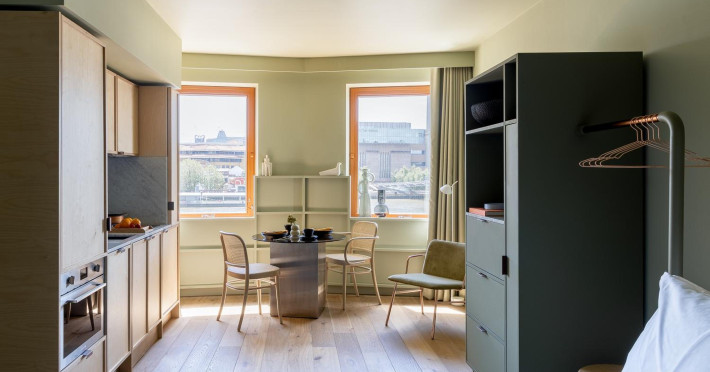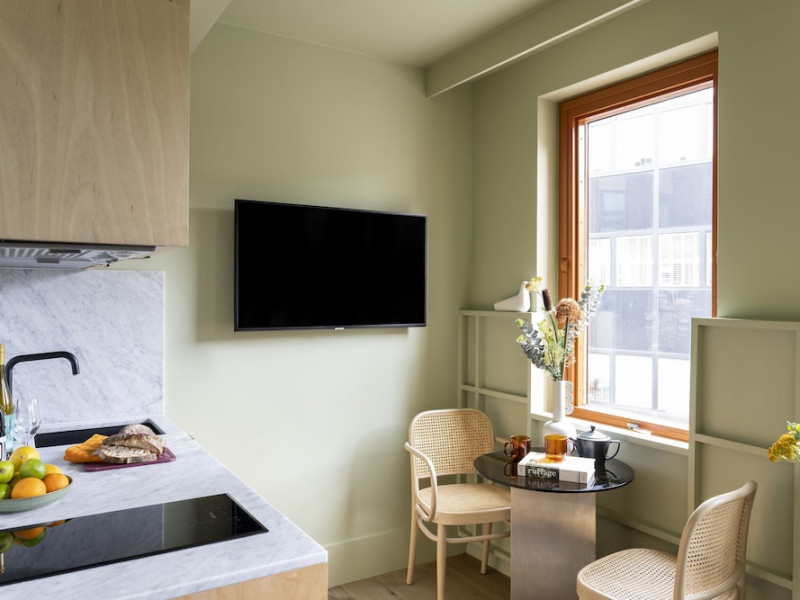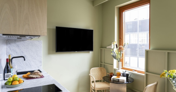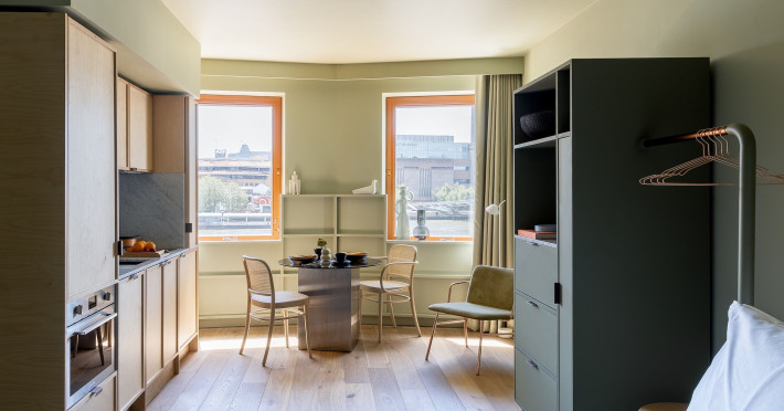 Locke at Broken Wharf offers riverside studio apartments in the heart of London, providing easy access to iconic attractions and businesses in the City. Tate Modern and Shakespeare's Globe are nearby, with convenient access to the rest of London via Bank, Cannon Street, or Mansion House tube stations. The aparthotel features a design-led co-working space, a fitness center (subject to a signed disclaimer), complimentary Wi-Fi, a 24-hour front desk, luggage storage, laundry facilities, and bike parking. Guests can enjoy meals at Frequency or snacks at the coffee shop/cafe, and mingle at the complimentary daily reception. The air-conditioned rooms include kitchens with refrigerators and stovetops, 42-inch flat-screen televisions with digital programming, safes, and desks. Housekeeping is provided weekly for longer stays. Dog-friendly accommodations are available (subject to additional charges, a completed pet waiver, and size restrictions). Smoking is prohibited. On-site laundry service and laundromat are available. The Locke At Broken Wharf is a hotel.
