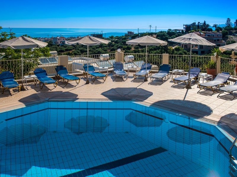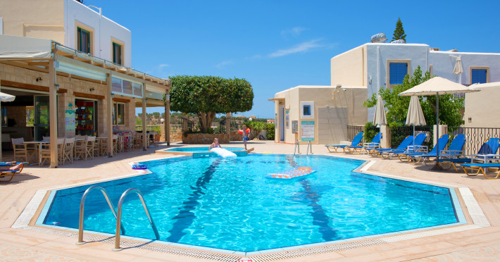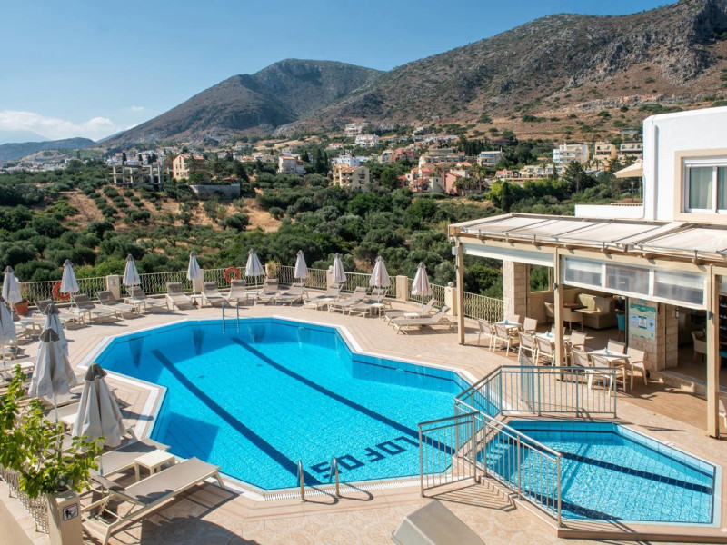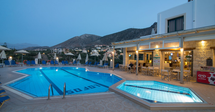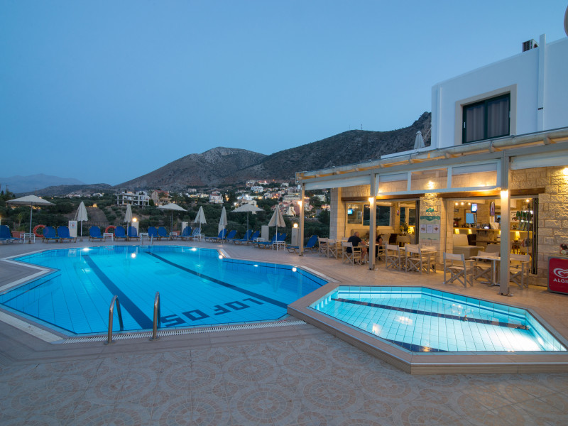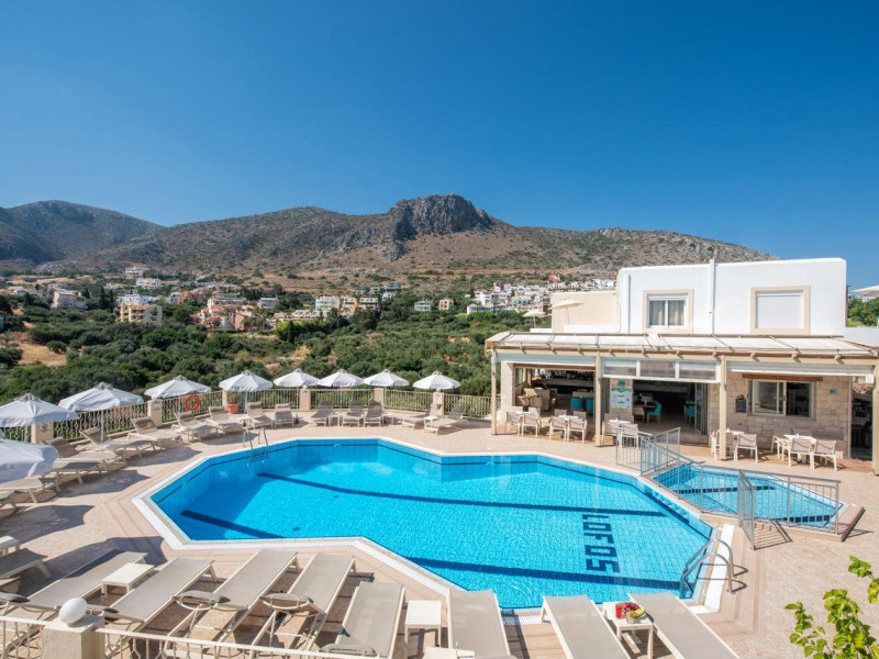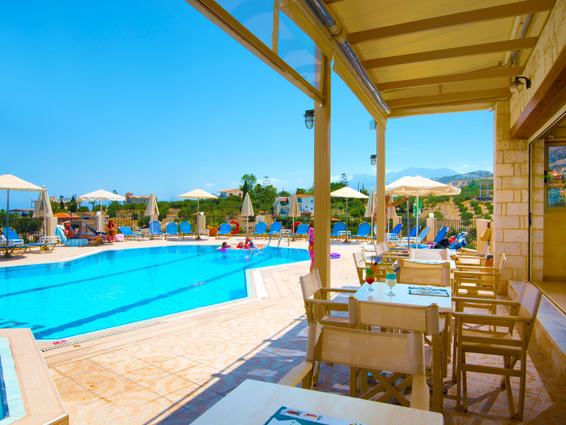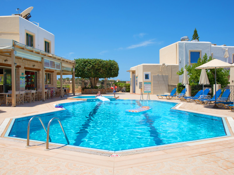 Facilities and services include restaurant, bar, coffee shop, lounge, swimming pool, children’s playground, wireless Internet access .Studios feature telephone, safe (extra charge), air conditioning (extra charge), wireless Internet access at public areas , tea/coffee maker, kitchenette, fridge, balcony/terrace, hairdryer and bathroom.Note: Reception with limited opening hours. Please advise flight number and estimated arrival time when booking this hotel.Please note that some of the above facilities may be closed due to weather / seasonal conditions.Address: Eleftherias Street, Piskopiano, 70014 Hersonissos, Crete, Greece.