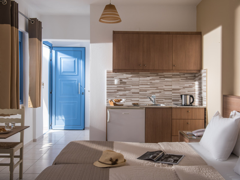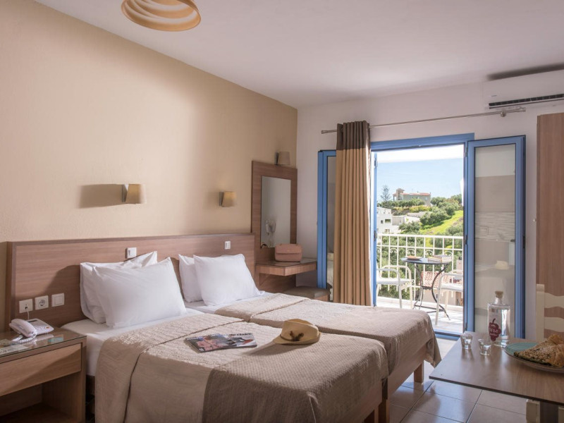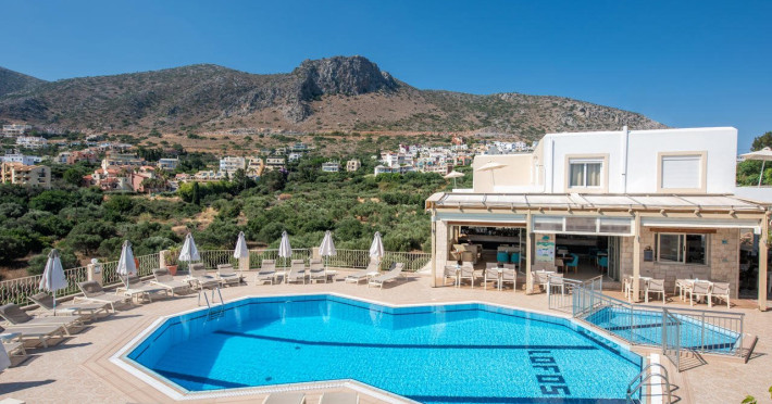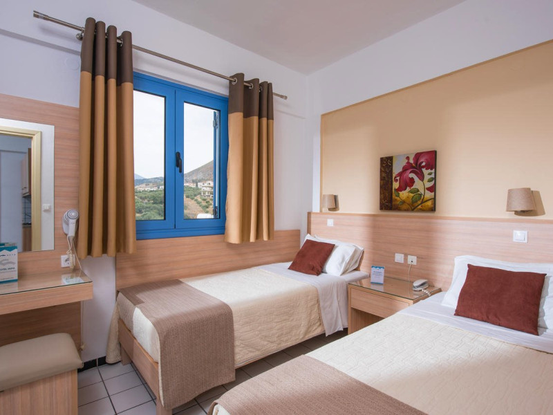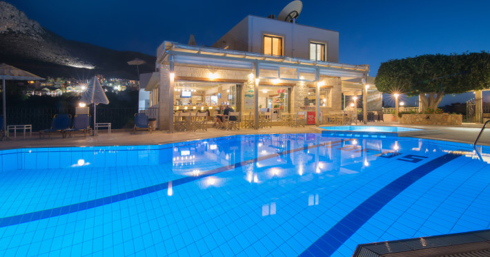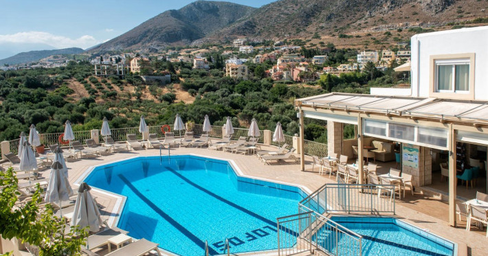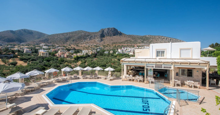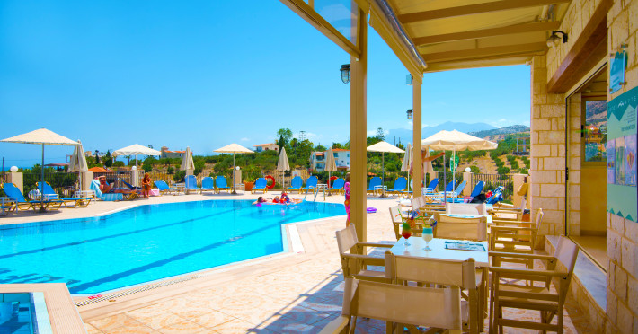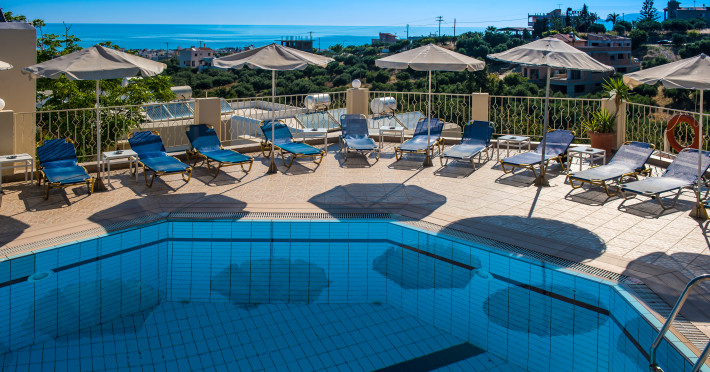 Facilities and services include restaurant, bar, coffee shop, lounge, swimming pool, children’s playground, wireless Internet access .Studios feature telephone, safe (extra charge), air conditioning (extra charge), wireless Internet access at public areas , tea/coffee maker, kitchenette, fridge, balcony/terrace, hairdryer and bathroom.Note: Reception with limited opening hours. Please advise flight number and estimated arrival time when booking this hotel.Please note that some of the above facilities may be closed due to weather / seasonal conditions.Address: Eleftherias Street, Piskopiano, 70014 Hersonissos, Crete, Greece.