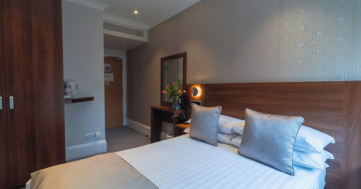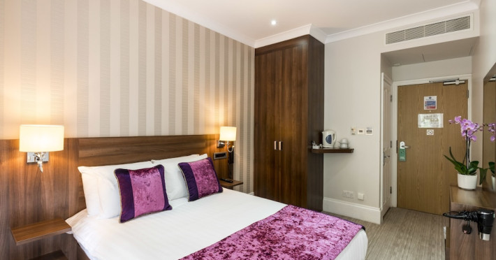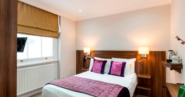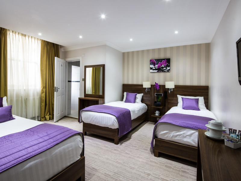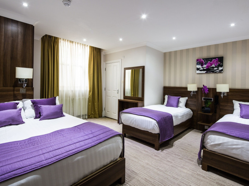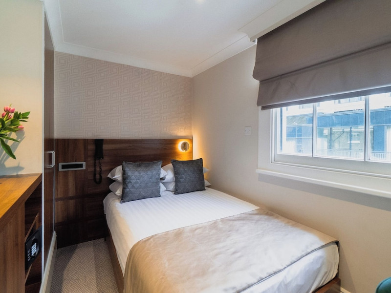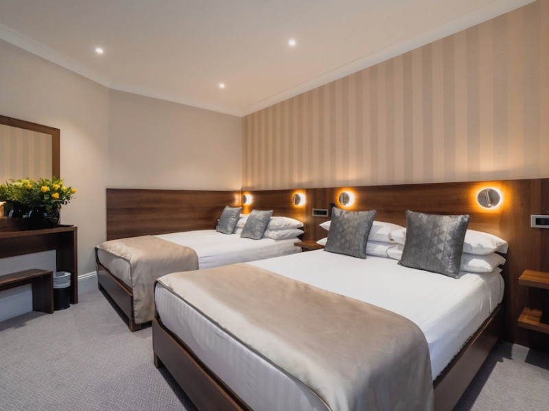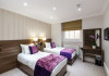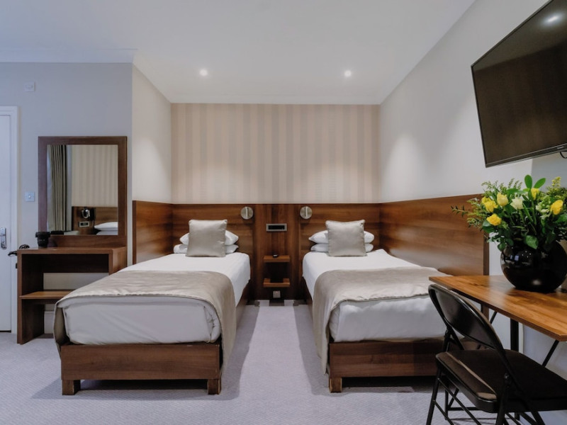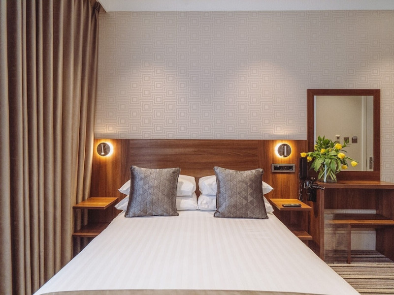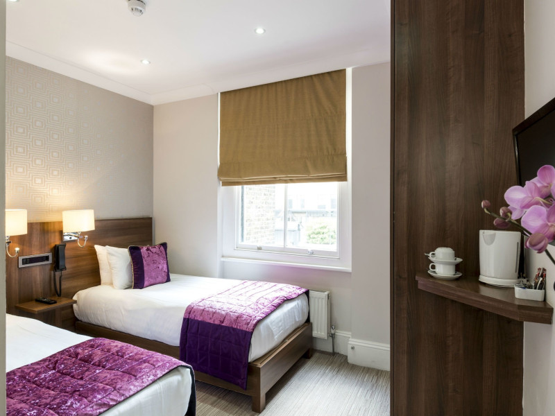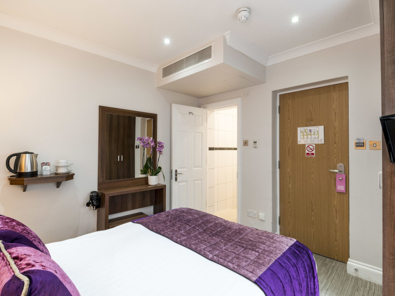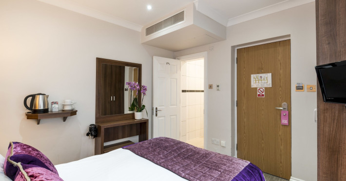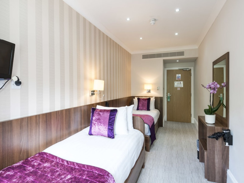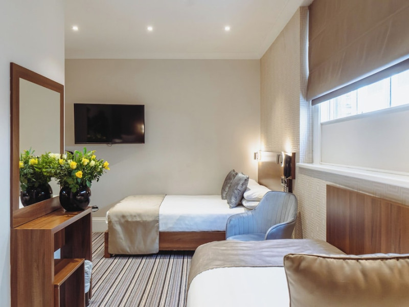 The 3-star London House Hotel combines Victorian charm with modern comfort, housed within five interconnected Victorian-era buildings. Its 103 rooms are designed for both style and functionality, featuring simple painted walls, dark wood veneer furnishings (bedheads, shelves, wardrobes), and comfortable beds accented with Byzantium purple cushions. Each room includes an en suite shower room with complimentary toiletries and a hair dryer. Standard amenities comprise minibars, flat-screen or LCD televisions with cable programming, phones, safes, and electric kettles. Air conditioning is available, with select rooms also offering linen service, blackout curtains, and coffee/tea making facilities.