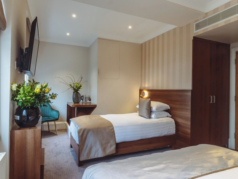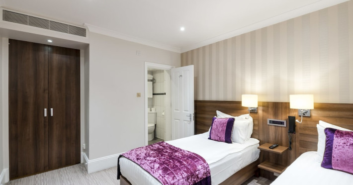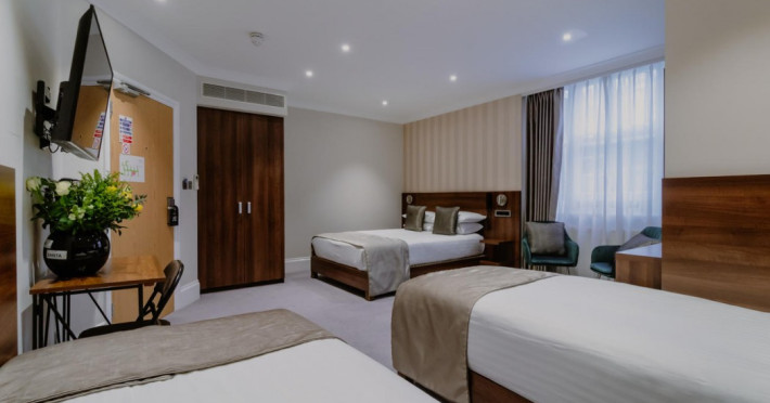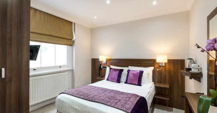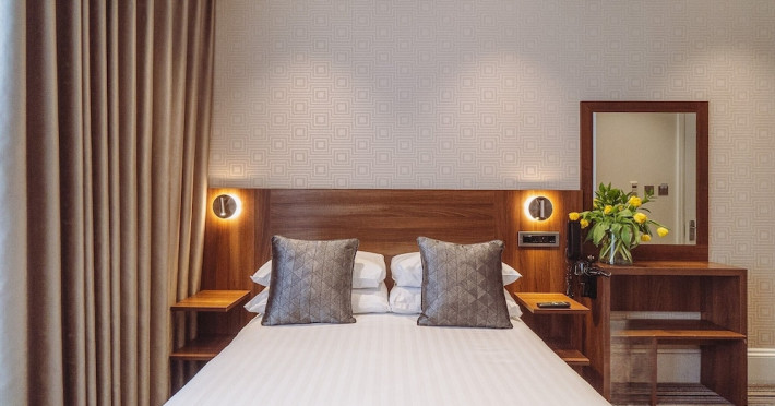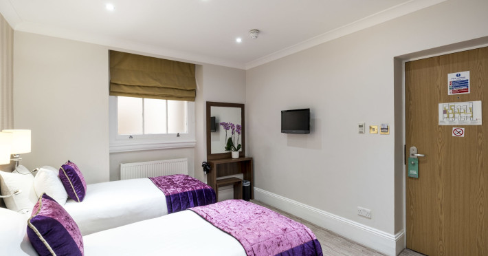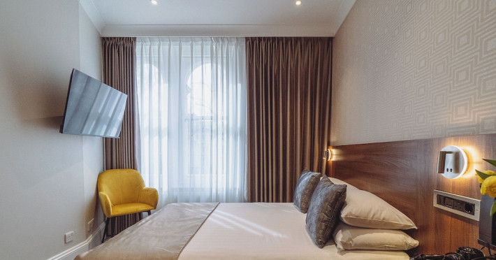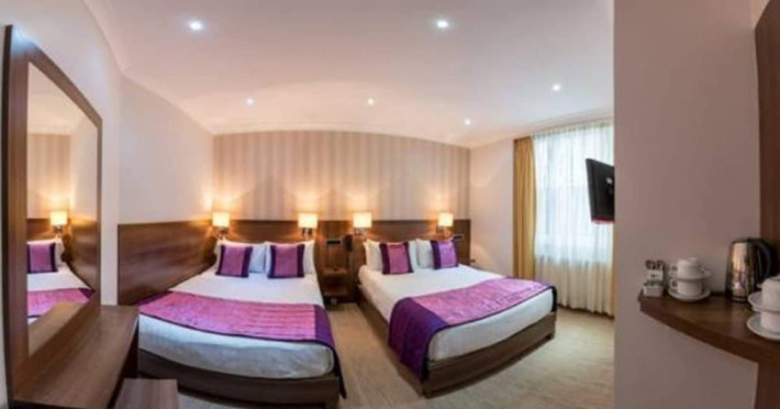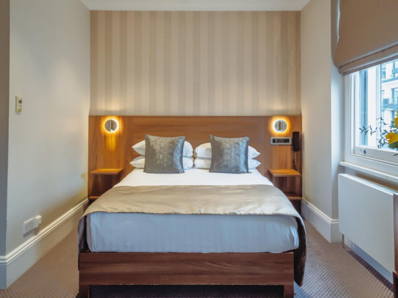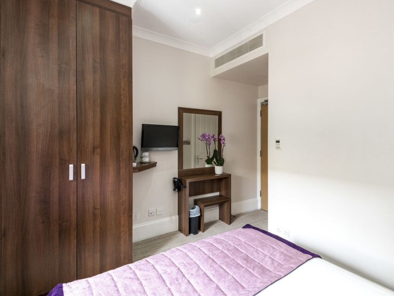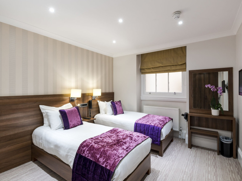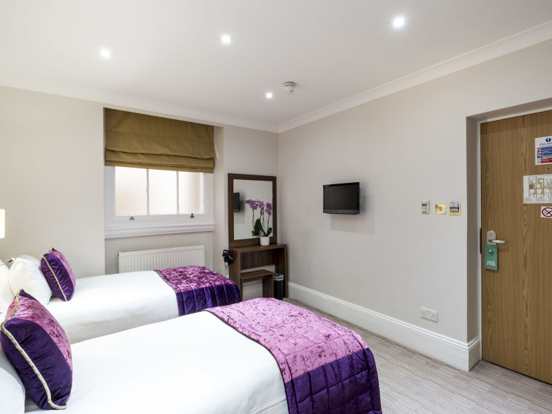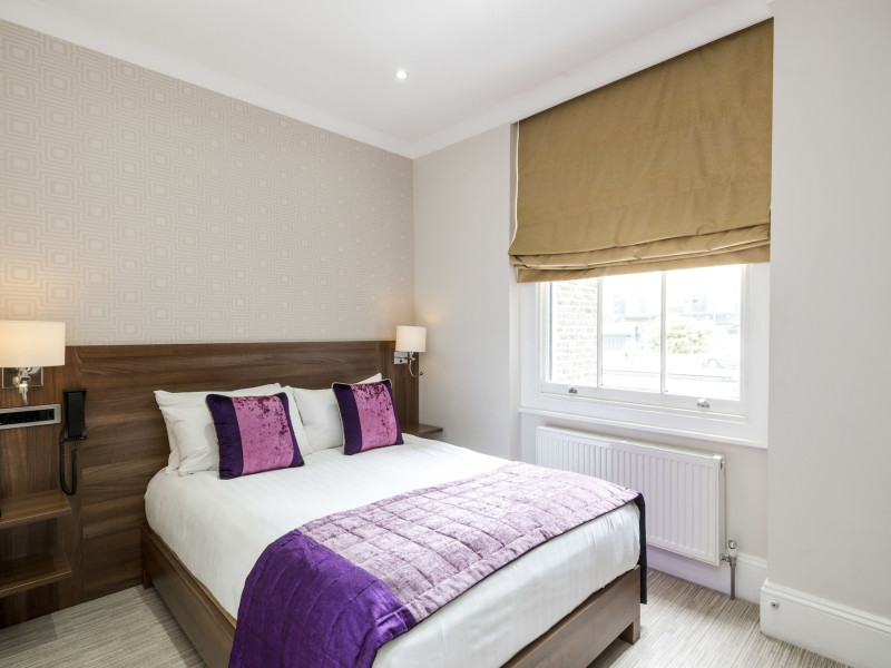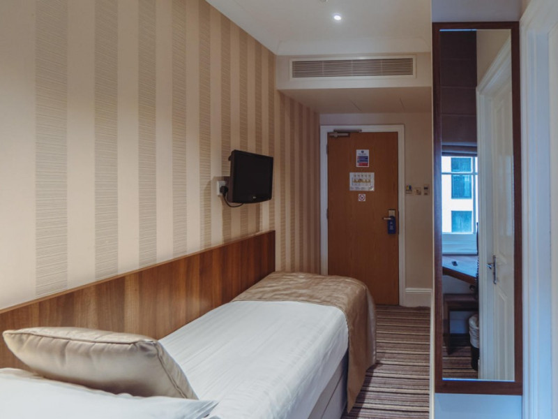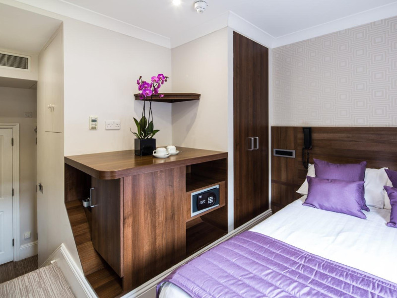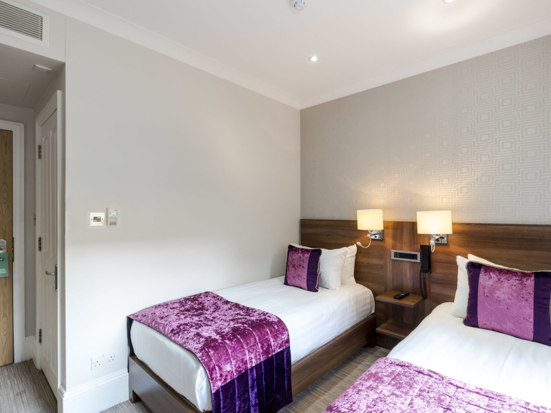 The 3-star London House Hotel combines Victorian charm with modern comfort, housed within five interconnected Victorian-era buildings. Its 103 rooms are designed for both style and functionality, featuring simple painted walls, dark wood veneer furnishings (bedheads, shelves, wardrobes), and comfortable beds accented with Byzantium purple cushions. Each room includes an en suite shower room with complimentary toiletries and a hair dryer. Standard amenities comprise minibars, flat-screen or LCD televisions with cable programming, phones, safes, and electric kettles. Air conditioning is available, with select rooms also offering linen service, blackout curtains, and coffee/tea making facilities.