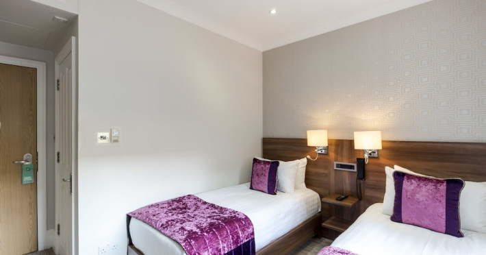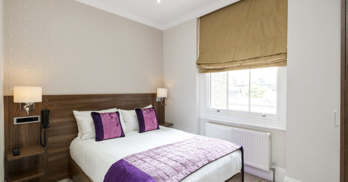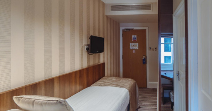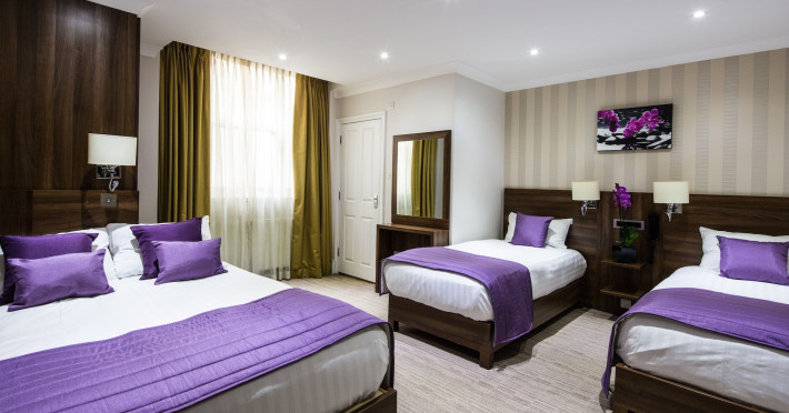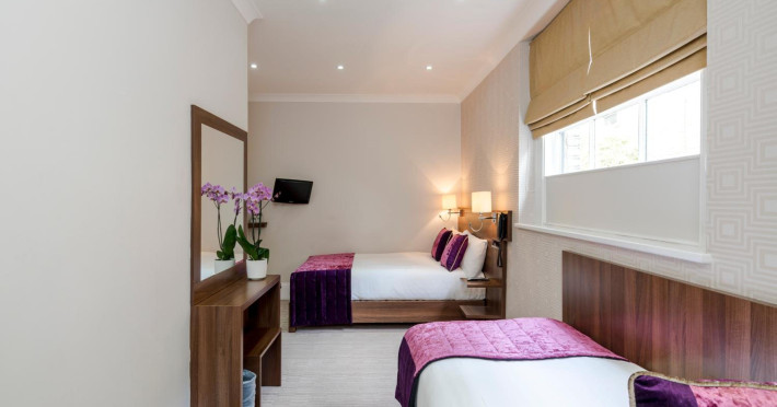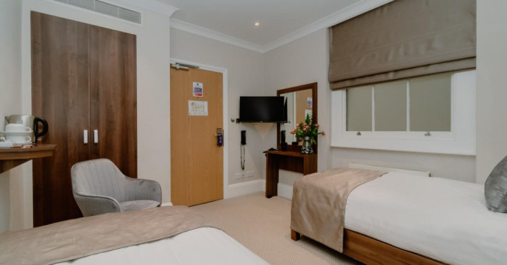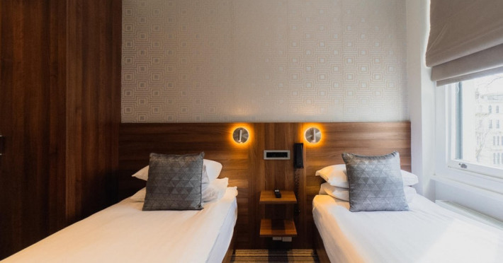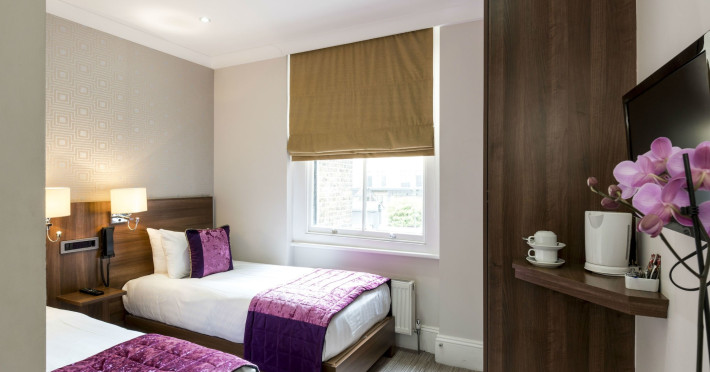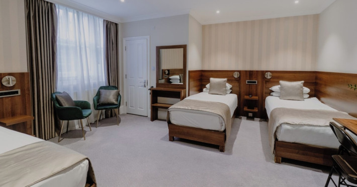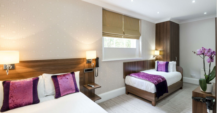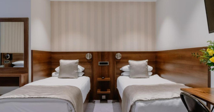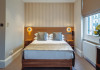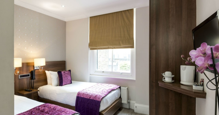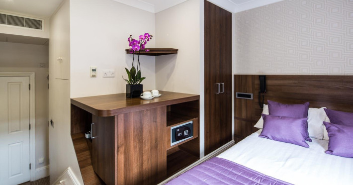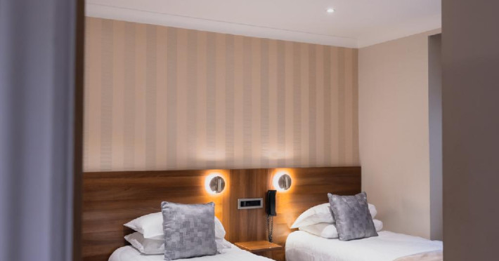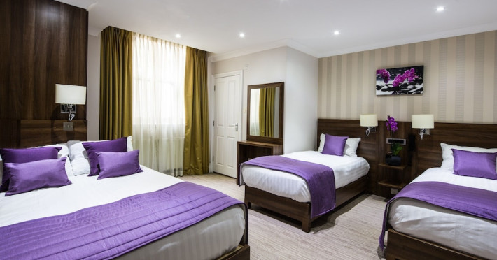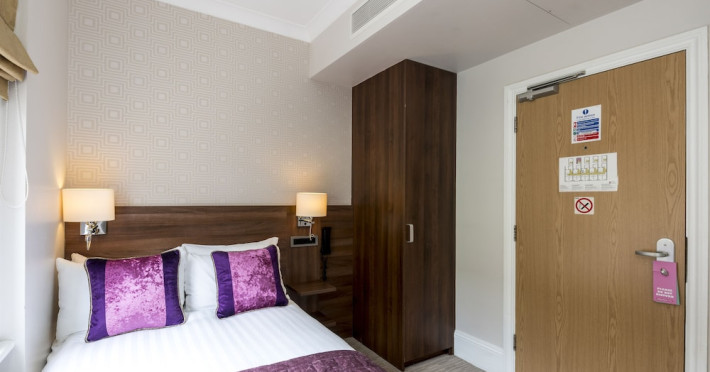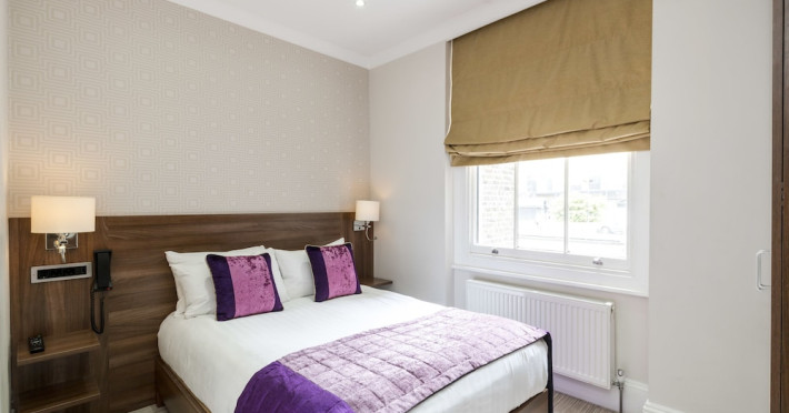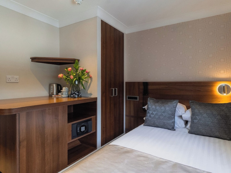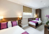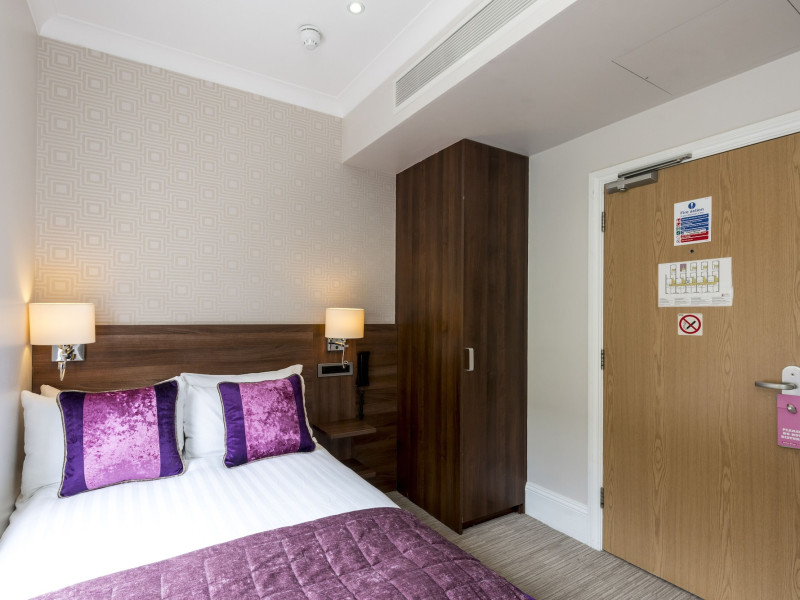 The 3-star London House Hotel combines Victorian charm with modern comfort, housed within five interconnected Victorian-era buildings. Its 103 rooms are designed for both style and functionality, featuring simple painted walls, dark wood veneer furnishings (bedheads, shelves, wardrobes), and comfortable beds accented with Byzantium purple cushions. Each room includes an en suite shower room with complimentary toiletries and a hair dryer. Standard amenities comprise minibars, flat-screen or LCD televisions with cable programming, phones, safes, and electric kettles. Air conditioning is available, with select rooms also offering linen service, blackout curtains, and coffee/tea making facilities.