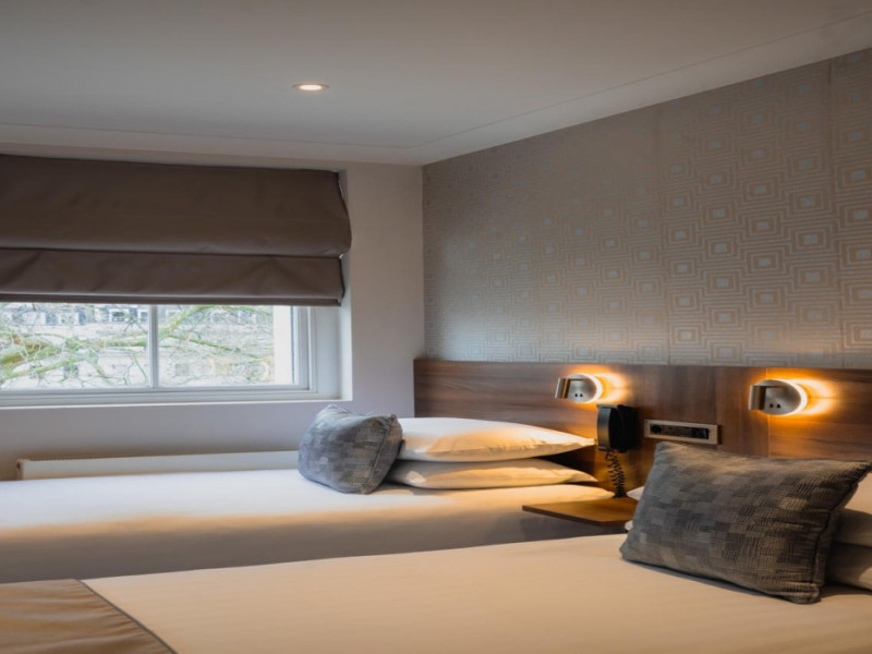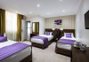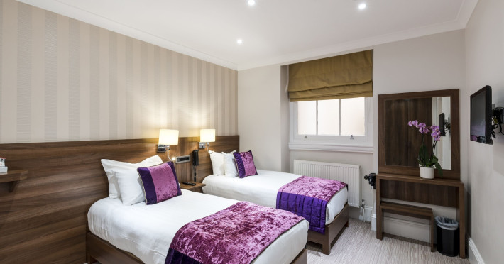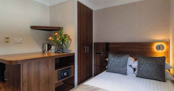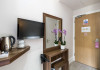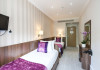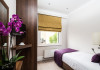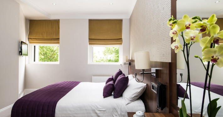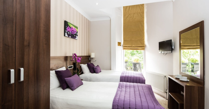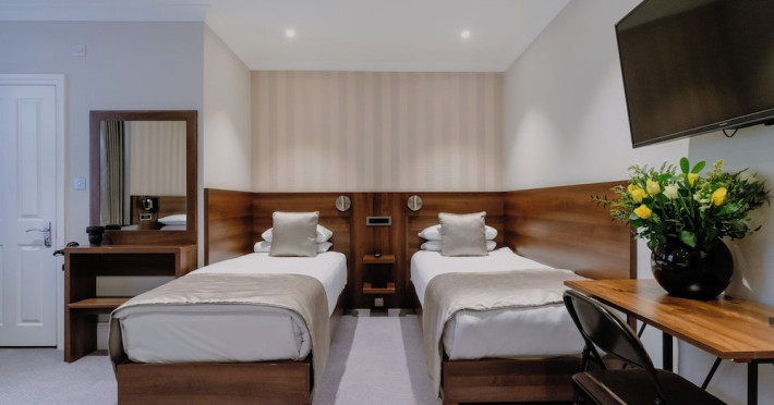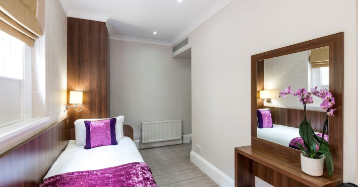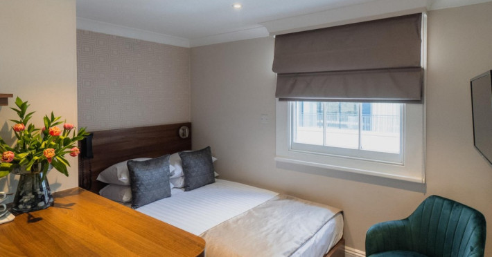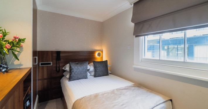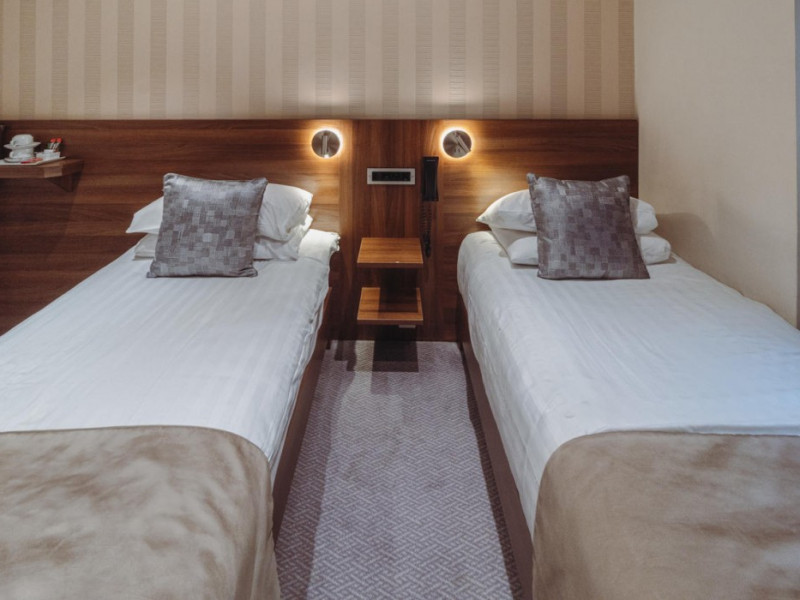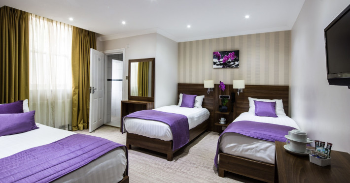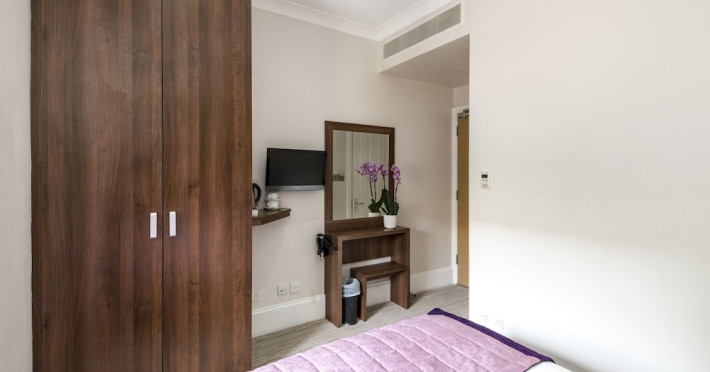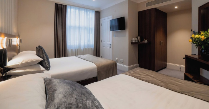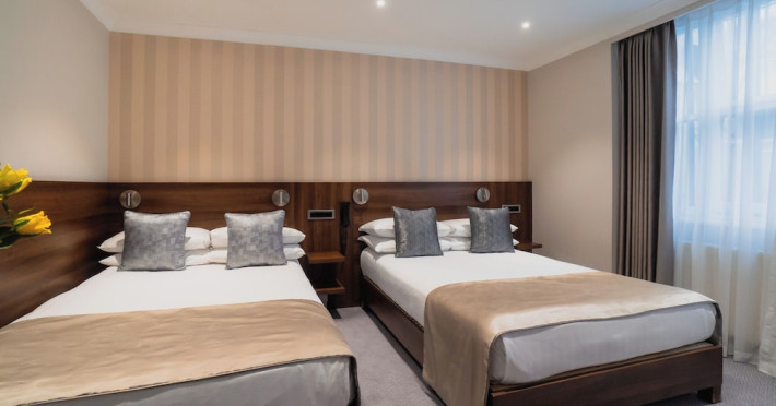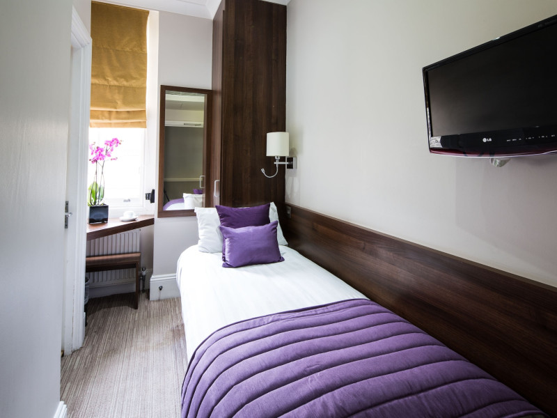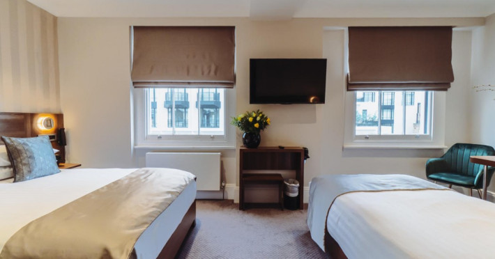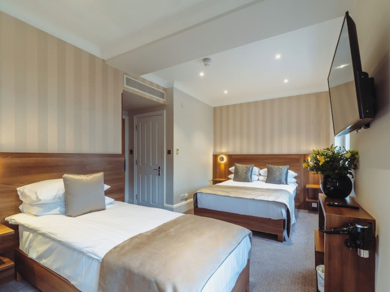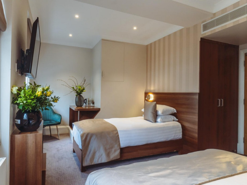 The 3-star London House Hotel combines Victorian charm with modern comfort, housed within five interconnected Victorian-era buildings. Its 103 rooms are designed for both style and functionality, featuring simple painted walls, dark wood veneer furnishings (bedheads, shelves, wardrobes), and comfortable beds accented with Byzantium purple cushions. Each room includes an en suite shower room with complimentary toiletries and a hair dryer. Standard amenities comprise minibars, flat-screen or LCD televisions with cable programming, phones, safes, and electric kettles. Air conditioning is available, with select rooms also offering linen service, blackout curtains, and coffee/tea making facilities.