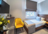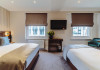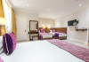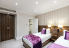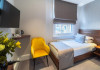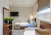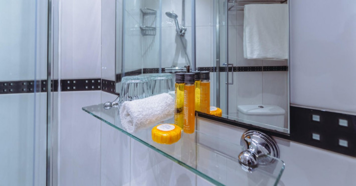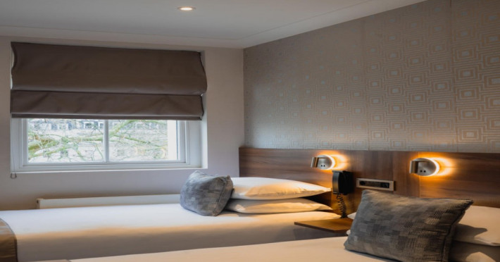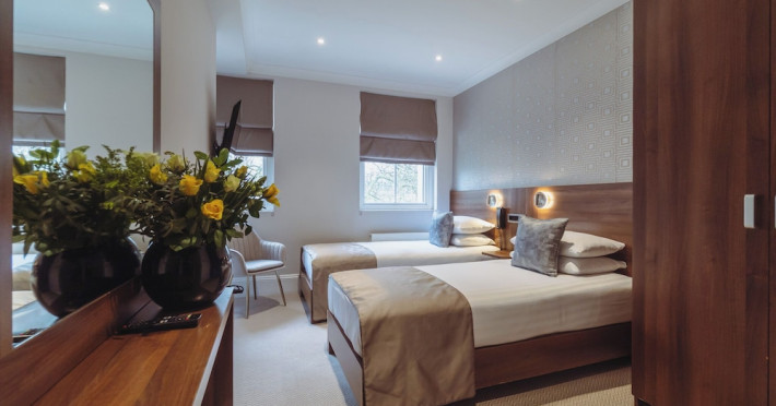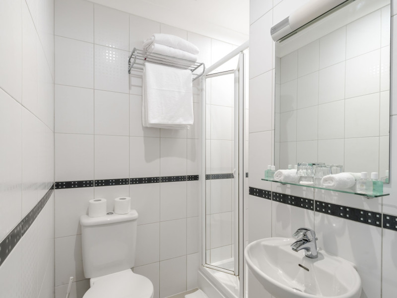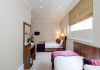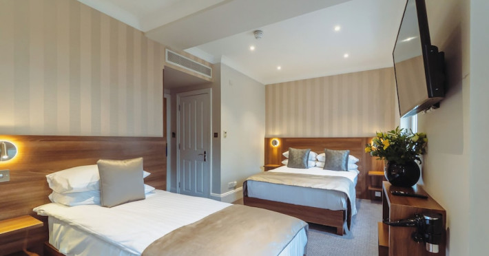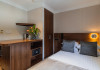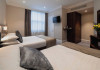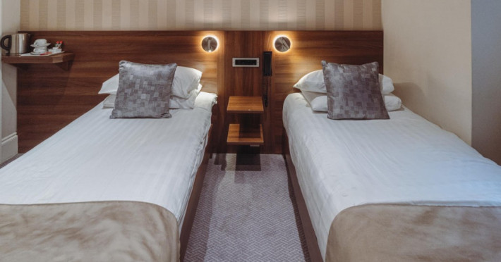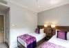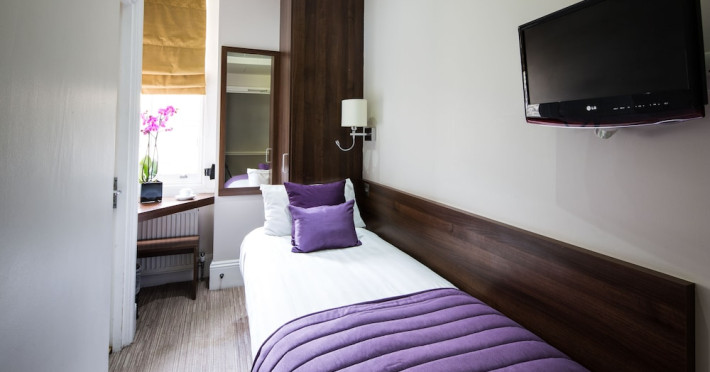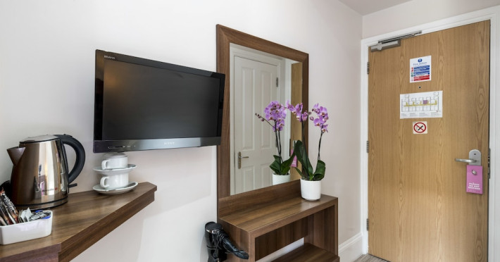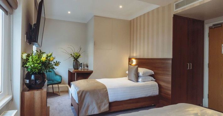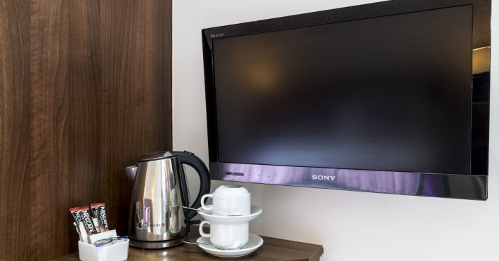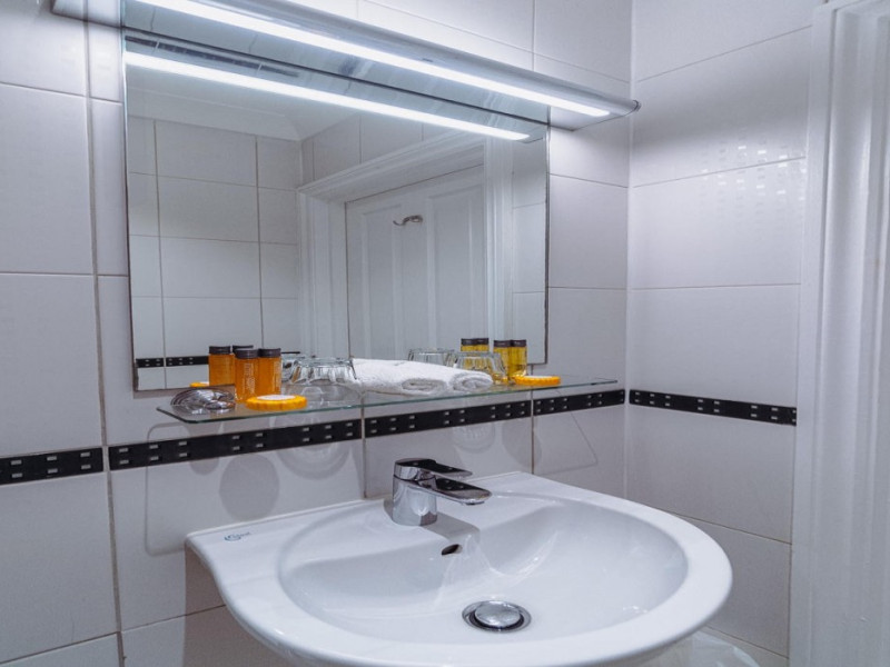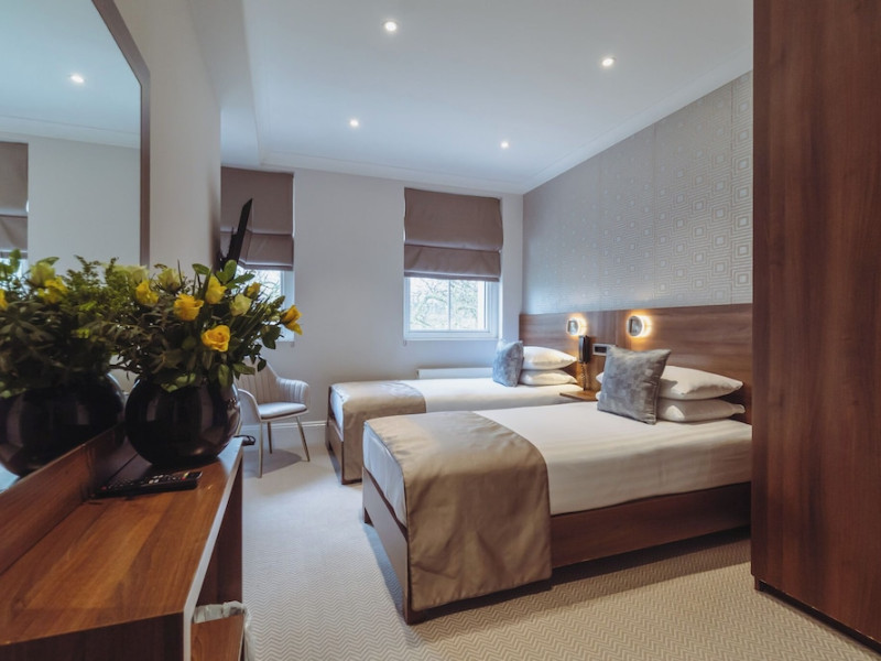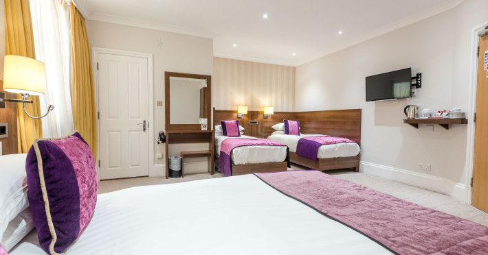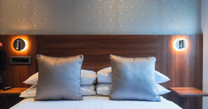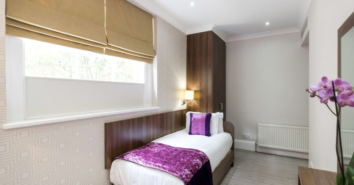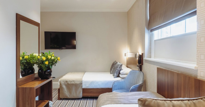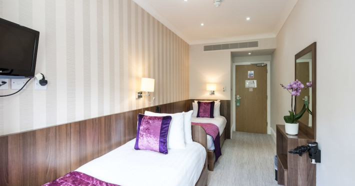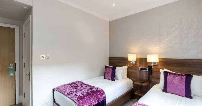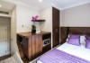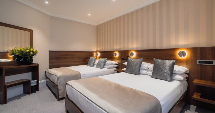 The 3-star London House Hotel combines Victorian charm with modern comfort, housed within five interconnected Victorian-era buildings. Its 103 rooms are designed for both style and functionality, featuring simple painted walls, dark wood veneer furnishings (bedheads, shelves, wardrobes), and comfortable beds accented with Byzantium purple cushions. Each room includes an en suite shower room with complimentary toiletries and a hair dryer. Standard amenities comprise minibars, flat-screen or LCD televisions with cable programming, phones, safes, and electric kettles. Air conditioning is available, with select rooms also offering linen service, blackout curtains, and coffee/tea making facilities.