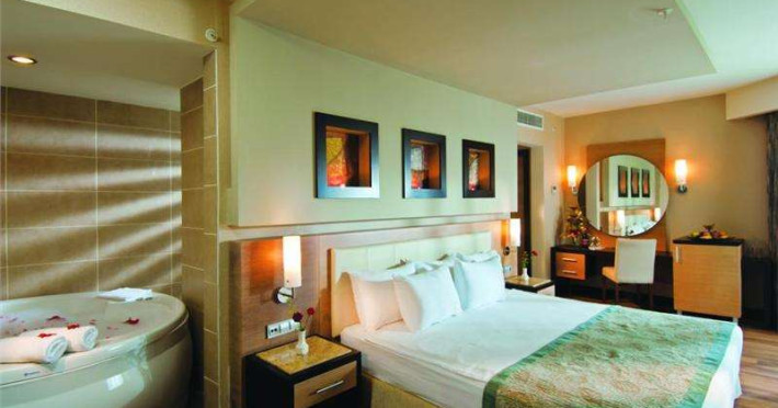 Restaurant principal, villa restaurant, meniu dietetic, 5 restaurante A la Carte( italian, chinezesc, otoman, pescaresc, mexican), 3 piscine exterioare( 1 cu apa de mare), o piscina interioara, 8 tobogane acvatice, aquaparc, cinema, centru SPA, centru thalasso, baie turceasca, sauna, baie cu aburi, jacuzzi, sala de fitness, aerobic, aqua aerobic, volei pe plaja, 2 terenuri de tenis, tenis de masa, darts, masaj, bowling, biliard, sporturi nautice. Plaja proprie cu nisip/pietris, ponton. Pentru copii: 2 piscine, 4 tobogane acvatice, loc de joaca, mini club, lunaparc, aquaparc(corabie de pirati), cinema pentru copii.