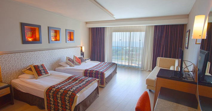 Facilitati hotel: Hotelul ofera oaspetilor sai urmatoarele facilitati: restaurant principal, patiserie, inghetata, 3 restaurante a la carte, baruri, cafenea, piscina cu apa de mare, piscina principala, aquapark cu 10 tobogane pentru adulti si 5 tobogane pentru copii, piscine in zona de vile, piscina interioara, jacuzzi, sauna, baie turceasca, centru fitness, sala de jocuri, basket, volei pe plaja, gimnastica, mini fotbal, tenis de masa, step, aerobic, muzica live, programe de animatie, internet wi-fi, mini club (4-12 ani), loc de joaca, mini disco, bufet pentru copii in restaurantul principal, aquapark. Servicii cu plata: rezervare pentru restaurantele a la carte, room service, fresh-uri din fructe, bauturi premium, bauturi imbuteliate, nocturna si echipament pentru tenis, biliard, sporturi acvatice, masaj si alte tratamente in centrul Spa, servicii de curatatorie, servicii medicale.