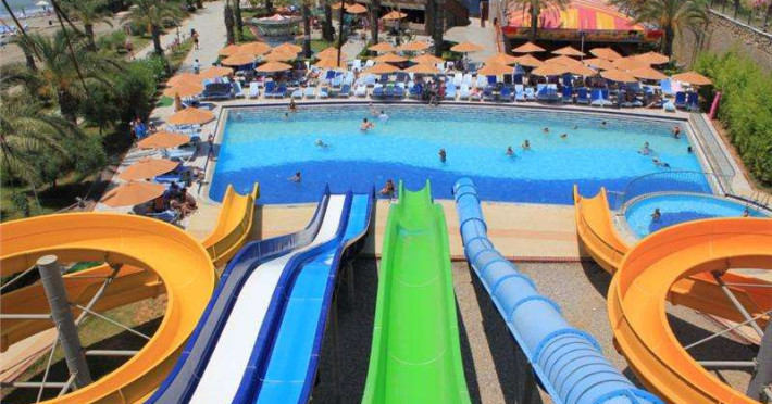 Restaurant principal, villa restaurant, meniu dietetic, 5 restaurante A la Carte( italian, chinezesc, otoman, pescaresc, mexican), 3 piscine exterioare( 1 cu apa de mare), o piscina interioara, 8 tobogane acvatice, aquaparc, cinema, centru SPA, centru thalasso, baie turceasca, sauna, baie cu aburi, jacuzzi, sala de fitness, aerobic, aqua aerobic, volei pe plaja, 2 terenuri de tenis, tenis de masa, darts, masaj, bowling, biliard, sporturi nautice. Plaja proprie cu nisip/pietris, ponton. Pentru copii: 2 piscine, 4 tobogane acvatice, loc de joaca, mini club, lunaparc, aquaparc(corabie de pirati), cinema pentru copii.