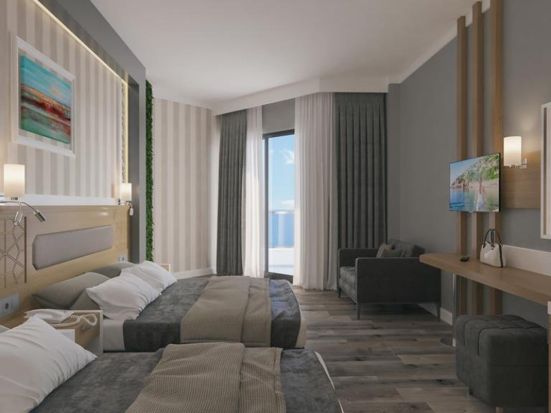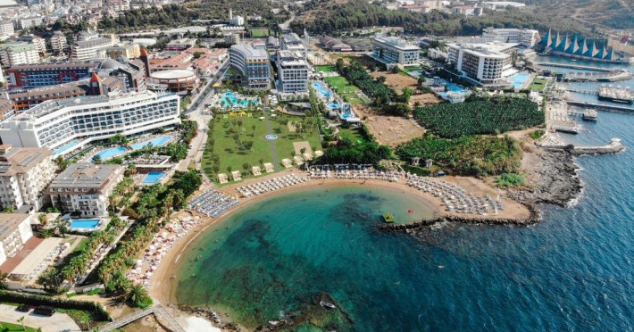 Localizare: Hotelul este situat pe plaja, in Alanya, la aproximativ 22 km de centrul orasului Alanya si la aproximativ 98 km de Aeroportul Antalya .