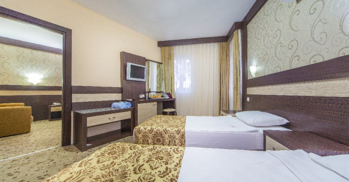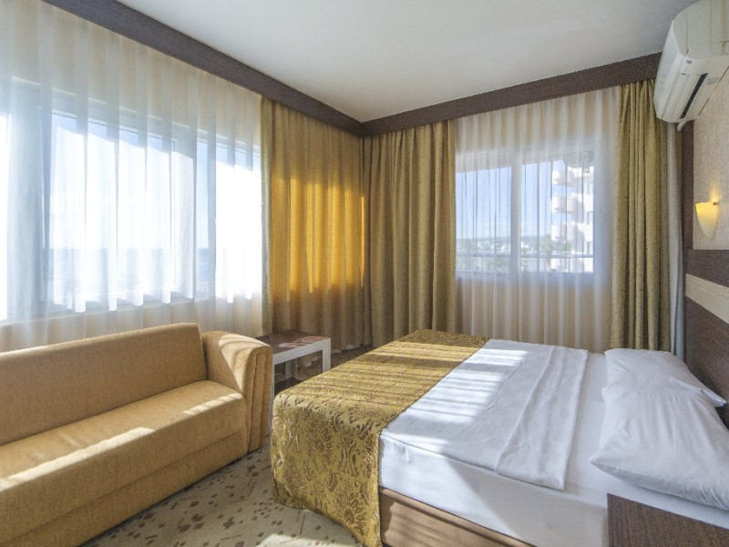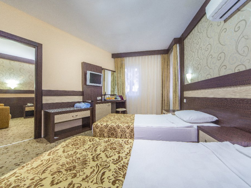 Dotari camere: Camerele hotelului sunt dotate cu: aer conditionat, baie cu cabina de dus, TV satelit, telefon, seif, mini bar, parchet, balcon, facilitati pentru prepararea ceaiului si cafelei.