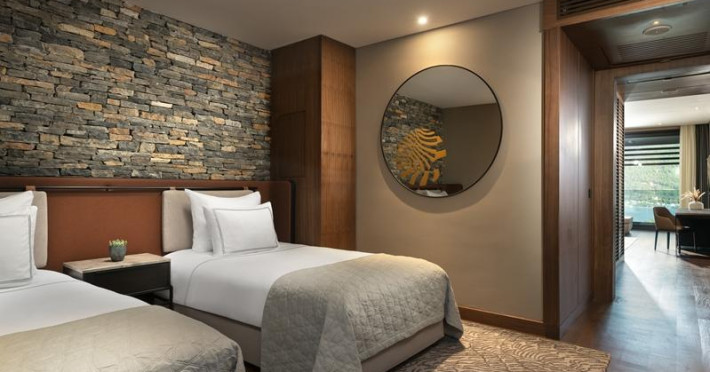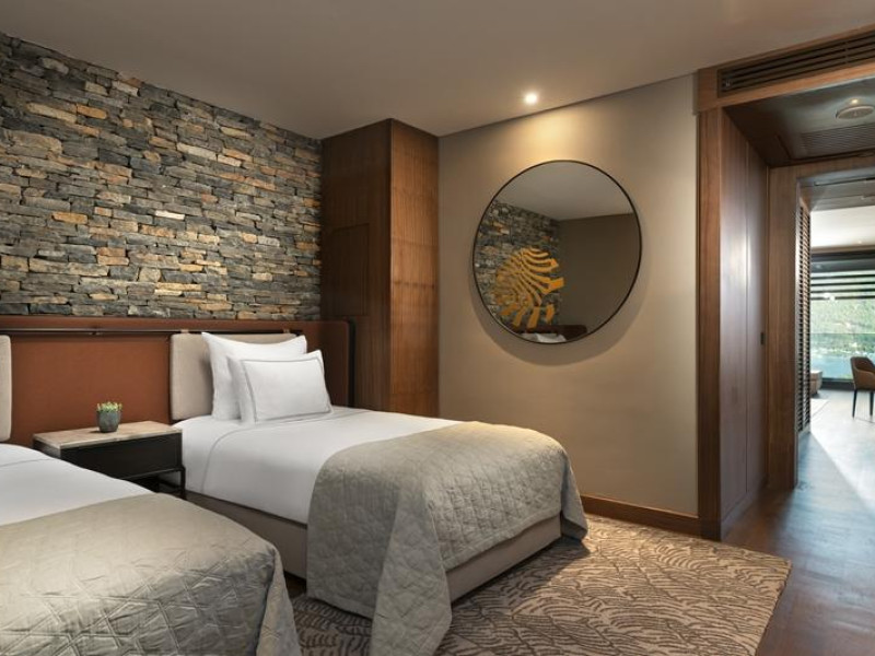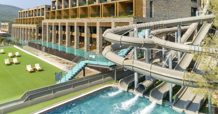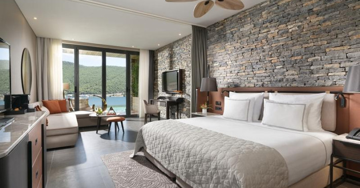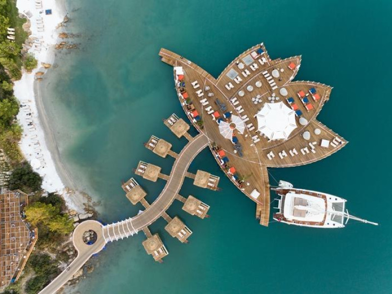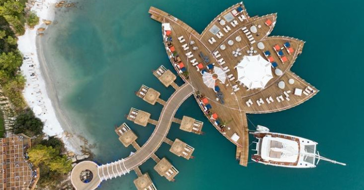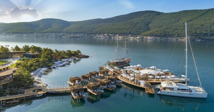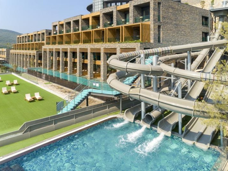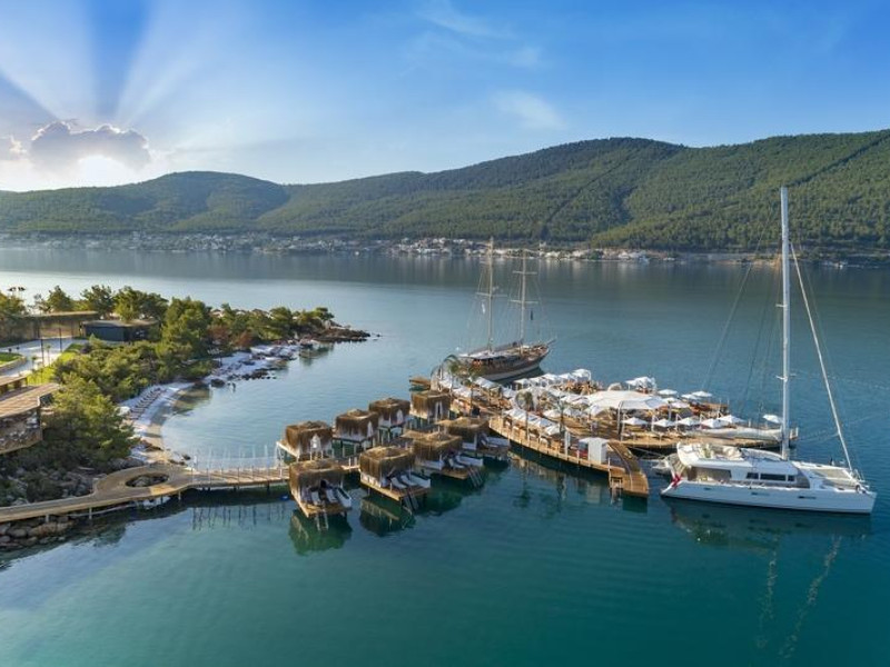 Opening in April 2018, the Lujo Hotel Bodrum is a luxury resort set alongside three private stretches of beach on Turkeyrsquo;s Mediterranean shore. In the grounds of the hotel, guests will find an array of luxurious facilities and services, as well as attractive gardens and pool areas. For families, couples and groups of friends in search of a bit of luxury, this hotel is perfect.Directly on the sandy beach. 4km from Guuml;vercinlik resort centre. 20km from Bodrum centre.