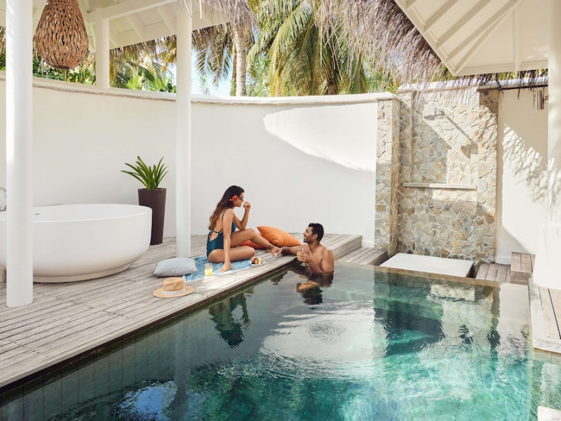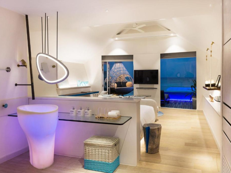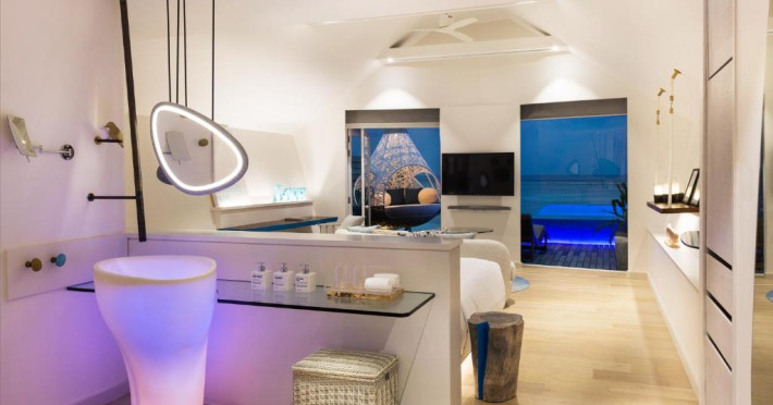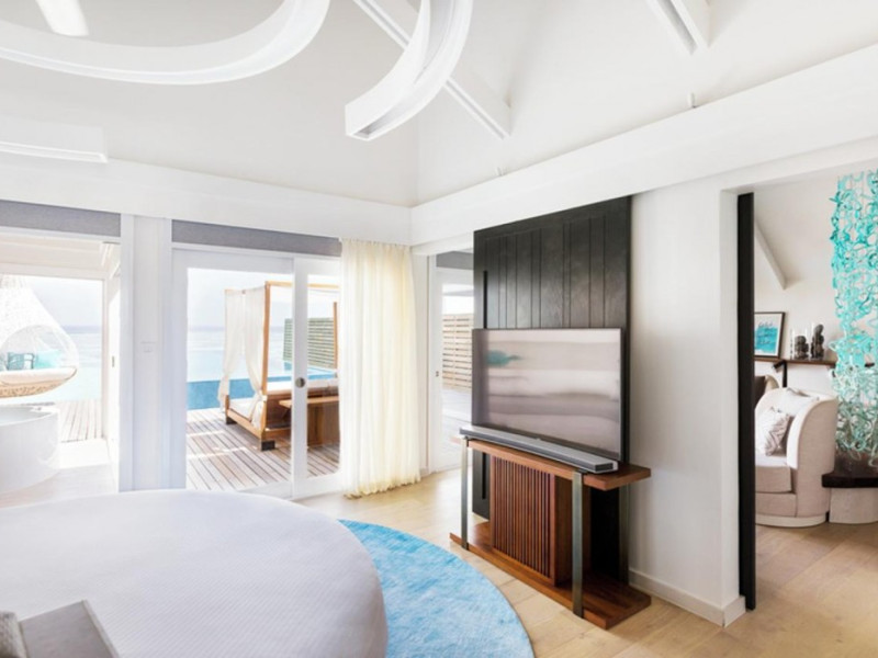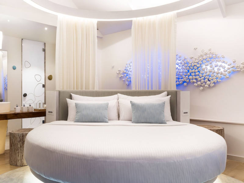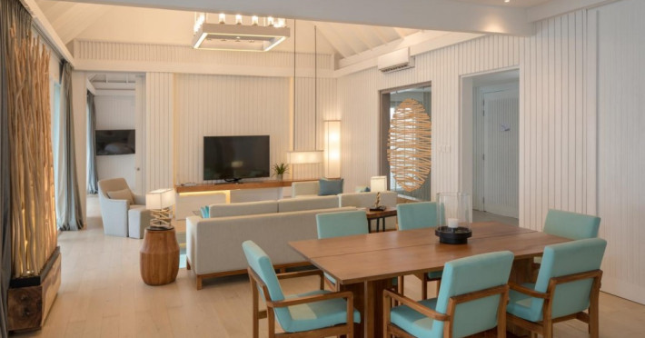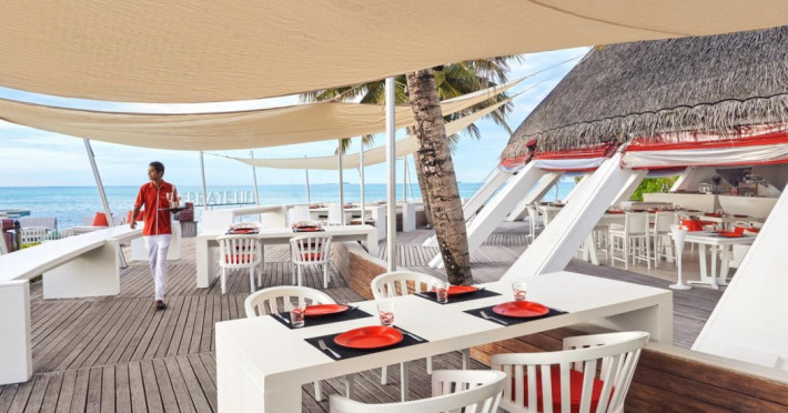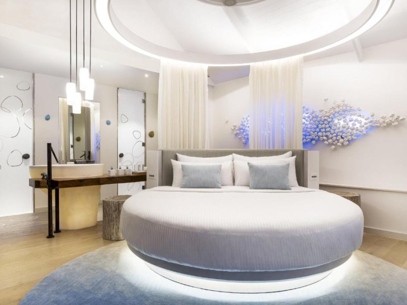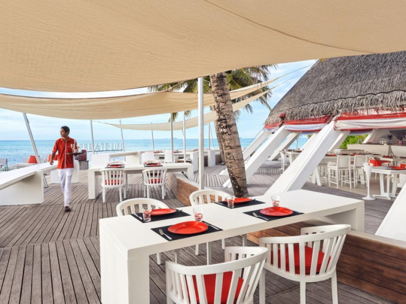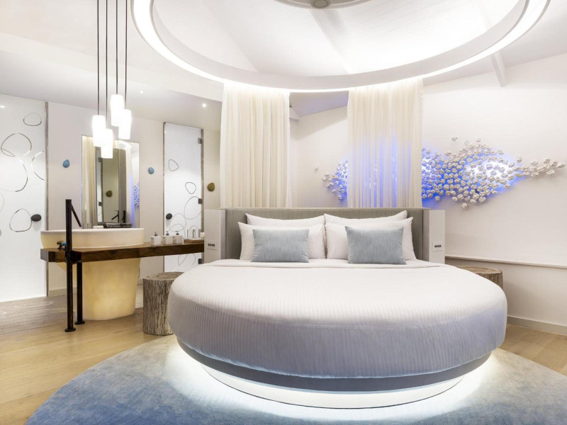 LUX* South Ari Atoll, a luxurious Maldives resort located on Dhidhoofinolhu Island, is a 25-30 minute seaplane ride from Malé International Airport. This beachfront resort offers 193 air-conditioned rooms with minibars, flat-screen TVs, and private bathrooms featuring complimentary toiletries and bidets. Each room includes a coffee machine and offers direct beach or lagoon access. The resort boasts eight restaurants serving international and Asian buffet spreads, as well as Italian, Mediterranean, Japanese, and Middle Eastern cuisine. There are five bars/lounges, a coffee shop/cafe, and 24-hour room service. Amenities include a spa offering massages and beauty treatments, a fitness center, a hot tub, a sauna, a games room, complimentary Wi-Fi (business center), a business center, concierge services, and babysitting (surcharge). All-inclusive rates are available. The resort also offers a wide range of motorized and non-motorized water sports activities. Nearby attractions include Ari Atoll and Dhigurah Beach. The LUX South Ari Atoll is a Beach Resort, Child Friendly, Design Trendy, Honeymoon, Leisure, Modern, Tourist hotel. The nightlife/restaurants are located in the hotel.