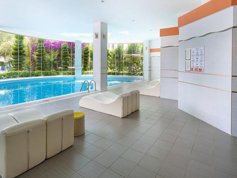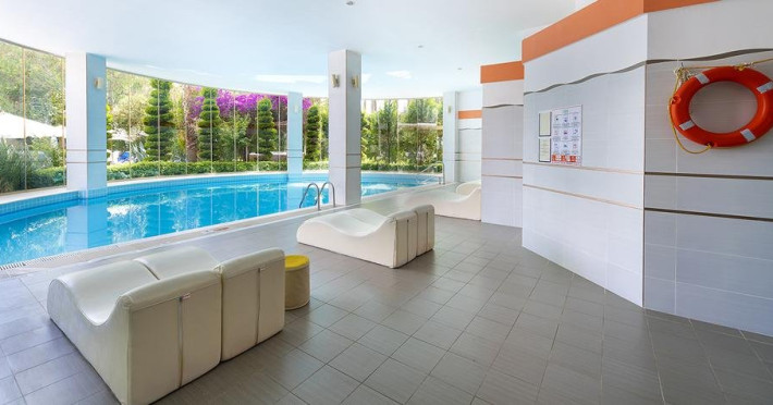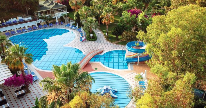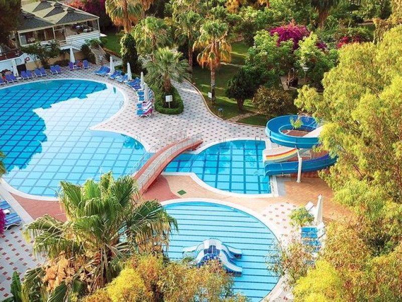 Facilitati hotel: Oaspetii pot beneficia de restaurant principal, restaurant A la Carte, baruri, piscina exterioara, tobogane, piscina interioara, jacuzzi, sezlonguri si umbrele, aerobic, centru spa, parcare, teren tenis, tenis de masa, volei, darts, boccia, internet, programe de animatie si divertisment, piscina pentru copii, tobogane, miniclub, loc de joaca.