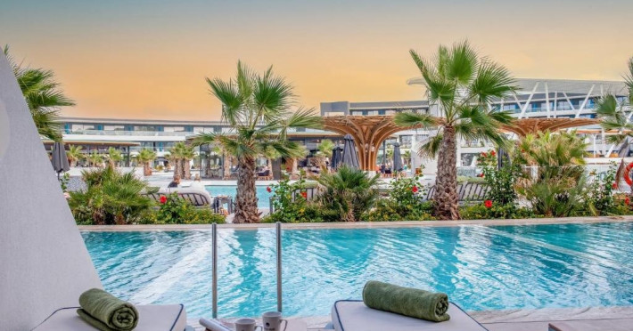 Descriere: Lyttos Beach Hotel este un resort de 5 stele situat in Analipsi, Heraklion, la aproximativ 20 km de Aeroportul International Heraklion. Resortul se afla chiar pe plaja premiata cu Blue Flag si se intinde pe o suprafata de 150 de hectare de gradini cu palmieri si flori. Hotelul ofera camere si suite spatioase, ideale pentru familii, toate dotate cu facilitati moderne si elegante. Oaspetii pot beneficia de noua piscine, multiple restaurante si baruri, waterpark gratuit, activitati sportive, spa si programe de divertisment pentru toate varstele. Conceptul Ultra All Inclusive garanteaza mese si bauturi variate, inclusiv optiuni pentru diete speciale si seri tematice. Localizare: Hotelul se afla in satul Analipsi, la doar cativa pasi de plaja si la aproximativ 20 km de Aeroportul International Heraklion. Locatia ofera acces facil catre orasul Hersonissos si imprejurimile sale turistice, fiind ideala pentru familii si oaspeti care doresc sa combine relaxarea la plaja cu activitatile de recreere. Dotari camera: Toate camerele si suitele sunt dotate cu aer conditionat central, Wi-Fi gratuit, TV cu ecran plat de 42, seif electronic, mini-frigider cu apa reimprospatata zilnic, set pentru cafea si ceai si aparat Nespresso cu capsule incluse. Baia include cada sau dus, halate, papuci, articole de toaleta, uscator de par si oglinda cosmetica. Camerele dispun de balcon sau terasa, iar unitatile superioare ofera piscina privata sau sharing pool. Camerele familiale au doua dormitoare separate si doua bai, fiind ideale pentru grupuri si familii. Facilitati hotel: Hotelul dispune de receptie deschisa 24 de ore, lobby, lounge cu terasa, TV corner, internet corner si Wi-Fi gratuit in zonele publice. Oaspetii se pot bucura de sapte piscine exterioare, inclusiv doua piscine olimpice doar pentru adulti, piscine pentru copii si waterpark gratuit. Sunt disponibile prosoape, sezlonguri si umbrele la piscina si pe plaja, parcare gratuita, gradina, amfiteatru, magazine, mini-market, bijuterie, ATM si servicii de spalatorie. Restaurantul principal ofera buffet cu SHO W cooking, iar alte restaurante tematice si a la carte ofera preparate internationale si mediteraneene. Barurile includ lobby bar, pool bar si beach bar. Hotelul ofera activitati sportive precum tenis, fotbal, volei pe plaja, baschet si pickleball, precum si cluburi pentru copii si adolescenti. Zona wellness include sala de fitness, sauna, hammam, piscina interioara si spa cu tratamente specializate. Site web: https://www.lyttosmare.gr/ Nota informativa: Pentru anumite facilitati din hotel sau din camera, hotelierul poate solicita taxe suplimentare. In momentul sosirii la hotel solicitati receptionerului sa va informeze cu exactitate asupra lor. Taxa turistica obligatorie - se plateste la receptie