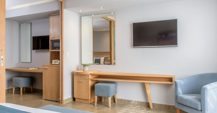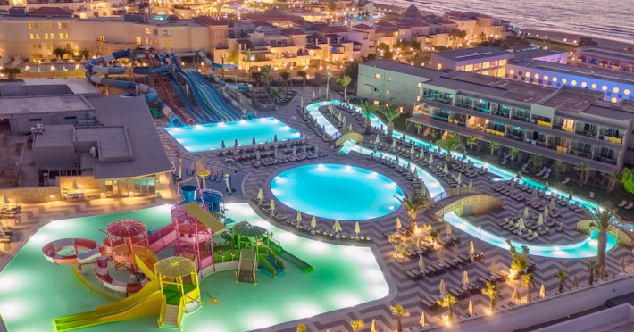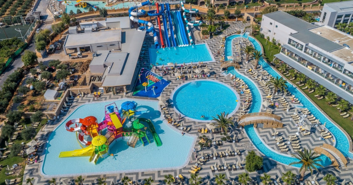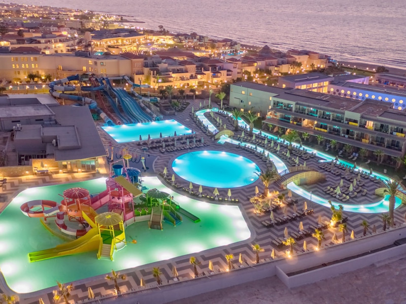 The resort features 349 air-conditioned rooms with refrigerators, LED televisions, direct-dial telephone, safety deposit box, mini fridge, microwave oven, coffee & tea facilities, balcony/terrace, maid service (daily), towel change, and Wi-Fi. Bathrooms include showers with rainfall showerheads and hair dryers. Amenities include a spa offering massages and treatments (extra charge), a water park (closed Nov 2-28) (extra charge), outdoor tennis courts, a complimentary gym and sauna (extra charge), a children's club (closed Nov 2-28), an arcade, a hair salon (extra charge), multiple bars and restaurants (including an Asian restaurant), a main restaurant with buffet and a la carte options, and a poolside bar. Some rooms have private pools. Additional amenities include parking, a 24-hour front desk, laundry services (extra charge), currency exchange (extra charge), babysitting service (extra charge), and conference rooms (extra charge). Seasonal closures (Nov 2-28) affect the swimming pool, water park, and children's club. The resort also offers daytime activities, evening entertainment, and bicycle rentals (extra charge). Nearby attractions include the Port of Hersonissos, Star Beach Water Park, Crete Golf Club, and several beaches. Ultra All-Inclusive rates include meals and beverages at most on-site dining establishments; some restaurants, special dinners, certain beverages, and other amenities may incur extra charges.The Ultra All-Inclusive concept includes all meals (breakfast, lunch, dinner, and snacks) and mealtime drinks such as soft drinks, beer, wine, water, and alcoholic drinks, all of local & international brands. Drinks are served from morning until late evening (approx until 22.00-24.00 hrs). Opening times vary between different hotels. In certain hotels, the activities program is also included.Note:From the first days of November till the closing date, Lyttos Beach Hotel will be operating with specific departments and services. The animation and some departments such as the waterpark, the thematic restaurants and the bars close to the beach will not operate due to seasonality and the weather conditions 1 of the Olympic-sized pools & the water polo pool may be used free of charge & by adults only between June-August if not used by swim groups (swim groups are always on request with extra charge).