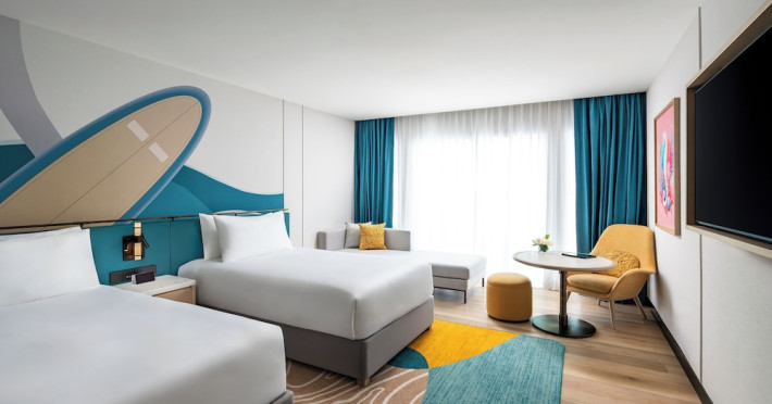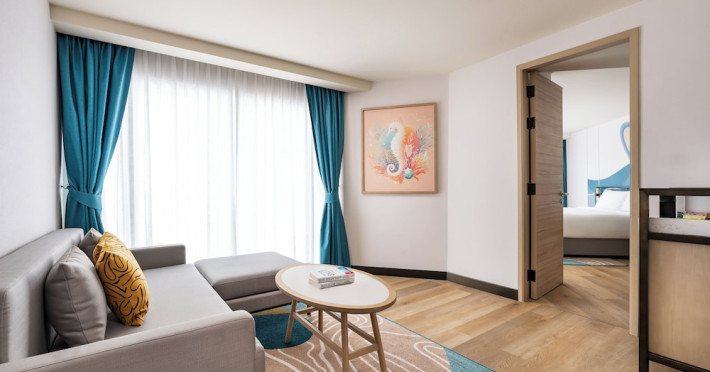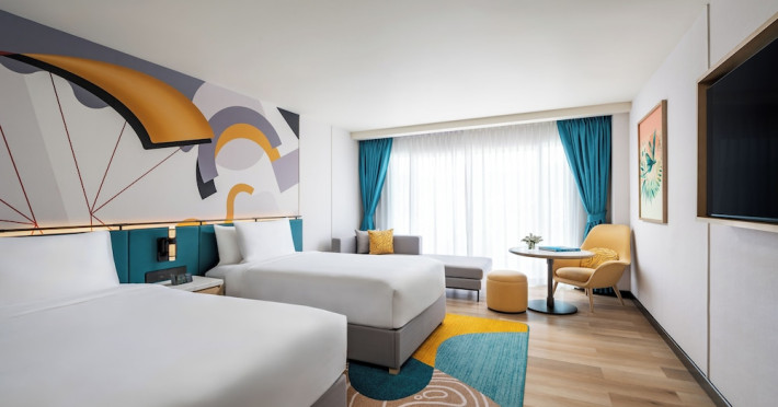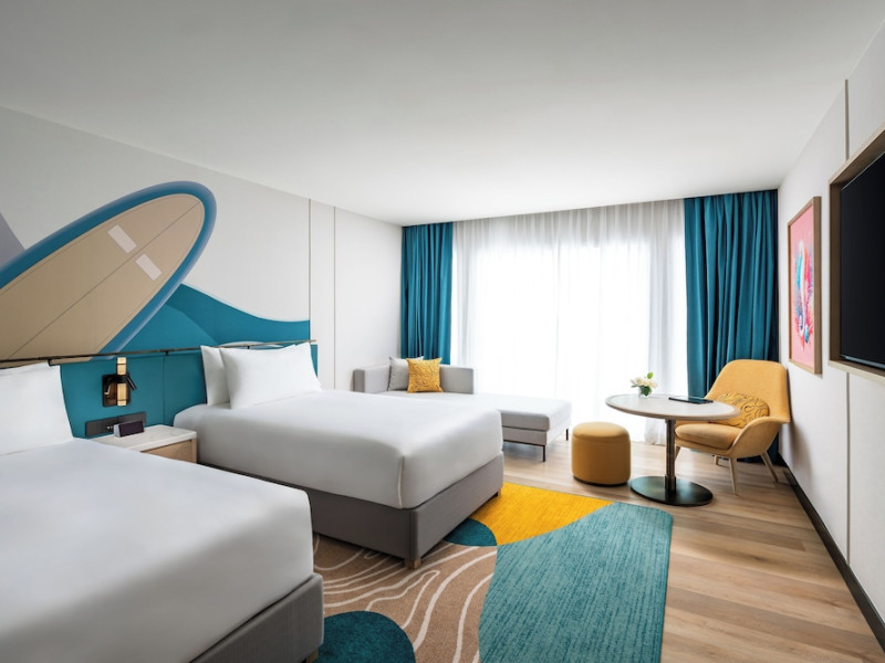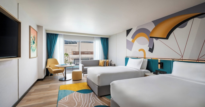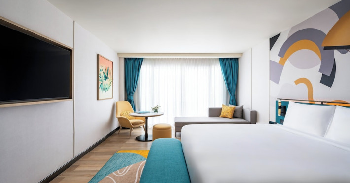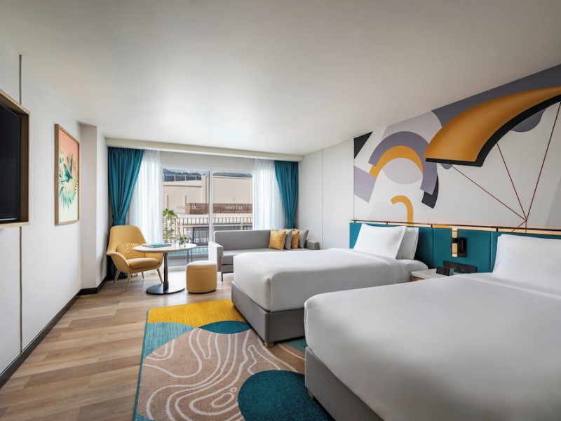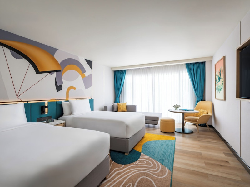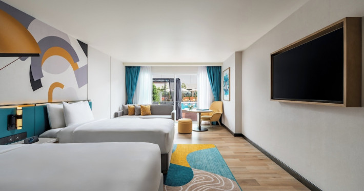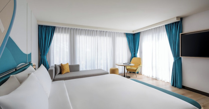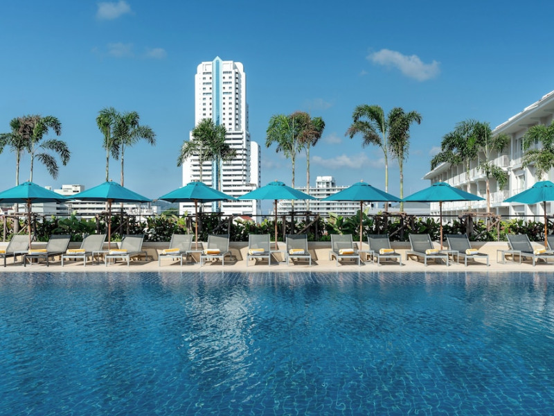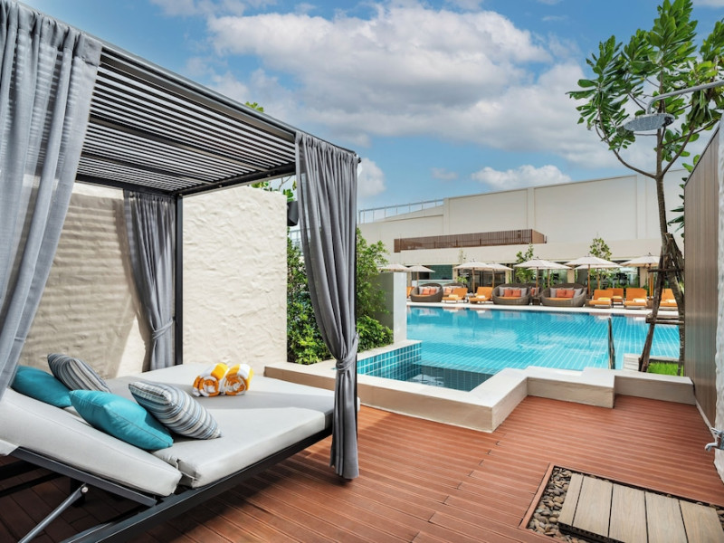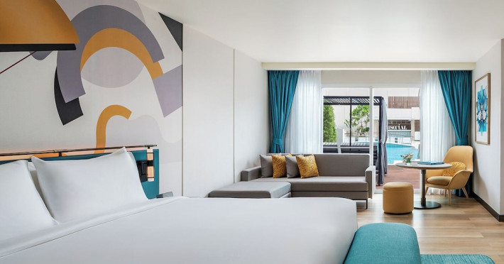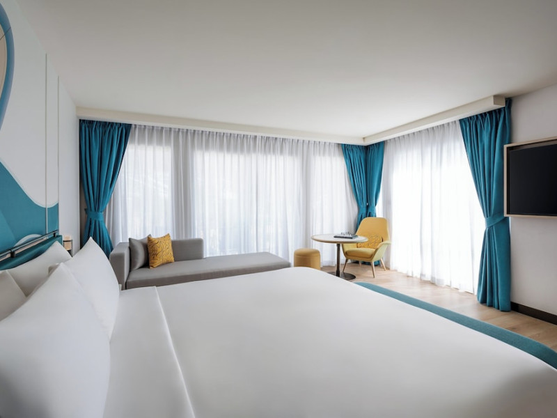 Located in the heart of Patong, M Social Phuket offers convenient access to Jungceylon Shopping Center and Bangla Road. The hotel features 418 air-conditioned guestrooms with complimentary wired and wireless internet access, satellite programming, safes, and desks. Private bathrooms offer showers, complimentary toiletries, and bidets. Guests can enjoy two outdoor swimming pools, a rejuvenating day spa, and a fitness center. Dining options include two restaurants, a coffee shop/cafe, and multiple bars, including beach and poolside options. A buffet breakfast is available daily for a fee. Amenities include complimentary wired internet access, concierge services, on-site shopping, and a terrace and garden. Services include a roundtrip airport shuttle for a surcharge and free self-parking. The M Social Hotel Phuket is a Full Service, Honeymoon, Leisure, Modern, Tourist hotel. The nightlife/restaurants are within walking distance from the hotel.