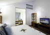 All accommodation units feature air conditioning, a fan, a living room and a bathroom. Most rooms additionally feature a terrace. Many of the rooms also offer a sea view, adding to the ambience. Cots are available for children. A safe and a minibar also feature. Features include a mini-fridge and tea and coffee making equipment. Each accommodation unit offers internet access, a telephone, a TV, a radio, a DVD player and wireless internet access. Each of the bathrooms features a shower, a bathtub, a spa bath, a hairdryer and bathrobes.