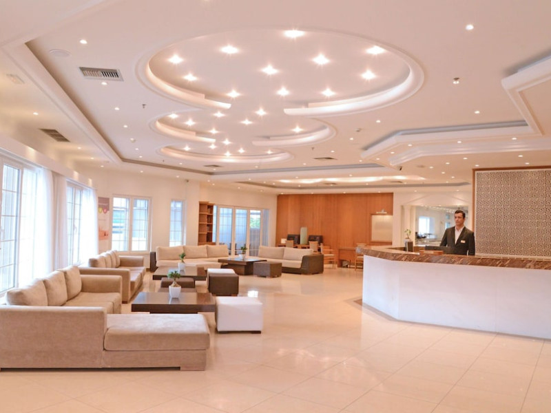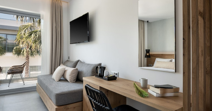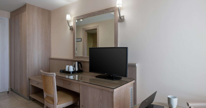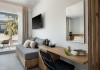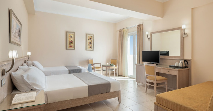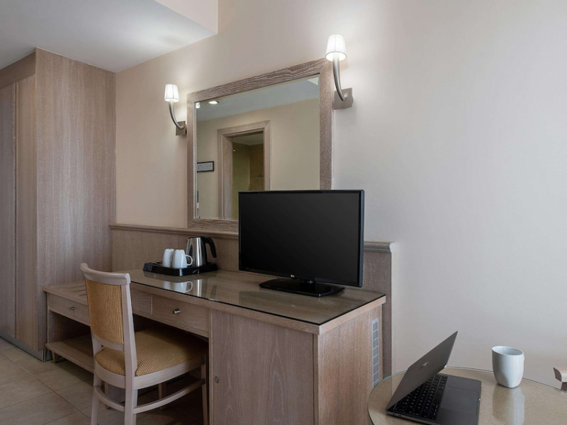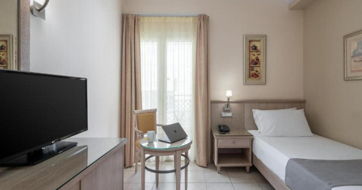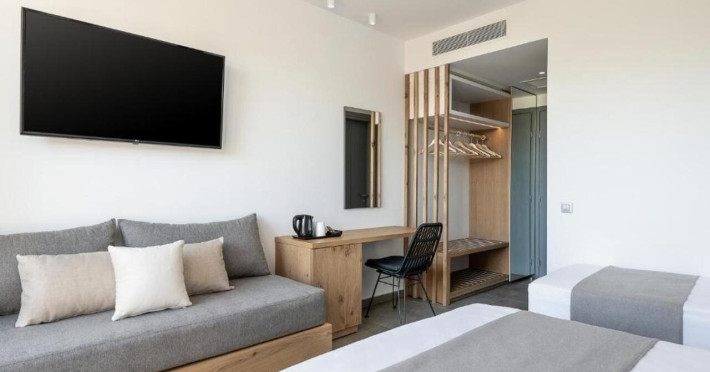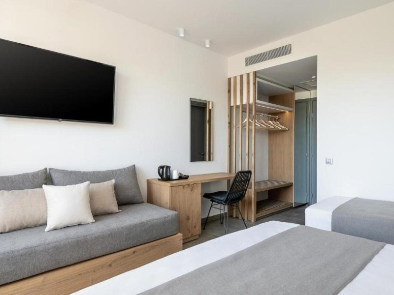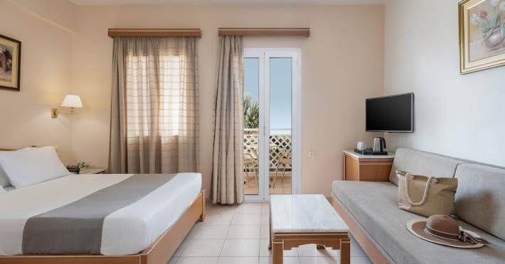 Hotel services and facilities include 24-hour reception, luggage room, meeting room, restaurants, bars, souvenir shops and supermarket, TV corner, swimming pool, children's pool and playground, babysitting (extra charge), indoor pool, terrace, garden, Spa facilities with Jacuzzi and sauna (extra charge), Gym, car parking, Wi-Fi, concierge services, business center, breakfast room, medical service (extra charge), currency exchange (extra charge), room service (extra charge).Rooms feature air conditioning, Wi-Fi, safe (extra charge), satellite TV, balcony / terrace, coffee / tea maker, hairdryer, telephone, laundry and dry cleaning service (extra charge), mini bar / fridge, baby cot on request. **Air conditioning is working from June to September.**Please note that some facilities may be closed due to weather / seasonal conditions.**The All Inclusive-concept includes all meals (breakfast, lunch, dinner and snacks) and mealtime drinks such as soft drinks, beer, wine, water and alcoholic drinks, all of local brands. Drinks are served from morning until late evening (approx until 22.-24.00 hrs). Opening times vary between different hotels. In certain hotels the activities program is also included.**Address: Gouves, 70014 Heraklion-Gouves, Crete, Greece