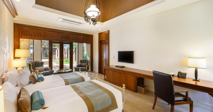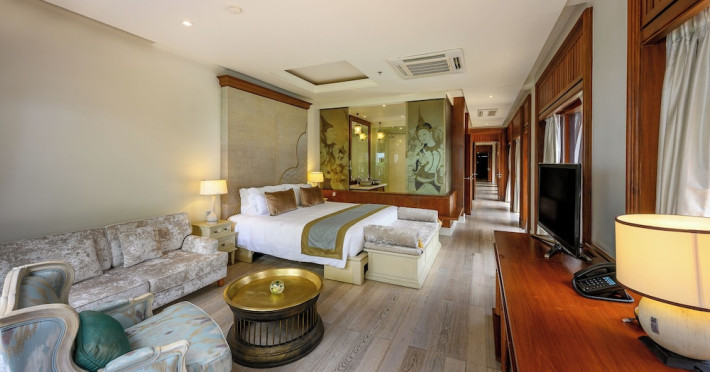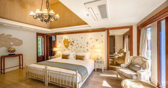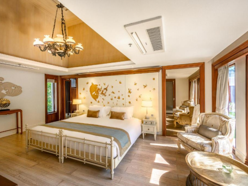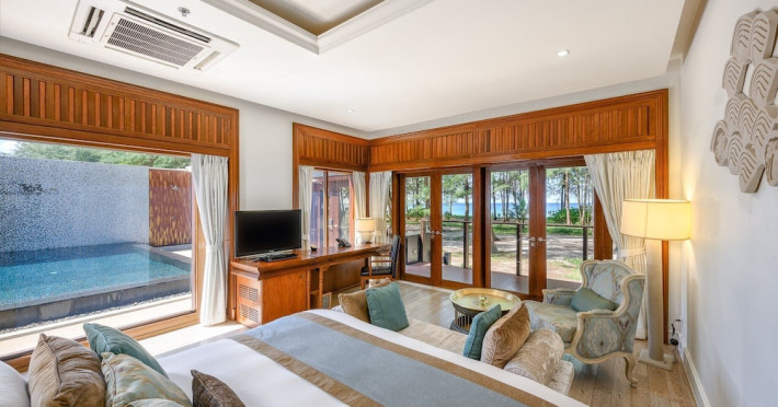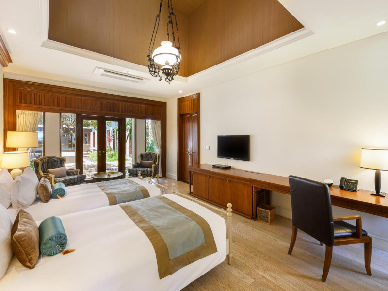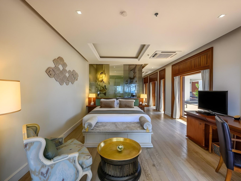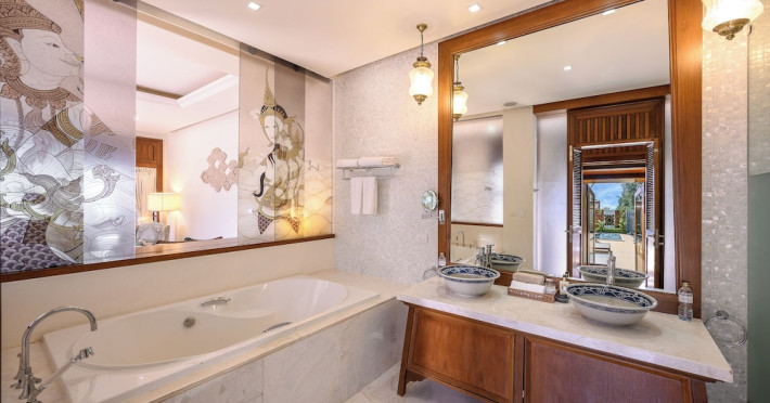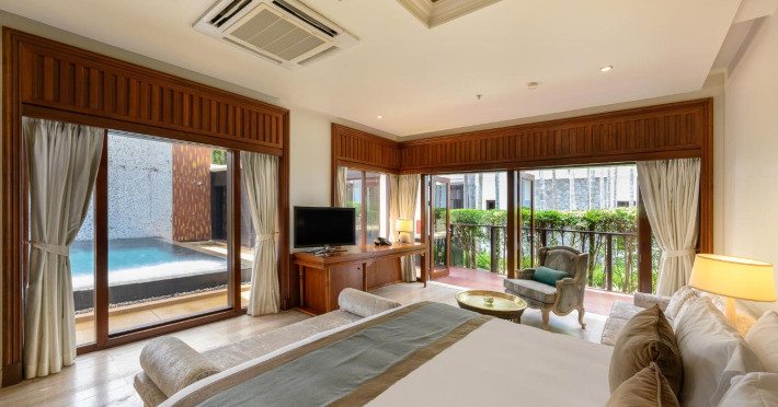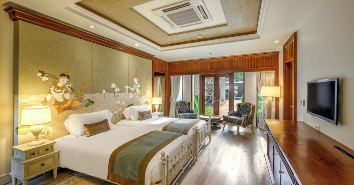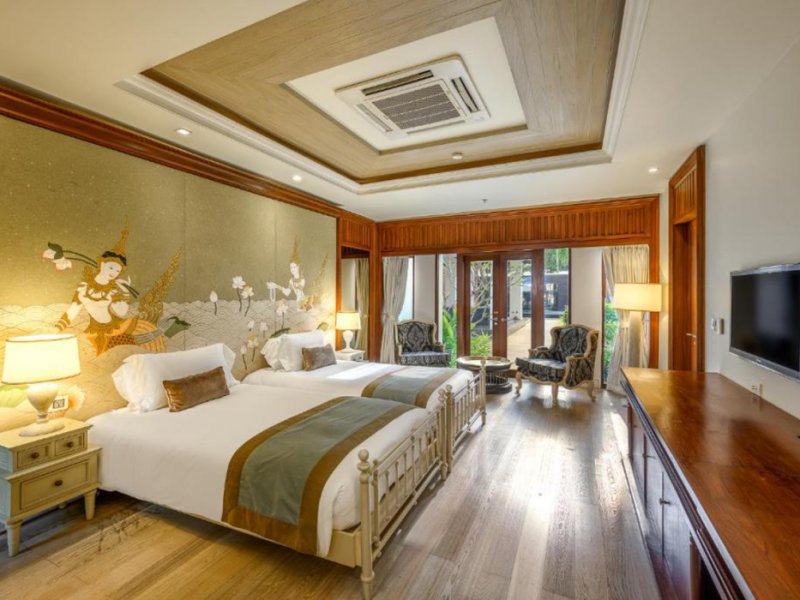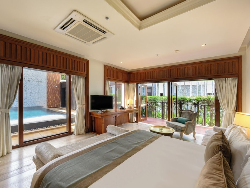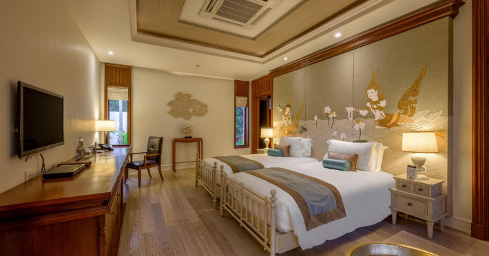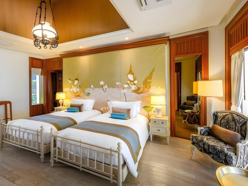 Located on Maikhao Beach in Phuket, Maikhao Dream Villa Resort & Spa offers luxurious villas with private pools and jet pools. The resort is a 15-minute drive from Phuket International Airport. The Thai Royal-style villas feature wood furnishings, Thai prints and fabrics, an outdoor pavilion, a well-equipped kitchenette, and a home entertainment system. Complimentary Wi-Fi is available. Dining options include Dokbua Restaurant, a wine cellar, and a beach club, with options for private chefs and in-villa barbecues. The resort features a spa with treatments, a sauna, and steam rooms, as well as an outdoor pool, hot tub, and fitness center. Amenities include a business center, concierge services, and airport shuttle (surcharge). Parking is complimentary. The Maikhao Dream Villa Resort & Spa is a Beach Resort, Family Style, Honeymoon, Leisure, Resort, Spa Resort, Tourist, Villa Resort hotel. The nightlife/restaurants are located in the hotel.