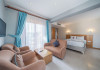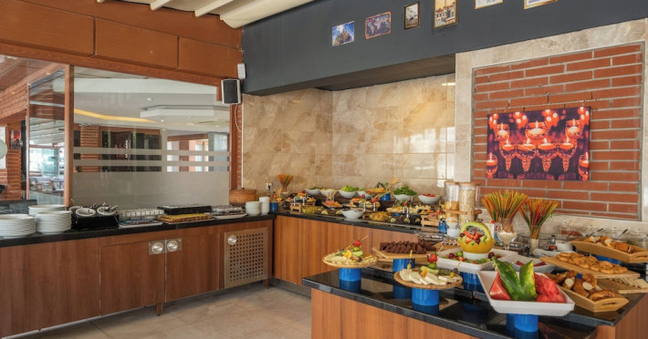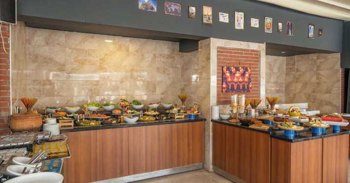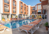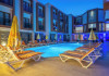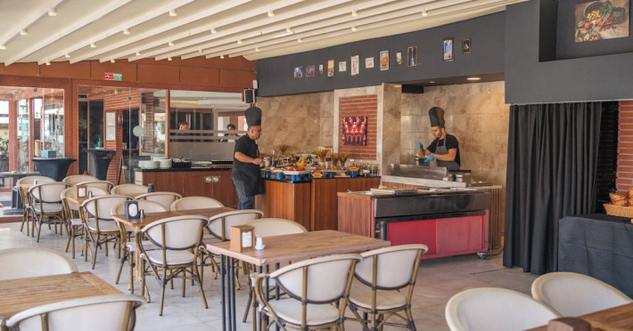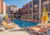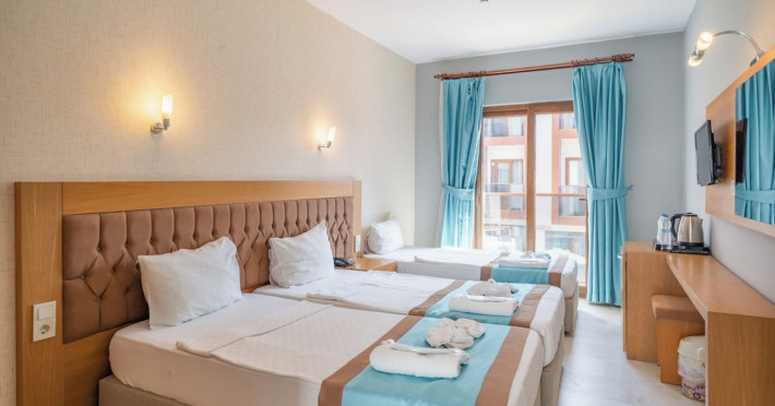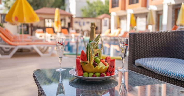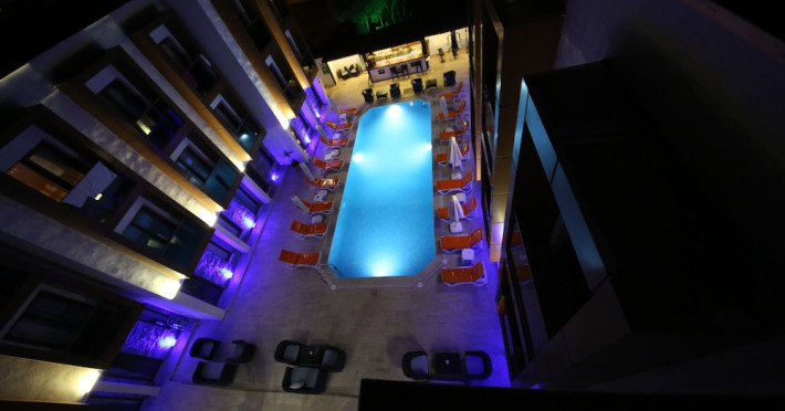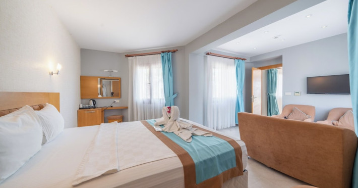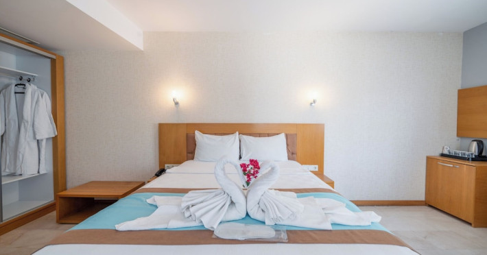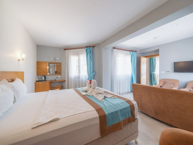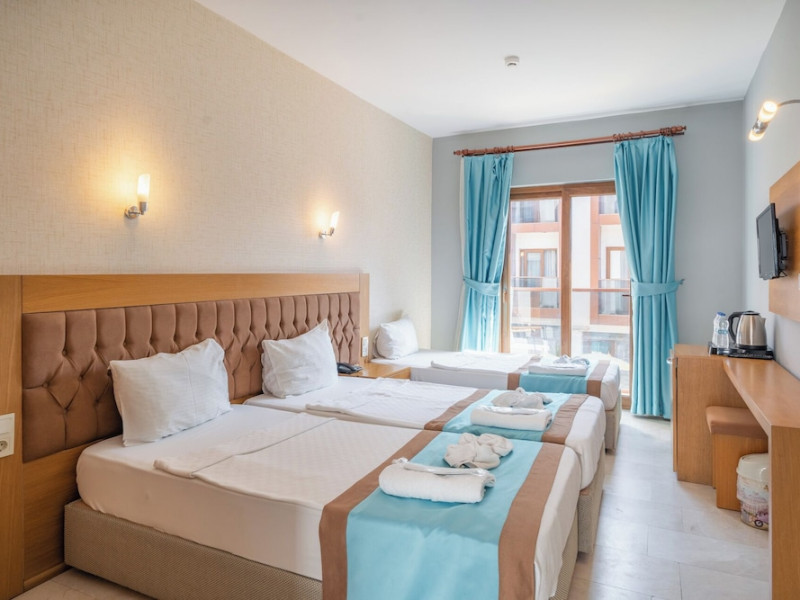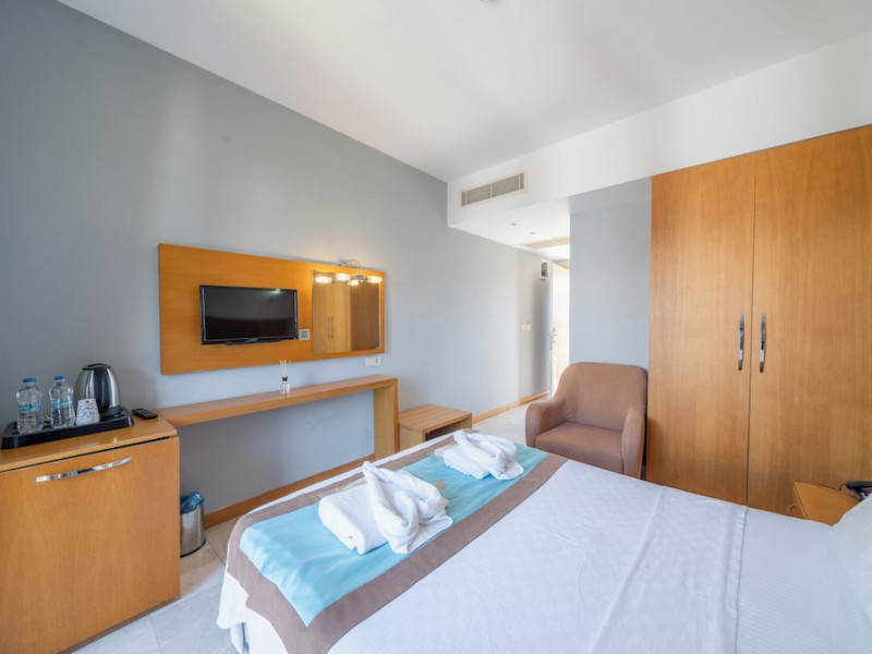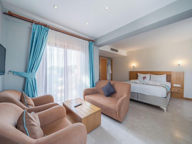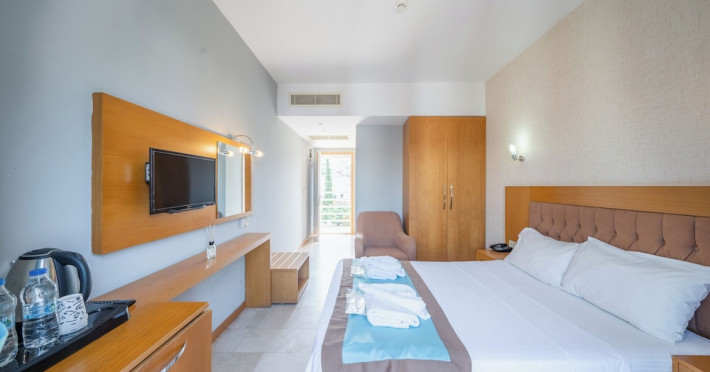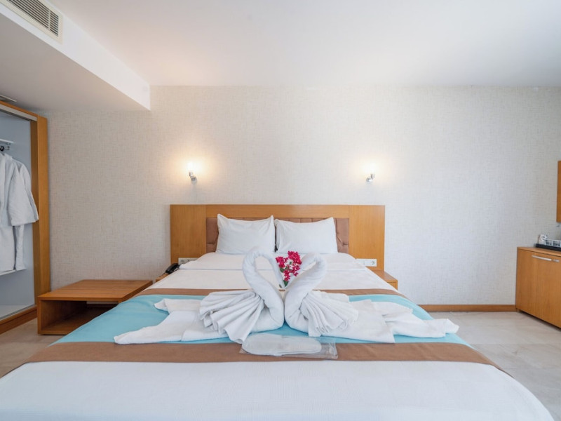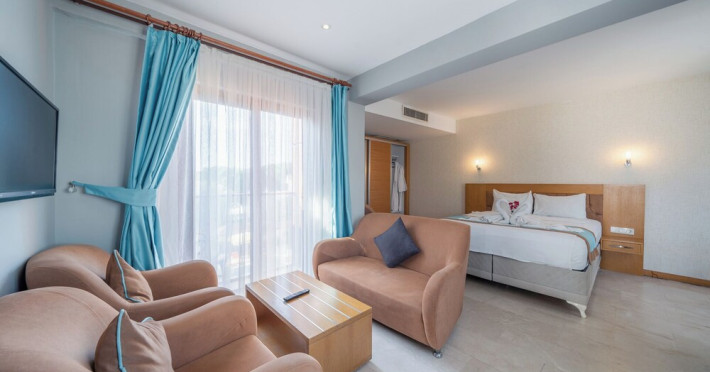 This modernly designed hotel enjoys a great location close to the centre of Gumbet, popular for it's nightlife, and approximately 3 km from the cosmopolitan resort of Bodrum. Tastefully furnished and styled, guests can benefit from an on-site outdoor pool and sun-bathing terrace and enjoy a meal in the hotel's street-side restaurant. The rooms are modernly equipped and decorated with muted tones and bright turquoise to give a 'summery' touch. Close to a host of amenities such as shops, cafe-bars, resataurants and nightclubs, the beach is also just a couple of minutes' walk and there is a bus stop within a few metres of the hotel entrance, enabling easy access to Bodrum and nearby Bitez.