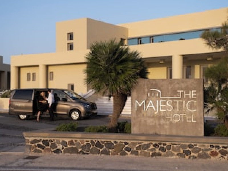 Property Location When you stay at The Majestic Hotel in Santorini, you'll be in a shopping district, a 3-minute drive from Santorini Caldera and 9 minutes from Athinios Port. This family-friendly hotel is 4.6 mi (7.3 km) from Kamari Beach and 6.1 mi (9.8 km) from Perivolos Beach.