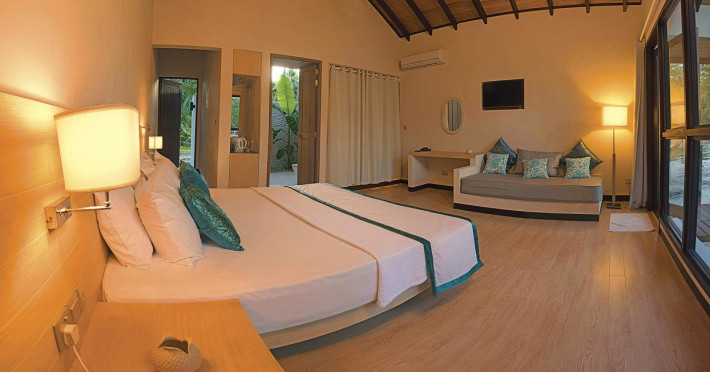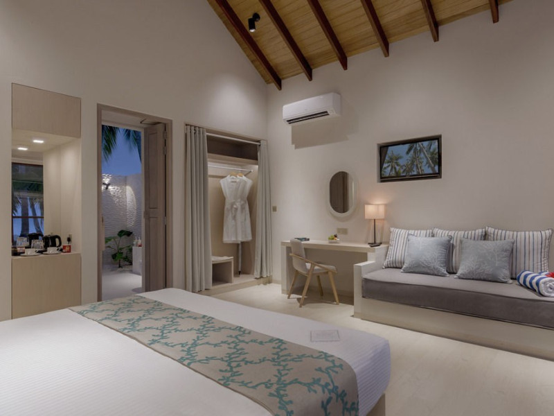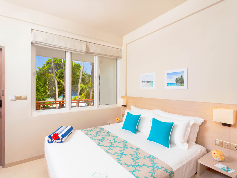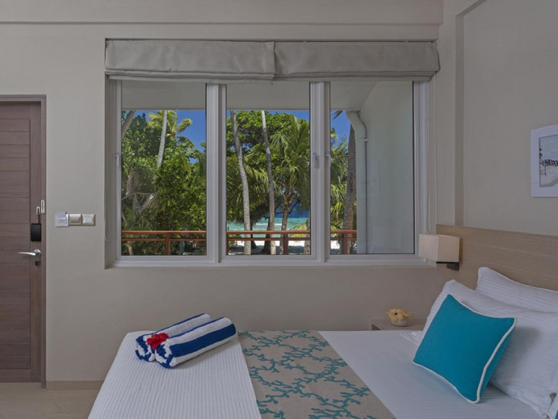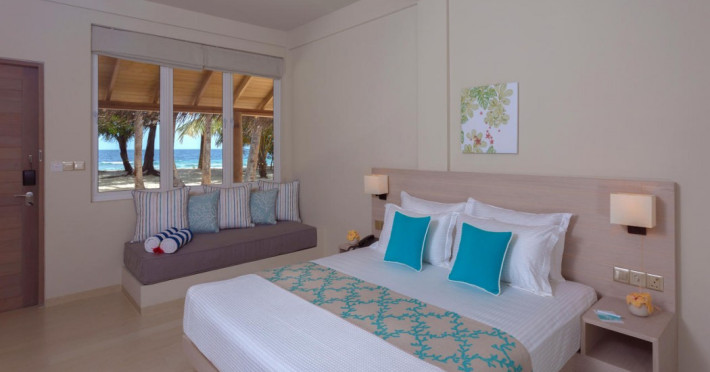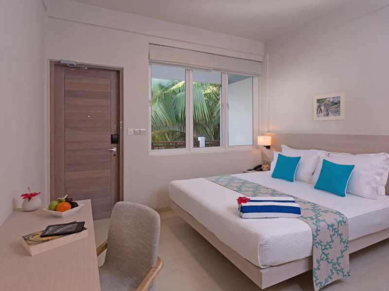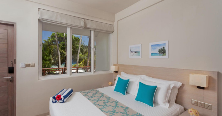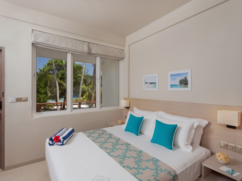Malahini Kuda Bandos Resort offers 83 guestrooms with minibars, LED televisions, and complimentary wireless internet access and cable programming. Private bathrooms include bathtubs or showers, complimentary toiletries, and bidets. Additional amenities include a 24-hour front desk, complimentary newspapers, dry cleaning/laundry services, concierge services, gift shops/newsstands, and a fitness center. The resort boasts two restaurants (including room service), two bars/lounges, and an all-inclusive option (with some exclusions for specific restaurants, dinners, dishes, and beverages). Malahini Spa features three treatment rooms and a hot tub. A private beach is available. A roundtrip airport shuttle is available for a surcharge. The resort is located near several beaches: Kuda Bandos Beach (0.1 km), Full Moon Beach (0.7 km), Thulhagiri Beach (0.7 km), Paradise Island Beach (1.5 km), Kurumba Beach (2.9 km). The Malahini Kuda Bandos Resort is a hotel.