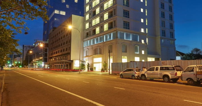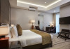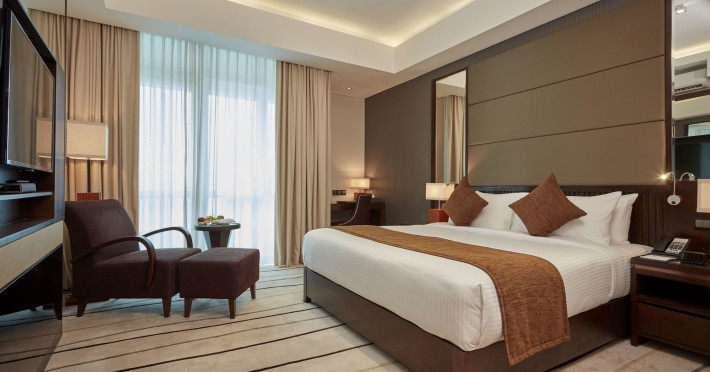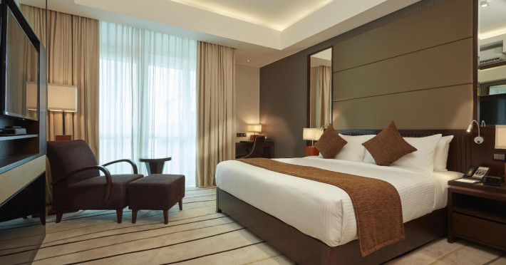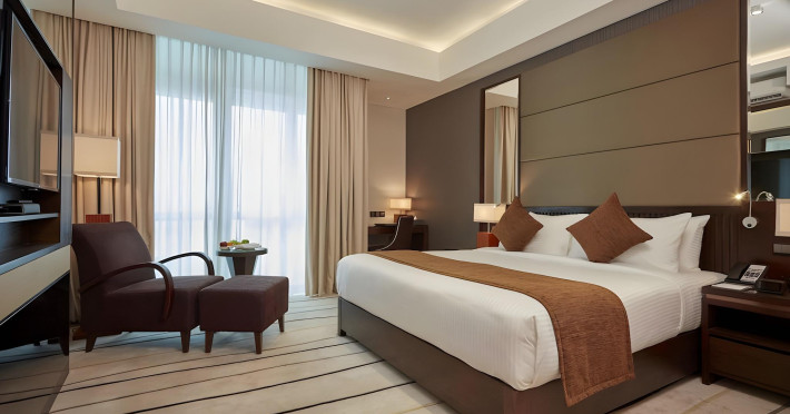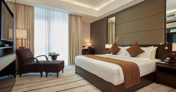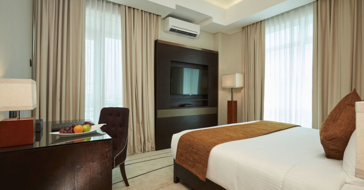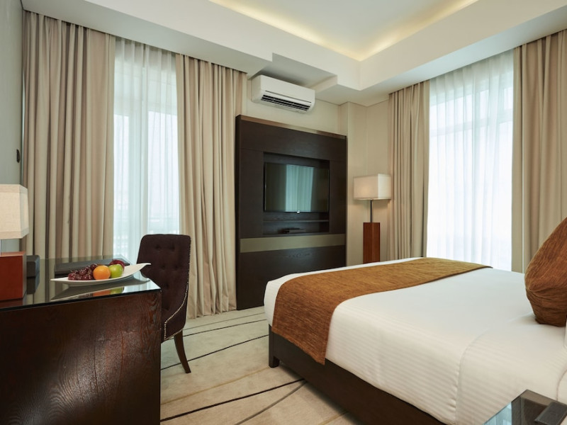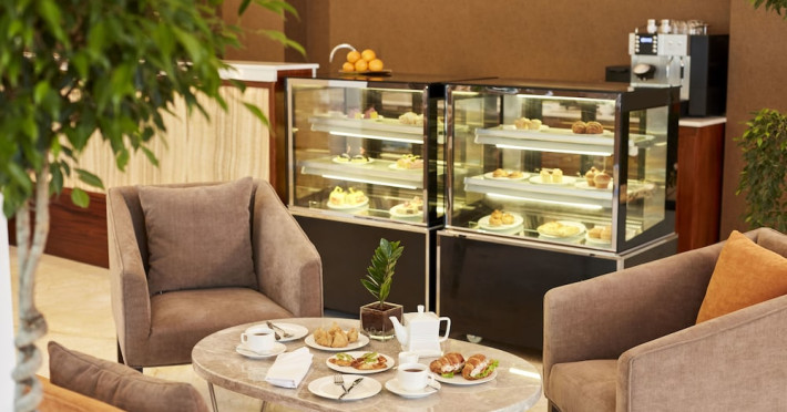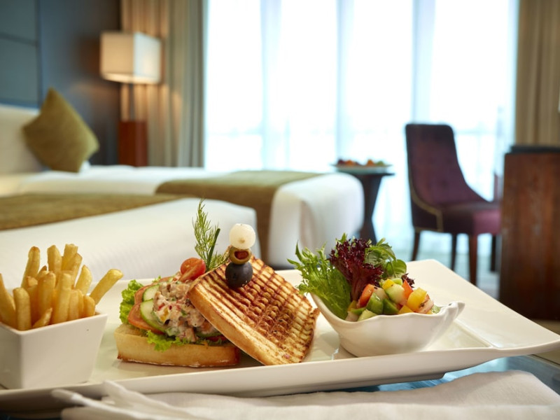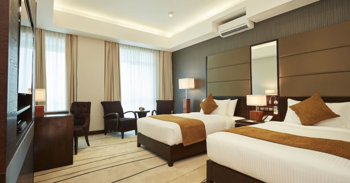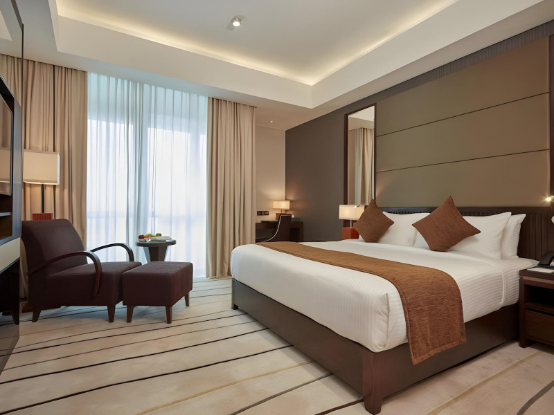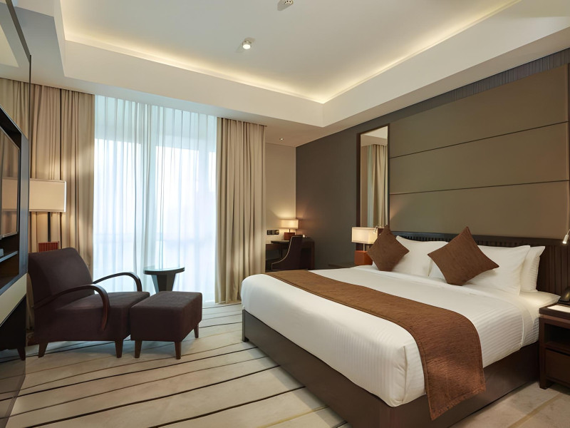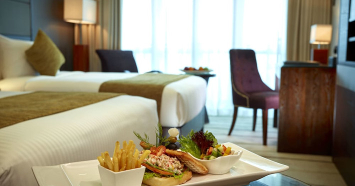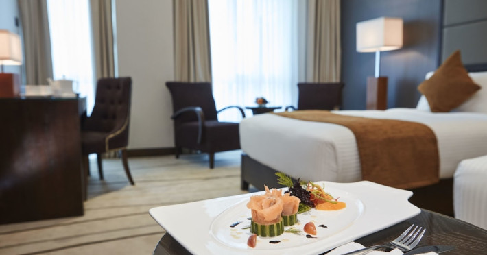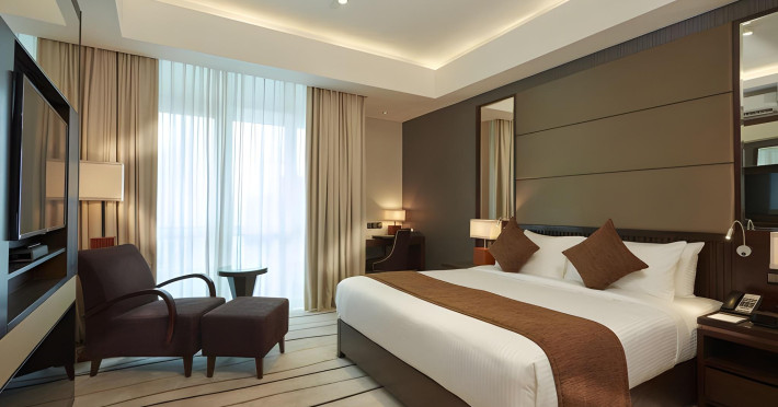 The hotel operates a 24-hour front desk offering car rental, currency exchange, and laundry services. Dining options include an in-house restaurant (On The Eleventh) serving international dishes and a coffee shop (Café M) serving snacks, tea, and coffee.