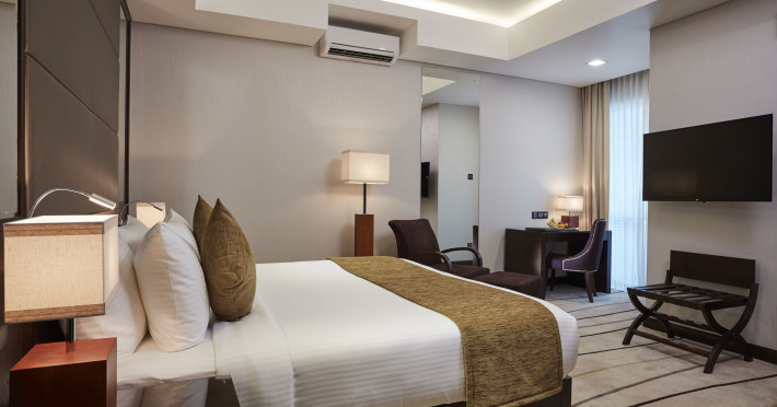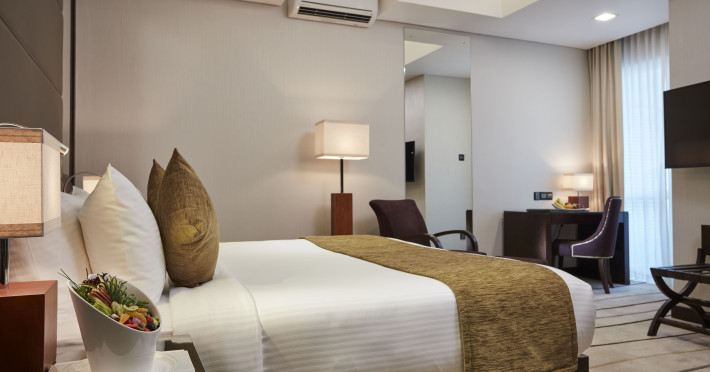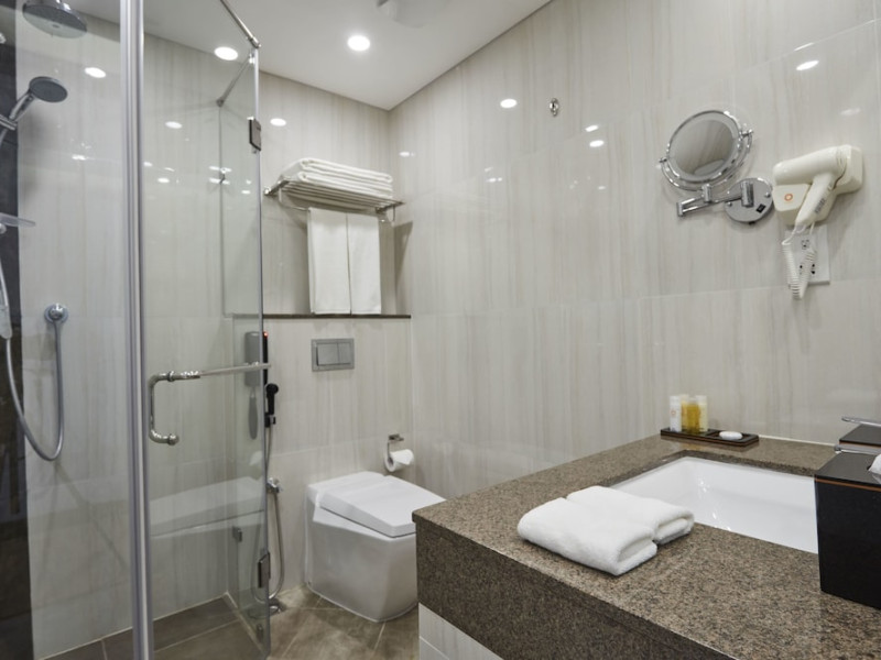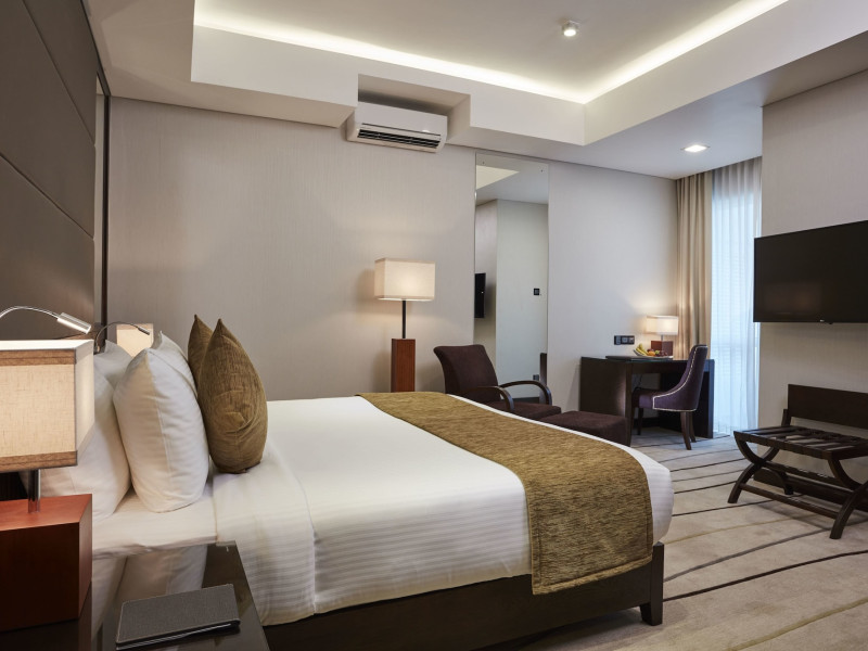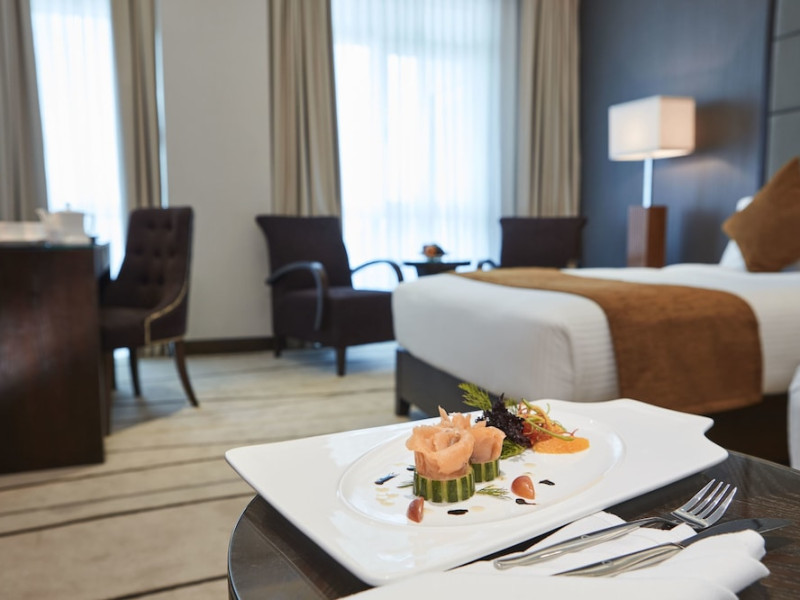 The air-conditioned rooms have carpet flooring and include a wardrobe, in-room safe, a flat-screen satellite/cable TV, a sofa seating area, an electric kettle, and a minibar. The en suite bathroom comes with towels, a hairdryer, bathrobes, slippers, a shower, and free toiletries. Some rooms have a balcony.