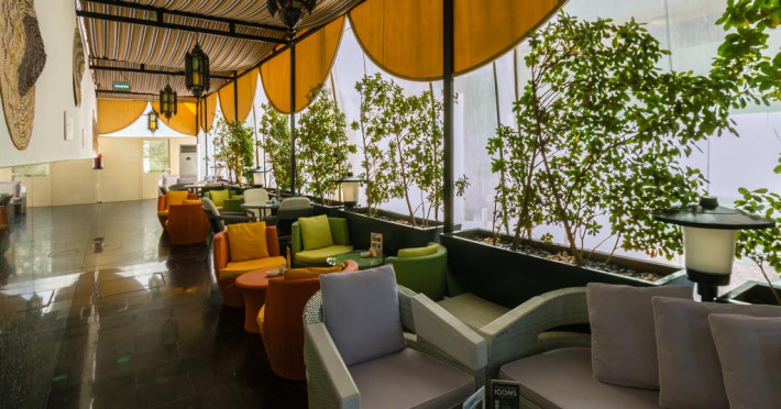 Oaspeţii se pot bucura de restaurantul deschis pe tot parcursul zilei. Al doilea restaurant oferă specialităţi chinezeşti. Cafeneaua hotelului asigură narghilele.