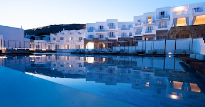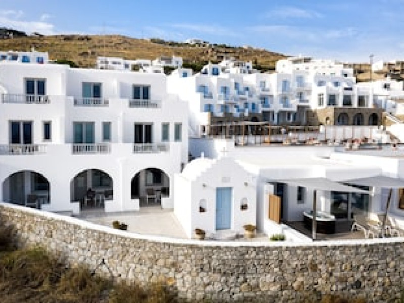 Property Location When you stay at Manoulas Beach Mykonos Resort in Mykonos, you'll be by the sea, within a 10-minute drive of Mykonos New Port and Windmills of Mykonos. This beach hotel is 4.8 mi (7.7 km) from Paradise Beach and 3.2 mi (5.2 km) from Mykonos Old Port.