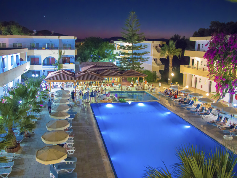 Located in Kolymbia, Rhodes, Marathon Hotel is a bungalow-style complex situated a short walk from the beach. It offers air-conditioned rooms with a furnished balcony. Each room includes a satellite TV, fridge, and a private bathroom with a bathtub. Guests can enjoy a swimming pool, poolside bar, and a sun terrace with sun loungers. The hotel also features a games room with billiards, a children's playground, and a shallow pool. Dining options include a restaurant and a main bar. Free WiFi is available throughout the property. The hotel provides a 24-hour front desk, and free private parking is available. Shops and traditional taverns are located near the hotel. The Marathon Hotel is a hotel.