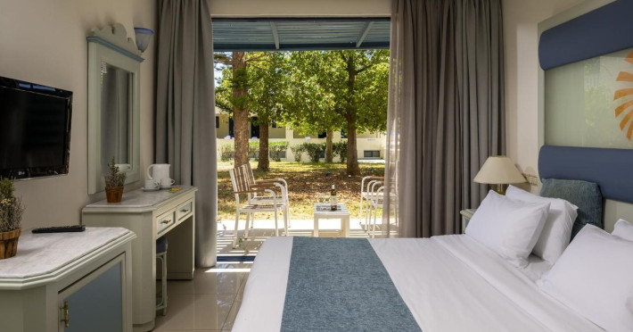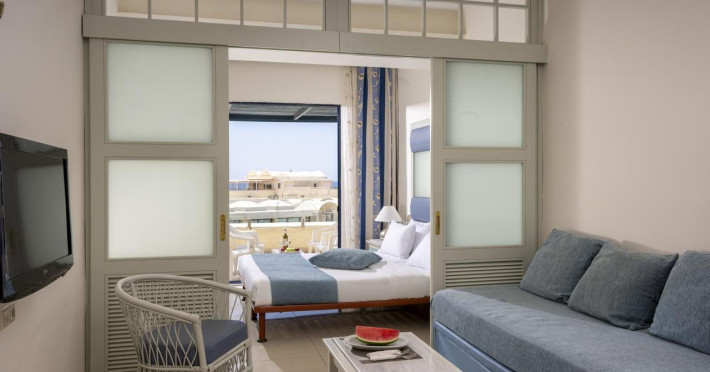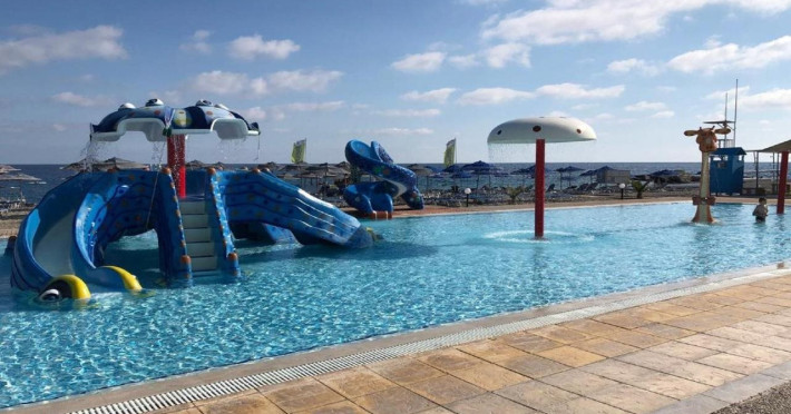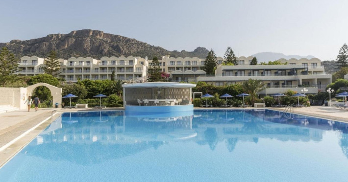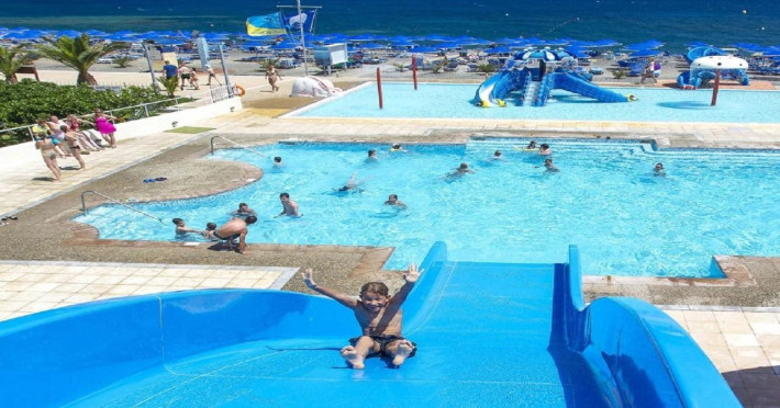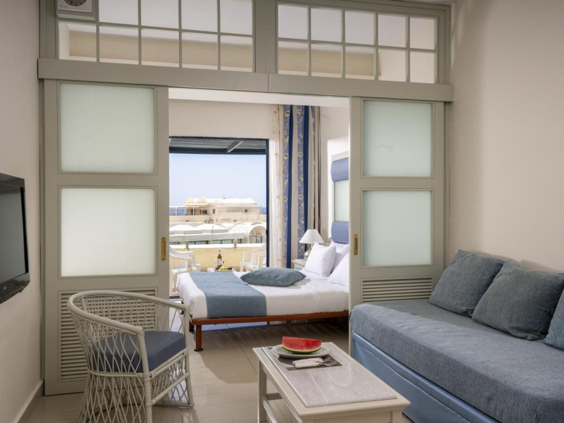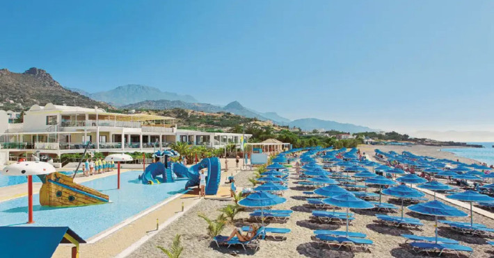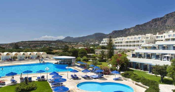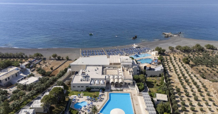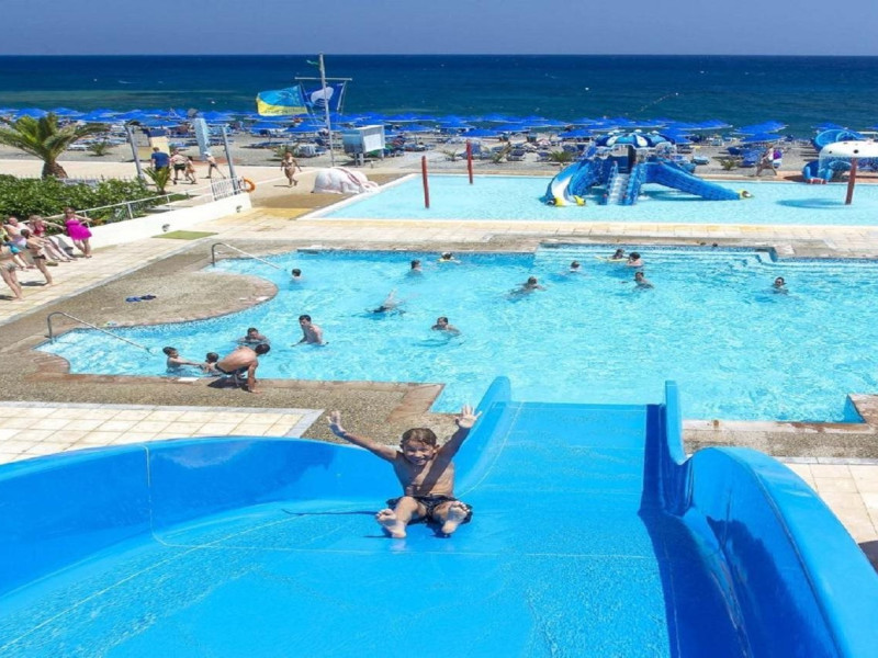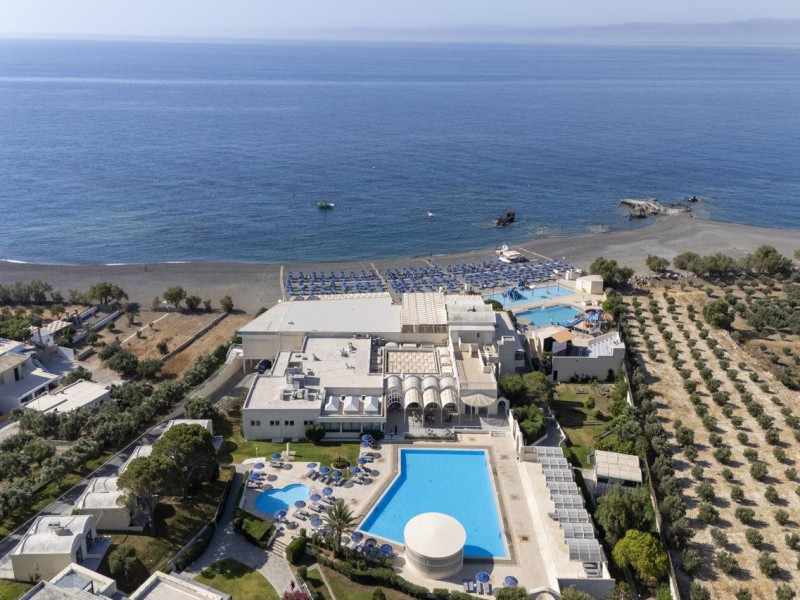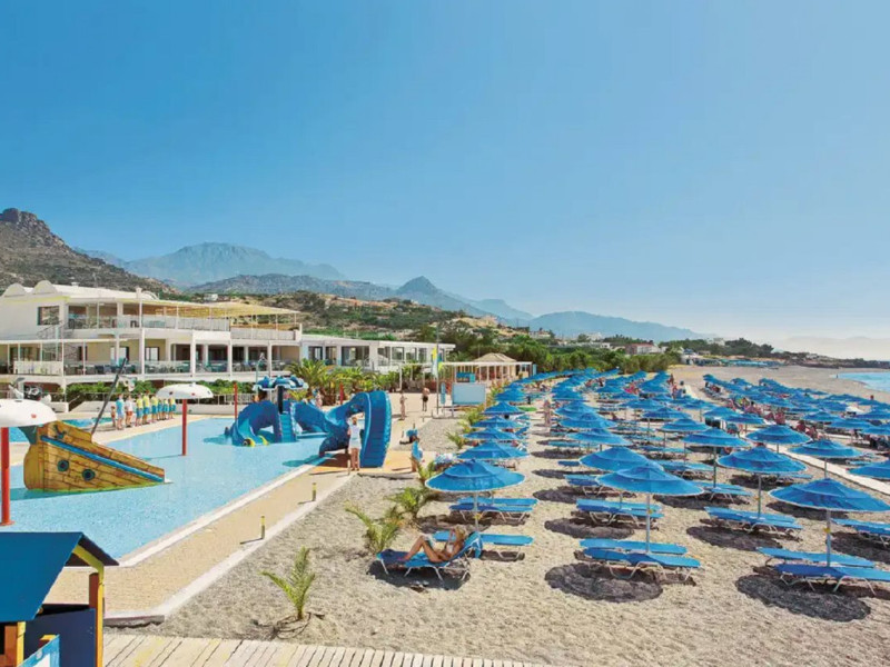 Located in Koutsounari, 8 km from Ierapetra in southeastern Crete, Mare Blue Hotel offers a family-friendly retreat with beach access. The hotel features air-conditioned rooms with private bathrooms, satellite TV, and furnished balconies or patios. Guests can enjoy multiple swimming pools, massage services, and a gym. Dining options include a buffet restaurant serving Greek and international cuisine for lunch and dinner, a coffee shop/cafe, a beach bar, and multiple bars/lounges. A complimentary buffet breakfast is served daily. Recreational activities include tennis, beach volleyball, and watersports. The hotel also offers complimentary wireless internet access, concierge services, a 24-hour front desk, and a children's playground. A business center, conference facilities, and dry cleaning/laundry services are available. Airport shuttle service is available for a surcharge, and free self-parking is provided. Heraklion Airport is approximately 98-100 km away, and Sitia Airport is approximately 50-54.7 km away.