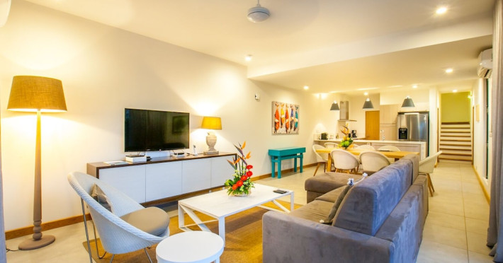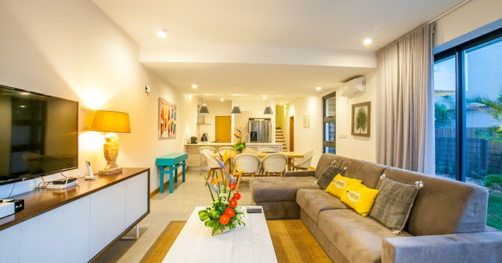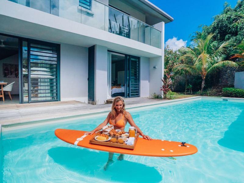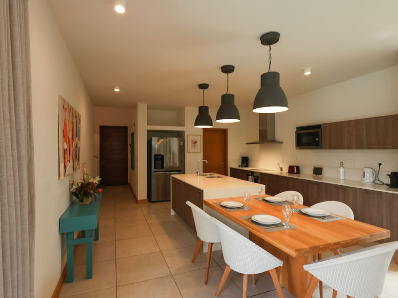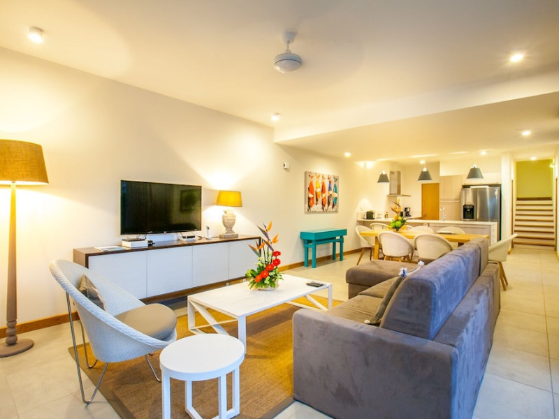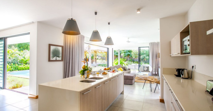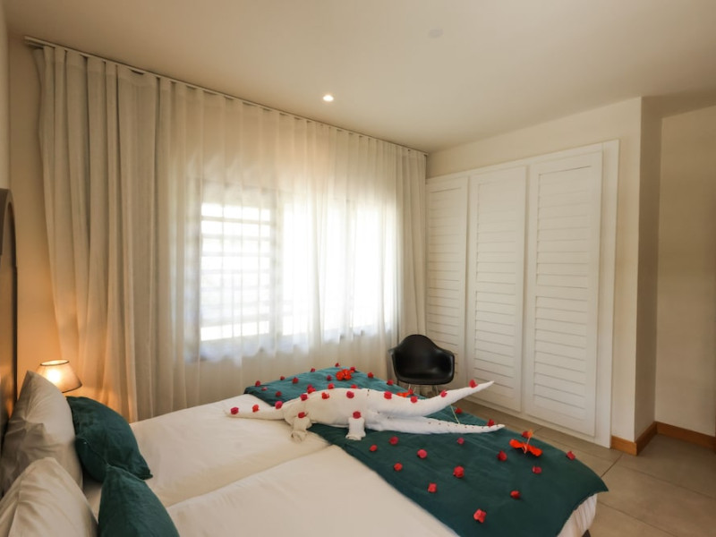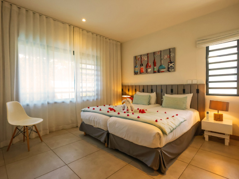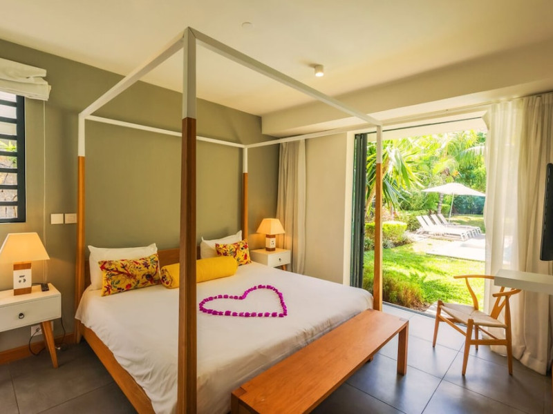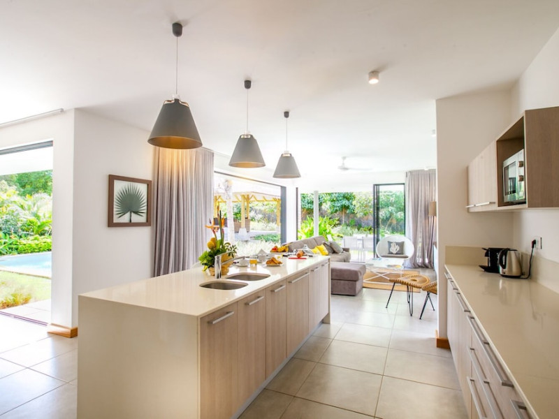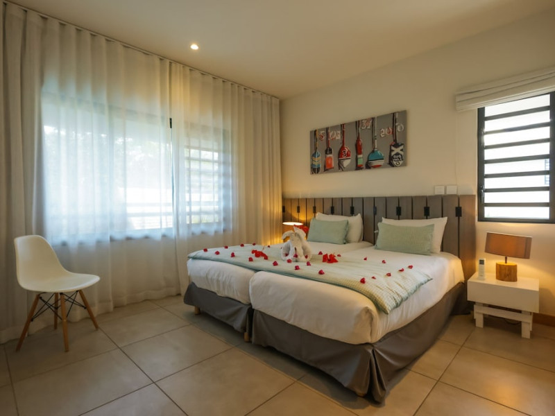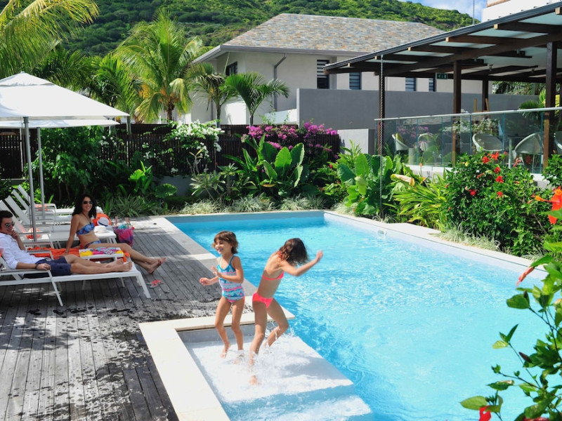 Marguery Villas offers one to four-bedroom villas with private pools, each featuring a gazebo, Wi-Fi, flat-screen TV with satellite channels, and a modern kitchen serviced daily. Bedrooms are air-conditioned; other areas have ceiling fans. A EUR 500 security deposit is required via credit card, authorized and cancelled within ten days of departure. A strict no-noise/party policy is in effect with quiet hours from 10 PM to 8 AM. The resort includes a 24/7 concierge/reception desk, lounge bar, game room, fitness center, outdoor pool, and snack bar. Continental breakfast is available in-villa, with in-villa dining options for lunch and dinner. Located in Black River-Tamarin on Mauritius' west coast, the resort is near La Preneuse beach and Black River Gorges National Park. Amenities including restaurants, shops, a bank, supermarket, and pharmacy are within a five-minute walk. Activities such as golf, fishing, diving, cycling, kitesurfing, surfing, horse riding, dolphin watching, and sightseeing are easily accessible. Airport shuttle service is available for a surcharge. Free self-parking is available onsite. Babysitting services are available for an additional fee.