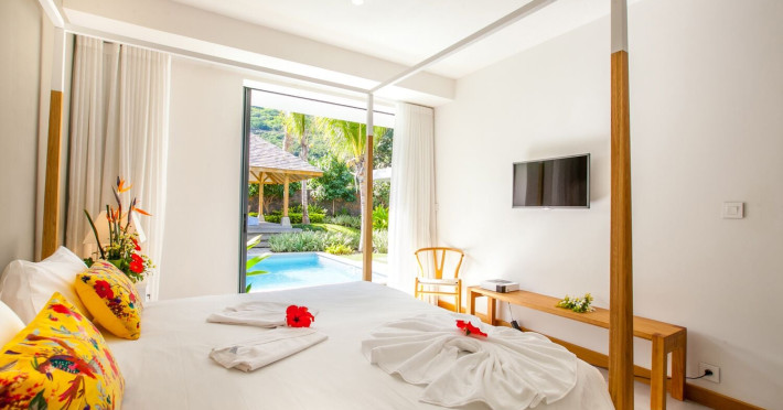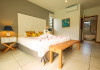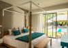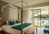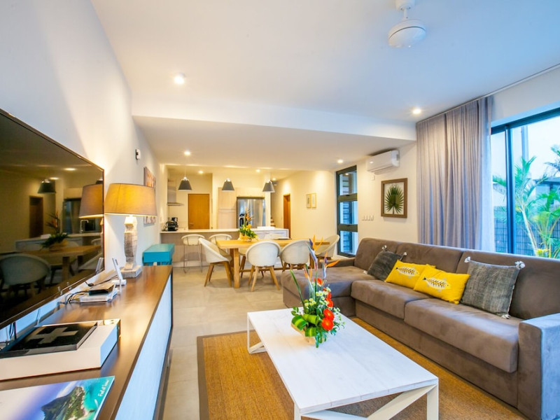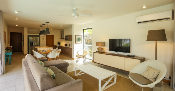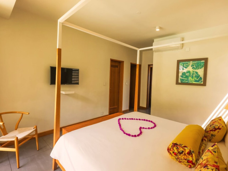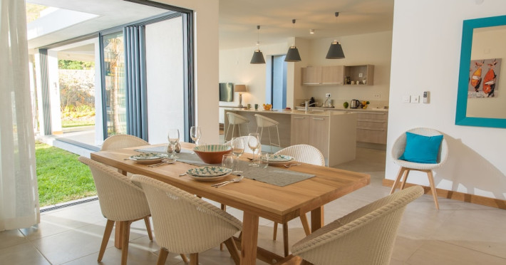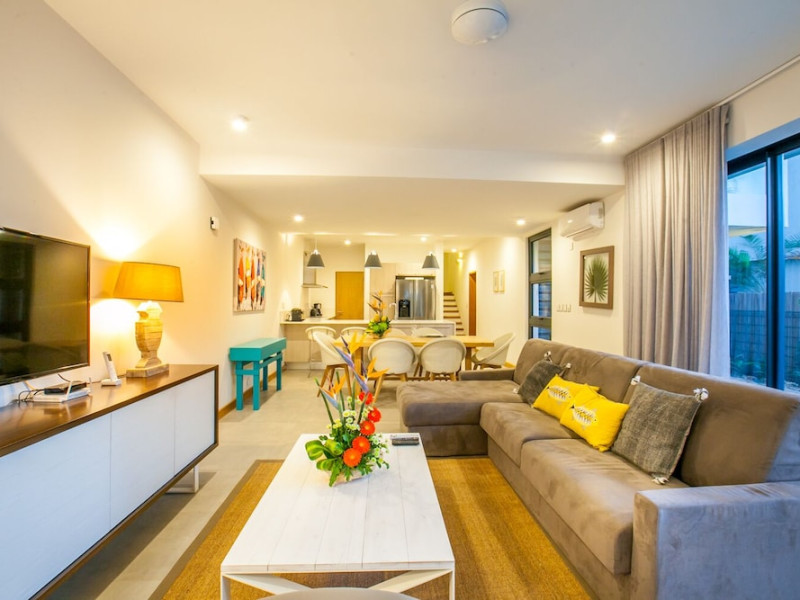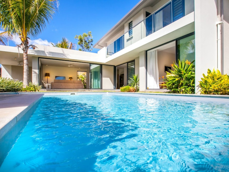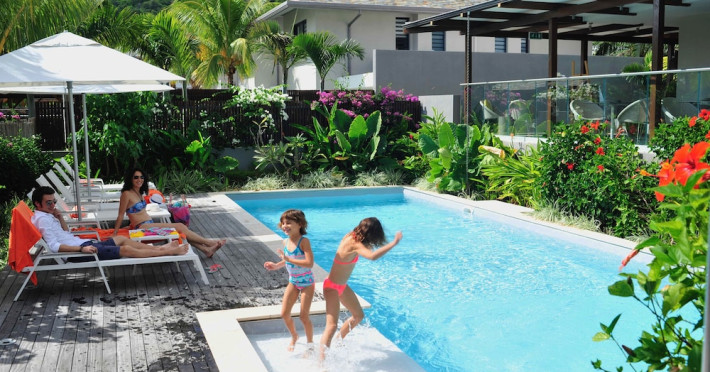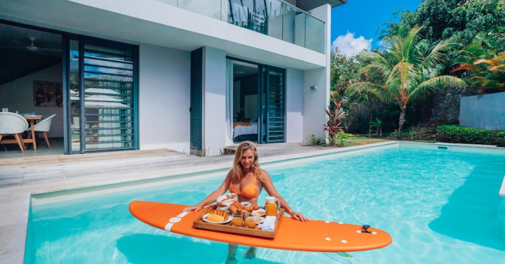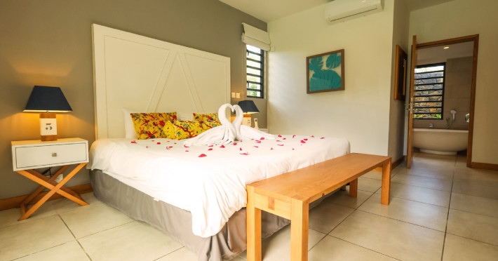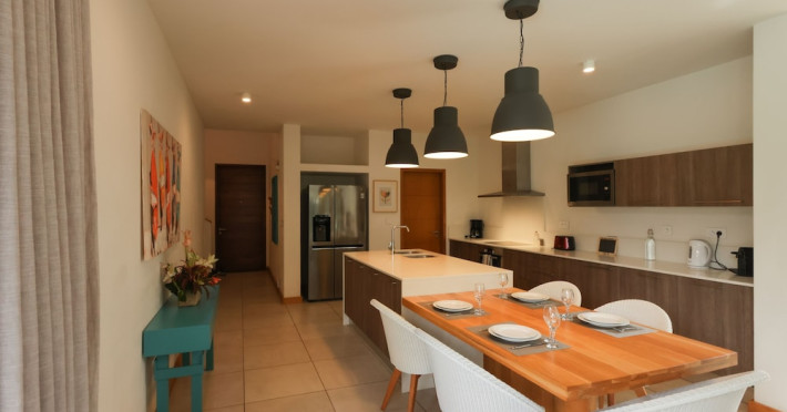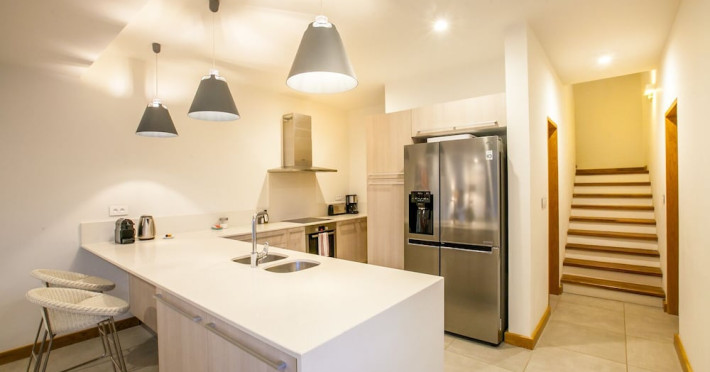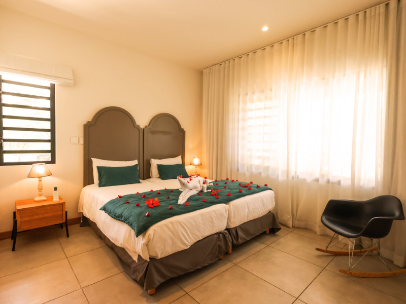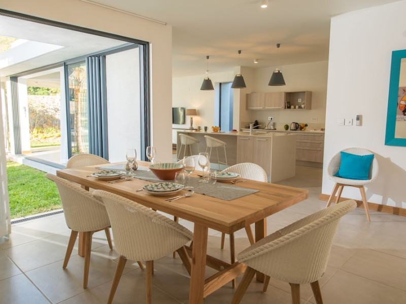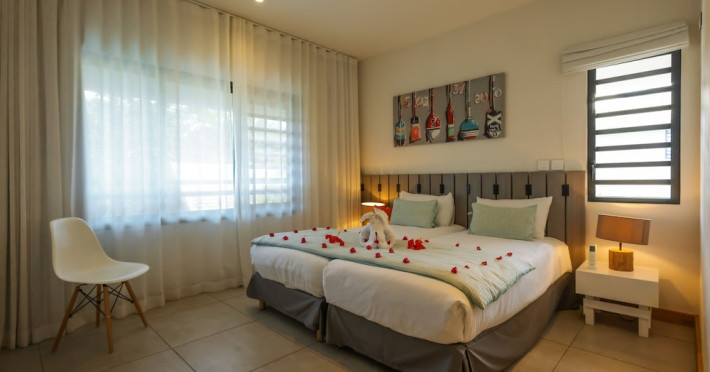 Marguery Villas offers one to four-bedroom villas with private pools, each featuring a gazebo, Wi-Fi, flat-screen TV with satellite channels, and a modern kitchen serviced daily. Bedrooms are air-conditioned; other areas have ceiling fans. A EUR 500 security deposit is required via credit card, authorized and cancelled within ten days of departure. A strict no-noise/party policy is in effect with quiet hours from 10 PM to 8 AM. The resort includes a 24/7 concierge/reception desk, lounge bar, game room, fitness center, outdoor pool, and snack bar. Continental breakfast is available in-villa, with in-villa dining options for lunch and dinner. Located in Black River-Tamarin on Mauritius' west coast, the resort is near La Preneuse beach and Black River Gorges National Park. Amenities including restaurants, shops, a bank, supermarket, and pharmacy are within a five-minute walk. Activities such as golf, fishing, diving, cycling, kitesurfing, surfing, horse riding, dolphin watching, and sightseeing are easily accessible. Airport shuttle service is available for a surcharge. Free self-parking is available onsite. Babysitting services are available for an additional fee.