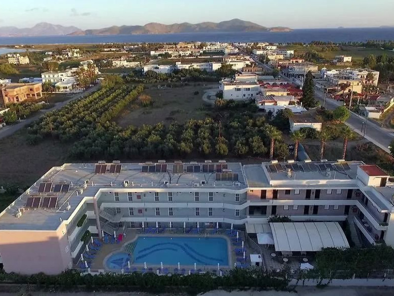 Descriere: Marianna Hotel Tigkaki este un hotel cu design modern, inconjurat de maslini si palmieri, ideal pentru o vacanta relaxanta pe insula Kos. Atmosfera linistita, spatiile generoase si cadrul natural placut il recomanda atat pentru cupluri, cat si pentru familii. Proprietatea ofera conditii confortabile de cazare si facilitati esentiale pentru un sejur placut, aproape de mare. Localizare: Marianna Hotel este situat in statiunea Tigkaki, la cateva minute de mers pe jos de plaja. Hotelul se afla intr-o zona verde si linistita, cu acces facil catre atractii naturale si culturale din insula, precum Parcul Natural Zia si Asklepionul din Kos. Aeroportul International Kos se afla la aproximativ 20 de minute de mers cu masina. Dotari camera: Hotelul dispune de 56 de camere confortabile, fiecare dotata cu balcon si zona de luat masa. Camerele sunt echipate cu TV cu ecran plat si chicineta utilata, care include cuptor cu microunde, prajitor de paine si ustensile de bucatarie. Unele camere ofera privelisti placute asupra imprejurimilor si apusului. Facilitati hotel: Oaspetii beneficiaza de Wi-Fi gratuit in zonele publice si de o piscina exterioara, inconjurata de spatii de relaxare. Hotelul dispune de bar la piscina, unde pot fi savurate bauturi racoritoare, si de spatii comune pentru recreere. Zona ofera acces rapid catre restaurante si taverne locale. Site web: https://mariannatigkaki.hotelskosisland.com/en/ Nota informativa: Pentru anumite facilitati din hotel sau din camera, hotelierul poate solicita taxe suplimentare. In momentul sosirii la hotel solicitati receptionerului sa va informeze cu exactitate asupra lor. Taxa turistica obligatorie se plateste la receptie.