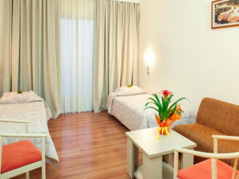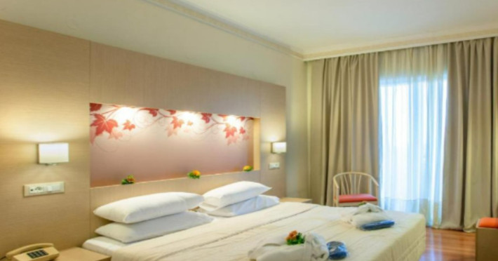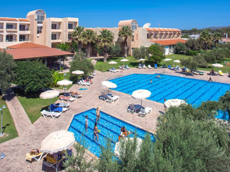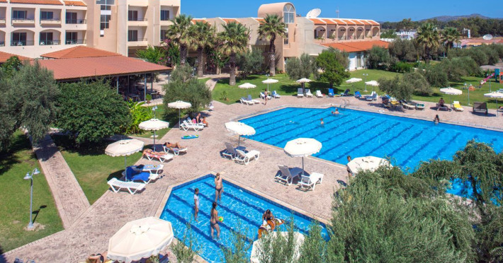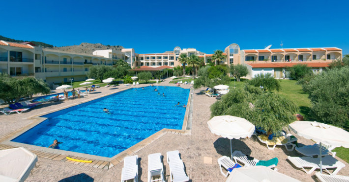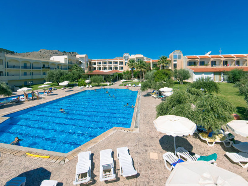Facilities and services include wireless Internet access (extra charge), restaurant, bars, swimming pool, children's pool, children' playground, tennis court (extra charge), billiards (extra charge), 24 hour reception and elevator (not available to all floors).Rooms feature wireless Internet access (extra charge), TV, telephone, air conditioning (extra charge), balcony/terrace, fridge, safe (extra charge), hairdryer and bathroom.Please note that some of the above facilities may be closed due to weather / seasonal conditions.a/c is included 01/07-30/09, for the rest period on extra charge payable on spotIn case of choosing the option of "all inclusive":The All Inclusive-concept includes all meals (breakfast, lunch, dinner and snacks) and mealtime drinks such as soft drinks, beer, wine, water and alcoholic drinks, all of local brands. Drinks are served from morning until late evening (approx until 22.-24.00 hrs). Opening times vary between different hotels. In certain hotels the activities program is also included.Address: Kolymbia area, Afantou, 85103 Rhodes, Dodecanese, Greece.